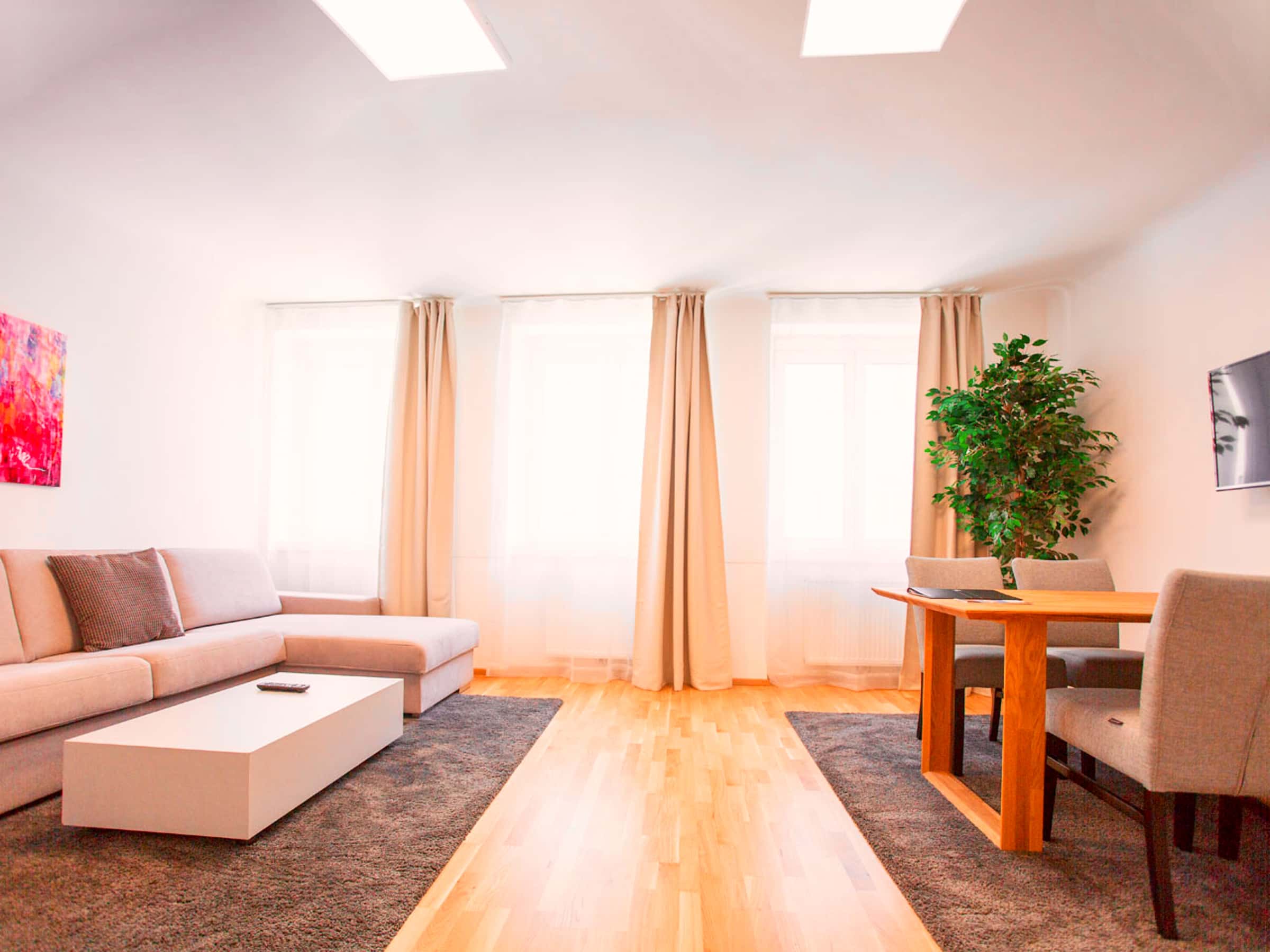 Beautiful apartment with two bedroom located in between main station, city center and the Palace of Schönbrunn. Fully furnished with a comfortable king size bed, a smart TV and a well equipped kitchen with a Nespresso coffee machine. Discover Vienna in all its beauty and diversity while living like a local in our apartment. This fully furnished apartment has everything you need to experience an authentic Viennese way of life and to enjoy an unforgettable holiday in Vienna. Expect brightly and friendly rooms and exclusive interior that gives you the ideal atmosphere to chill out and to enjoy a beautiful day or evening. The bedroom with its king size superior box spring bed provides the perfect place to relax where as in the living room and dining area you can watch a movie on a smart TV with cable TV connection or prepare a delicious meal in the fully equipped kitchen. From a cooking pot to a dishwasher and a Nespresso coffee machine you will find everything you need for comfort to feel home. The relaxing bathroom is furnished with a bathtub and comes with a washing machine and soft towels in three different sizes as well as a hair dryer. Enjoy a free to use High Speed WIFI internet connection and a big wardrobe with a lot of space for your clothes. Depending on demand it is possible to transform the convenient sofa in the living room into a comfortable extra bed with a slatted frame and end-to-end mattress without interruption. This comes as close as possible to a fully-fledged bed. An iron as well as an ironing board are available during your stay. - City center reachable within 12min! - Subway in 300 meters (3 stops to city center) - Tram in only 200 meters (brings you to the main station HBF, Belvedere Palace and/or the famous shopping street "Mariahilfer Strasse") - Bus in front of the door This apartment offers a great connection to public transportation. The subway U4 departs few minute’s walk away and takes you directly to city center and opera in three stops or to the famous Schönbrunn Palace. The tram station is only three walking minutes away and takes you to main station “Hauptbahnhof” and to the Belvedere Palace or to the great shopping street “Mariahilferstraße”. The supermarket “BILLA” is right around the corner. If you want to do grocery shopping after the regular opening hours, then feel happy to be living in an apartment close to Vienna’s central train station. At the main station “Hauptbahnhof” there is a supermarket open 7 days a week from 5:30am to 23pm.