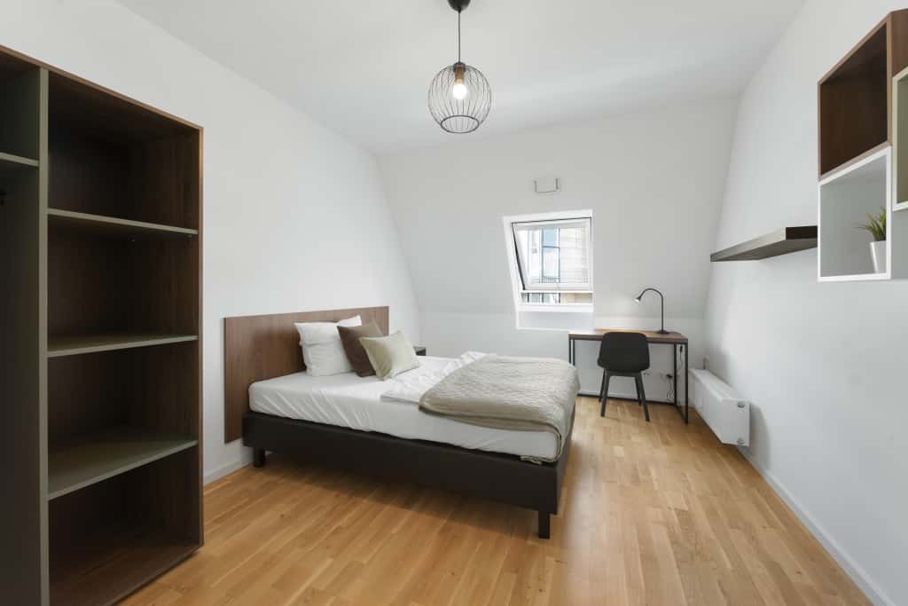 [EN] Enjoy your stay in this beautiful room in a shared apartment! Located in a lively district, this brand-new living complex will offer you everything you need: high speed internet, laundry room, a community area, co-working/co-learning area and even a 75m2 gym*! Your cosy room will be fully furnished with bed (incl. mattress, blanket and pillow), desk and chair, wardrobe, shelf, curtains. hanging and/or standing lamp and bedside table. Heating, electricity, water, and internet are included in the price. The structure is linked to superb public transport connections nearby and you will find many restaurants, supermarkets, shops & parks in the area. (The maximum stay period is 1 year. However, it is possible to extend the stay in the same structure by moving to another room) *only for the co-living in Nazarethkirchstraße [DE] Genieß dein Aufenthalt in diesem schönen Zimmer in einer WG! Dieser brandneue Wohnkomplex in einem belebten Viertel bietet dir alles, was du brauchst: Highspeed-Internet, Waschküche, Gemeinschaftsraum, Co-Working/Co-Learning Bereich und sogar einen 75 m2 großen Fitnessraum*! Dein gemütliches Zimmer ist komplett eingerichtet mit Bett (inkl. Matratze, Decke und Kissen), Schreibtisch und Stuhl, Kleiderschrank, Regal, Vorhängen, Hänge- und/oder Stehlampe und Nachttisch. Heizung, Strom, Wasser und Internet sind alles inkludiert. Die Struktur ist an hervorragende öffentliche Verkehrsmittel in der Nähe angebunden und in der Umgebung kannst du viele Restaurants, Supermärkte, Geschäfte und Parks finden. (Die maximale Aufenthaltsdauer beträgt 1 Jahr. Es ist jedoch möglich, den Aufenthalt in derselben Struktur durch Umzug in ein anderes Zimmer zu verlängern) *nur für den Co-living in der Nazarethkirchstraße