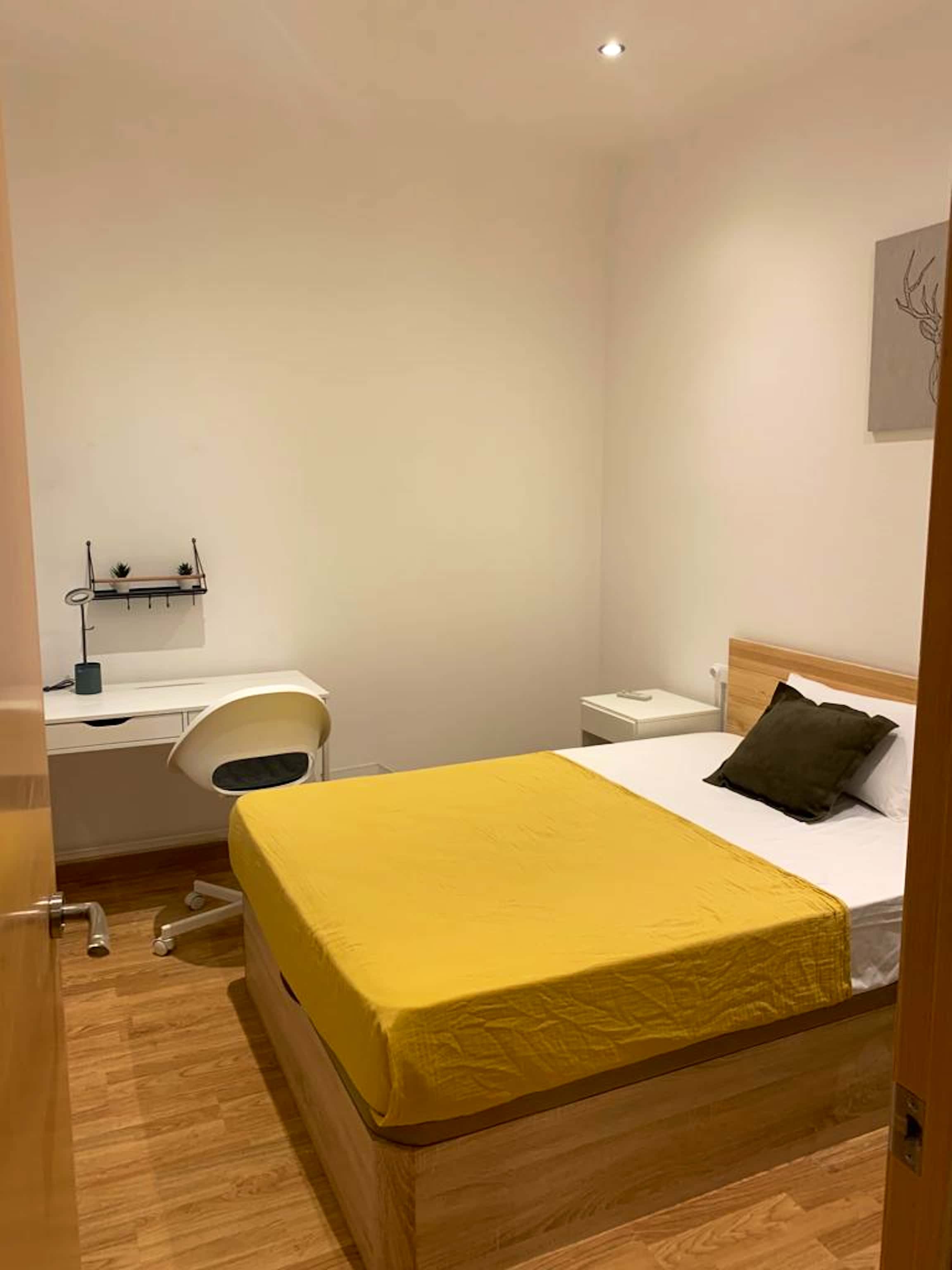 HABITACIÓN CON CAMA DOBLE La habitación cuenta con cama doble, zona de escritorio y armario. El apartamento cuenta con cocina completamente equipada y el baño será compartido por un máximo de 5 personas. Nuestro coliving está enfocado a estudiantes y jóvenes profesionales, generalmente entre 18 y 40 años, y ambiente internacional. Buscamos que disfrutes de Barcelona y que tu estancia sea cómoda, por lo que nuestros asesores te ayudaran ante cualquier duda. Al hacer tu reserva queremos que disfrutes con nosotros, estés cómodo y cuentes con nuestro equipo y comunidad, por ello no solo te ofrecemos un alquiler, sino que alojándote con nosotros: - Formarás parte de nuestra comunidad, teniendo acceso a eventos y actividades semanales para que descubras Barcelona y te sientas como en casa siendo uno más. - Limpieza semanal de las zonas comunes - Servicio de mantenimiento - Posibilidad de empadronamiento - Servicio Medico 24/7 por Quirón Salud - Atención al cliente 24/7 a través de nuestro departamento de Atención al coliver - Invitación a eventos y actividades especiales Condiciones: - Un mes de Fianza - Membership Club - Tarifa plana mensual de electricidad, agua, calefacción, internet de alta velocidad - De documentación únicamente solicitamos DNI o pasaporte Nuestro coliving está enfocado a estudiantes y jóvenes profesionales que quieren disfrutar de una estancia en Barcelona. La ubicación es inmejorable en la zona de Sants-Montjüic. Bien comunicado, se encuentran edificios de gran importancia cultural y de ocio, y cerca de la parada de metro Collblanc, línea L5, L9S, L10S de Metro, que conecta directamente con el centro de Barcelona. Además, cuenta con numerosas paradas de autobuses con excelentes conexiones por toda la ciudad rodeado de restaurantes, cafés y tiendas. Lunes: 8:00 - 21:00 Martes - Viernes: 08:00 - 22:00 Sábado: 10:00 - 18:00 Domingo y festivos: Cerrado *Durante los festivos y domingos, el check-in es posible con previo aviso y coordinación.