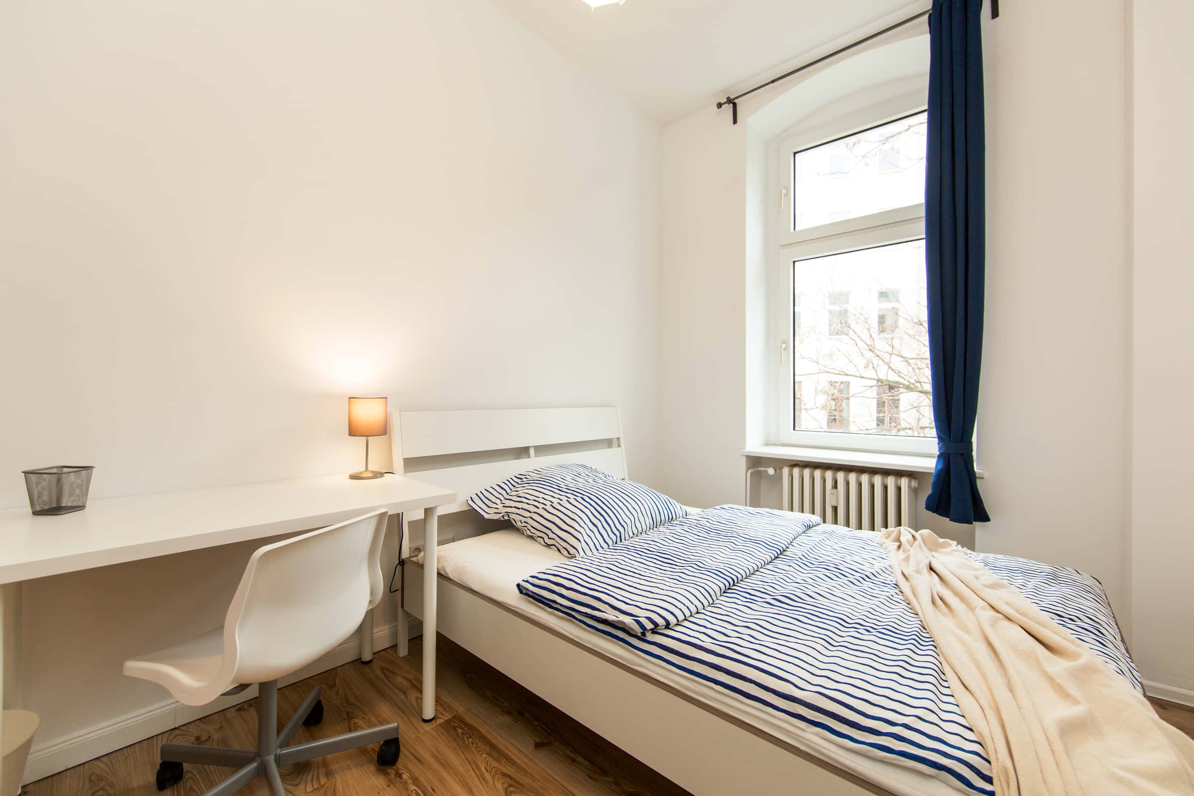We are offering a fully furnished room in a shared flat. The room has a comfortable bed, a desk with chair and a wardrobe for your clothes. Also the common areas are fully equipped with washing machine, cooking equipment and all you need for your daily living. Anmeldung/ Registration is possible. The monthly rent price is all inclusive (rent + heating + water + Internet + GEZ/german TV license fee). For the move in dates we have only the 1st or the 16th of each month a tenant can move in. In specific cases we have a flexible move in date, but this needs to discuss in our messages :) Please note that there is a service fee of €100,00 plus a deposit of €950,00 which need to be paid before moving in. Please be aware that Spacest is an online booking platform. Therefore, exchanging contact details and offering viewings is not possible before the booking. If you would like to reserve this accommodation, send me a booking request or a message, and please mention your age and occupation. We look forward to meeting you!