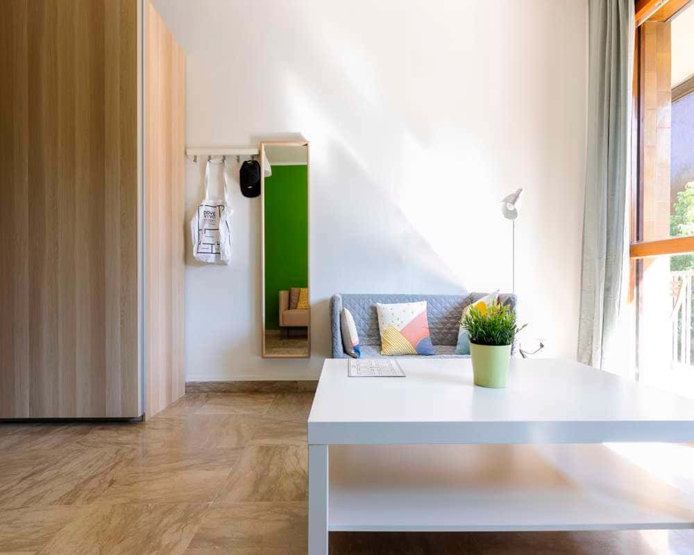 Inquilini all'interno della struttura / Tenants inside the building: 1) Male, Student, 26 2) Female, Student, 20 EN Single room in a shared apartment, composed by 3 bedrooms and 2 bathrooms. Of about 30 sqm with a one and a half bed and a work station. With wifi, terrace, bike parking, garden, dishwasher, washing machine. Energy class: D, IPE 77.50 Kwh/Sqm year. IT Stanza singola in un appartamento condiviso, composto da 3 camere e 2 bagni. Stanza di circa 30 mq con un letto a una piazza e mezza e una scrivania. Con wifi, terrazzo, parcheggio bici, giardino, lavastoviglie, lavatrice. Classe energetica: D, IPE 77.50 Kwh/mq anno. ES Habitación individual en un piso compartido, compuesto por 3 habitaciones y 2 baños. De unos 30 m2 con una cama y media y un puesto de trabajo. Con wi-fi, terraza, estacionamiento de bicicletas, jardín, lavavajillas, lavadora. Clase energética: D, IPE 77.50 Kwh/m2 año. FR Chambre individuelle dans un appartement partagé, composé de 3 chambres et 2 salles de bain. D'une superficie d'environ 30 avec un lit et demi et un poste de travail.. Avec wifi, terrasse, parking à vélos, jardin, lave-vaisselle, machine à laver. Classe d'énergie : D, IPE 77.50 Kwh/Sqm année. [ITA]: - NON E' POSSIBILE EFFETTUARE VISITE. - La biancheria non è inclusa nella camera. - Inquilini: la casa é composta da studenti o giovani lavoratori 20-28 anni. Si tende a mantenere un'occupazione divisa equamente tra inquilini di genere maschile e femminile. - Accetta: Qualsiasi genere - La permanenza minima contrattuale corrisponderà al periodo di prenotazione su Roomless. Qualora si desiderasse uscire prima del check-out selezionato in fase di prenotazione, si potrà esercitare l'opzione di uscita anticipata versando 1,5 mensilità. Nel caso in cui si volesse fare subentrare un inquilino (sia che lo trovi il proprietario sia che lo trovi l'inquilino attuale) si potrà uscire dall'appartamento pagando una spesa di servizio pari a 200€.In questo caso il contratto si chiuderà il giorno precedente all'ingresso del sostituto. Sarà comunque dovuta anche la spesa per la chiusura del contratto pari a 225€.. In ogni caso, 3 mesi rispetto alla data di check-out, va comunicata la disdetta regolare per interrompere il contratto alla data stabilita; se non avverrà tale comunicazione, il contratto rimarrà attivo. - L'appuntamento per l'ingresso in casa dovrà essere prenotato con almeno 3 giorni lavorativi di preavviso rispetto la data d'ingresso di tuo interesse. [ENG]: - VIEWING IS NOT POSSIBLE. - Bed linen is not included in the room. - Tenants: The house is composed of students or young workers 20-28 years old. There is a tendency to maintain an equal split between male and female tenants. - Accepted: Any gender - The minimum contractual stay will correspond to the booking period on Roomless. If you wish to leave before the check-out date selected at the time of booking, you may exercise the option of early departure by paying 1.5 month's rent. In the event that you wish to have a tenant take over (whether the owner or the current tenant finds him/her), you may leave the flat by paying a service charge of €200. In this case the contract will end the day before the replacement tenant moves in. A closing charge of €225 will also be due.. In any case, 3 months before the check-out date, the regular cancellation must be communicated in order to terminate the contract on the established date; if no such communication is made, the contract will remain active. .- Check-in will be guaranteed at least 48 hours after your first contact with the property.