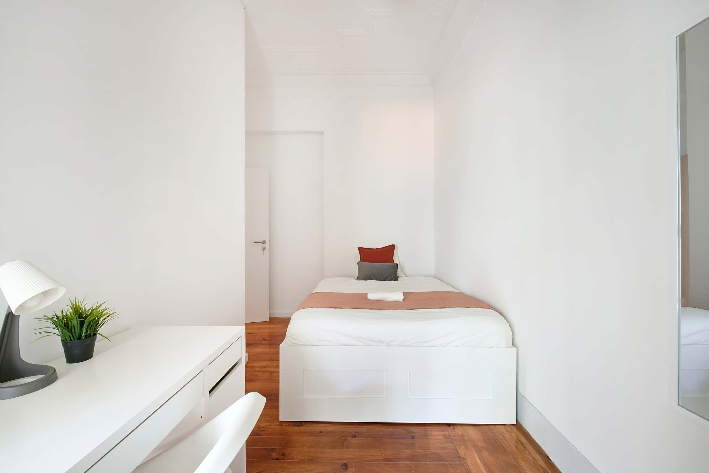 (EN) Bright and inviting room available in a large 8-bedroom apartment located on Rua Chaby Pinheiro, Lisbon. The apartment features 2 shared bathrooms and a fully equipped kitchen, making it ideal for comfortable and convenient shared living. Situated in a peaceful yet well-connected neighborhood, the apartment is close to local amenities, including shops, cafes, and public transportation options, ensuring easy access to the city center and nearby attractions. The area offers a mix of tranquility and urban convenience, perfect for students or young professionals seeking a sociable and practical living space in Lisbon. Extra per tenant: 150€/month (PT) Quarto luminoso e convidativo disponível num grande apartamento com 8 quartos, localizado na Rua Chaby Pinheiro, em Lisboa. O apartamento possui 2 casas de banho partilhadas e uma cozinha totalmente equipada, tornando-o ideal para uma vida partilhada confortável e conveniente. Situado num bairro tranquilo, mas bem conectado, o apartamento está perto de amenidades locais, incluindo lojas, cafés e opções de transporte público, garantindo fácil acesso ao centro da cidade e às atracções próximas. A área oferece uma mistura de tranquilidade e conveniência urbana, perfeita para estudantes ou jovens profissionais que procuram um espaço de vida sociável e prático em Lisboa. Preço por inquilino extra: 150€/mês