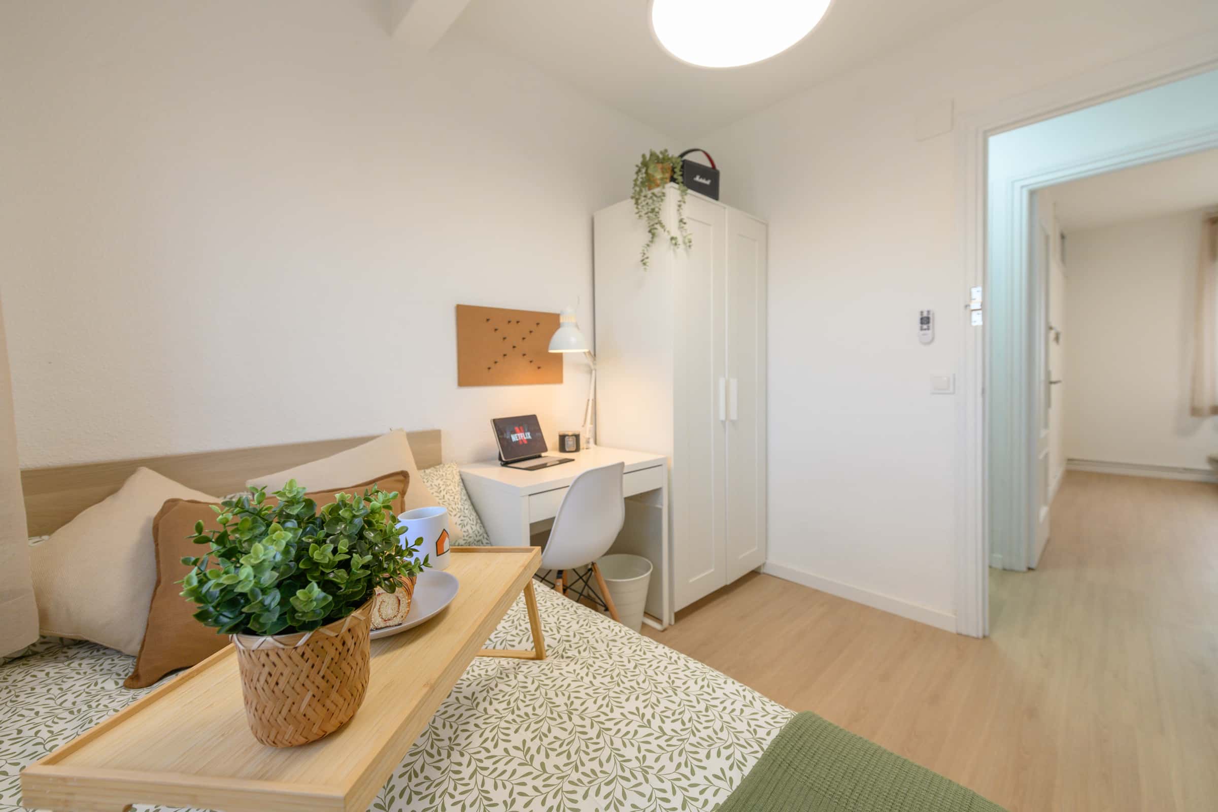 Disponible habitación en piso compartido ubicado en el cuarto piso de un edificio en Avenida de las Ciudades 98, Getafe (sin ascensor). La habitación es amplia y luminosa, equipada con cama doble, escritorio para trabajar o estudiar cómodamente, y armario espacioso. El piso cuenta con 4 habitaciones, 1 baño compartido, calefacción por gas natural, mantenimiento incluido y servicio de limpieza semanal en las zonas comunes, lo que garantiza un ambiente limpio y bien cuidado. Perfecta para estudiantes o jóvenes profesionales que buscan un lugar cómodo y bien comunicado en Getafe. IMPORTANTE : la ropa de cama no esta incuida. Cada inquilino deve proveerse la suya en particular.