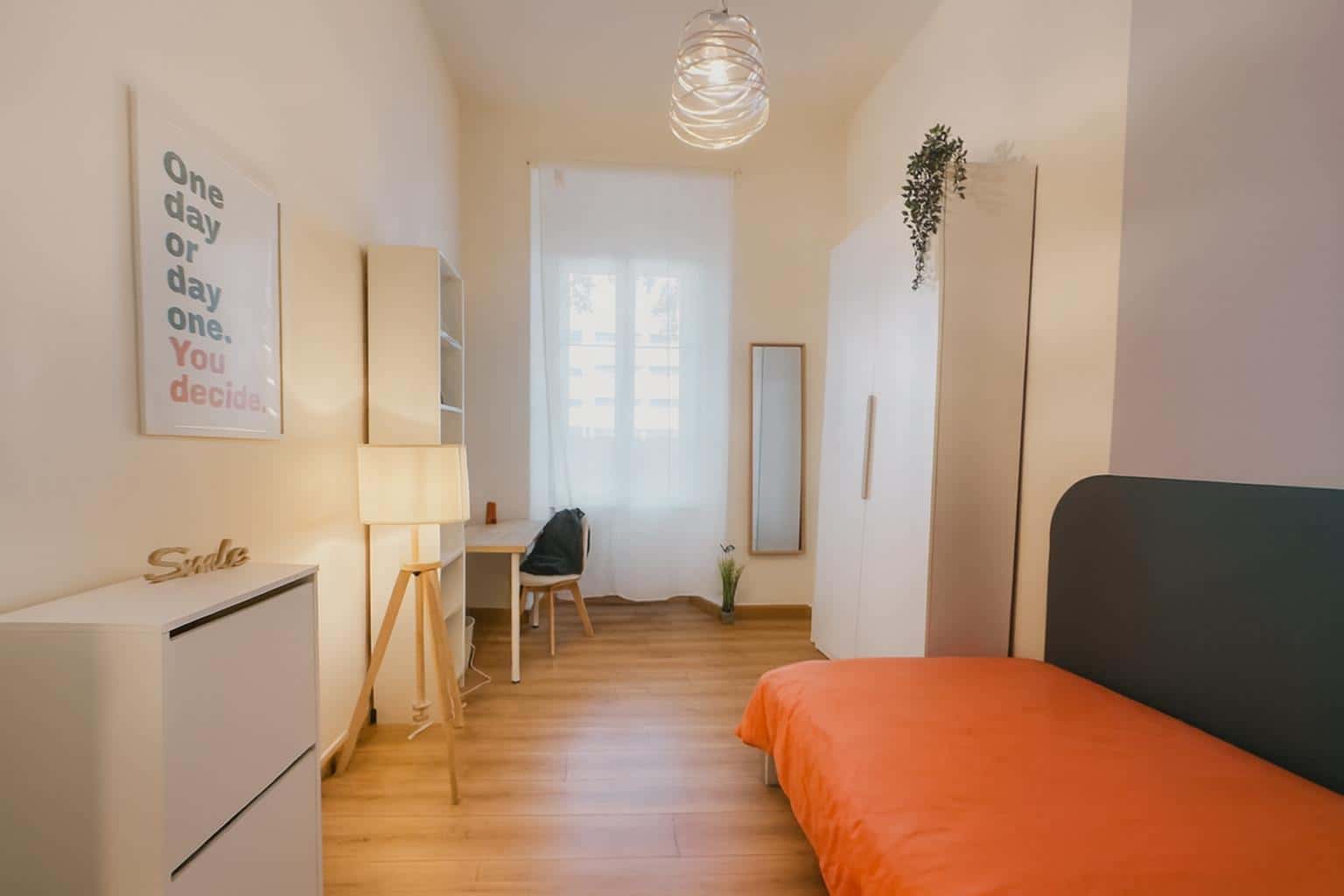 [ITA] Zona Centro, posizione strategica e ambita, si affitta una bellissima stanza singola Stanza Semplice ristrutturata appositamente per offrire comfort e comodità ai nostri studenti. La stanza è dotata di letto singolo armadio 2 ante, scrivania, comodino, tendaggi, specchio, scarpiera, libreria. Situato al primo piano, luminoso e molto spazioso. 190 mq di superficie. È composto da cucina abitabile, 2 Bagni,6 stanze singole e uno sgabuzzino. L'appartamento è ottimamente ristrutturato in funzione di tutto ciò che occorre ai nostri studenti. E' situato in una posizione strategica, a soli 2 minuti a piedi dalla Stazione Centrale e 8 minuti dalle principali università del Centro. Dotato di WI-FI, lavatrice, cucina equipaggiata. [ENG] City Center area, strategic and sought-after location, a beautiful single room is available for rent. The Simple Room has been newly renovated to offer comfort and convenience to our students. The room is equipped with a single bed, two-door wardrobe, desk, bedside table, curtains, mirror, shoe rack, and bookshelf. Located on the first floor, bright and very spacious. 190 sqm of space. It consists of a fully equipped kitchen, 2 bathrooms, 6 single rooms, and a storage room. The apartment has been excellently renovated to meet all the needs of our students. It is situated in a strategic location, just a 2-minute walk from the Central Station and 8 minutes from the main universities in the city center. Equipped with Wi-Fi, washing machine, and a fully equipped kitchen