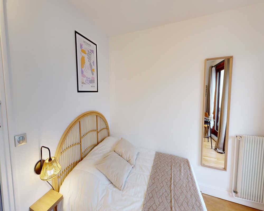 Inquilini all'interno della struttura / Tenants inside the building: 1) Male, Student, 24 4) Male, Worker, 29 5) Female, Student, 21 EN This lovely private bedroom in a fully equipped, furnished and all-inclusive flatshare in Paris is a mix of comfort and design. It has got household furnishings, including a bed with pillows and duvet What is missing is your things to feel at home! The room can be locked if you need intimacy. The flatshare can be found in the Necker neighborhood, in the heart of Paris. Plenty of shops, public transports, restaurants are accessible close by. The apartment is on floor 2 with lift. It is entirely equipped and is composed of a large kitchen with refrigerator, microwave, pans, crockery, kitchen ustensils, kettle… The accommodation also contains an ironing board, a washing machine, a clothes rack, an iron. Additionally, you will find cleaning items in the accommodation: bagless hoover, dustpan and brush, broom, mop and bucket… Every furnished flatshare includes all expenses: housing insurance, water, electricity, unlimited wi-fi, condominium fees, household waste tax. FR Cette superbe chambre en colocation, meublée, équipée et tout inclus à Paris unit confort et design. Elle offre de nombreux équipements comme un lit confortable et hypoallergénique avec couette et oreillers. Ne vous manque plus à apporter que vos vêtements pour y vivre ! La chambre possède un cadenas si besoin. Le logement est localisé dans le quartier Necker, en plein coeur de Paris. De nombreux commerces, transports publics, restaurants sont situés à proximité. La colocation est à l'étage 2 avec ascenseur. Elle est prête-à-vivre et propose une cuisine complètement équipée avec frigo, poêles, casseroles, vaisselle, bouilloire, ustensiles, micro-ondes… Ainsi que lave-linge, tancarville, fer à repasser, planche à repasser. Tout le nécessaire pour le ménage est sur place au sein de cette colocation : balai, balai-brosse, aspirateur, seau et serpillère… Chaque colocation meublée inclut toutes les charges : eau, assurance habitation, charges de copropriété, taxe sur les ordures, wifi illimité, électricité. ES Esta magnifica habitación en un piso compartido amueblado, equipado y con todos los gastos incluidos en Paris compagina bienestar con un diseño moderno. La habitación dispone de varios muebles como una cama cómoda e hipoalergénica con edredón y almohadas. ¡ Sólo necesitas traer tu maleta para estar en casa ! La habitación tiene un candado si quieres más intimidad. Con respecto a la localización del alojamiento, se sitúa en el barrio Necker, en el corazón de Paris. Numerosos comercios, transportes públicos, restaurantes se encuentran en el barrio. La vivienda es en el piso numero 2 con ascensor. Está lista para ser ocupada y posee una cocina totalmente equipada con frigorifico, vajilla, tetera, sartenes, olias, microondas, cubiertos… También tiene tabla para planchar, lavadora, plancha, tendedero tal y como todo lo que hace falta para la limpieza : cubo y trapo, aspirador, cepillo de baño, cepillo… Cada alquiler amueblado incluye todos los gastos : tasas de condominio, agua, electricidad, impuesto sobre la recogida de basuras domésticas, seguro de vivienda, wifi inlimitado. IT Questa graziosa camera privata in un appartamento completamente attrezzato, arredato e all-inclusive a Parigi è un mix di comfort e design. Dispone di arredi domestici, incluso un letto con cuscini e piumone. Manca solo il tuo tocco personale per sentirti a casa! La camera può essere chiusa a chiave per garantirti privacy. L’appartamento si trova nel quartiere Necker, nel cuore di Parigi. Nelle vicinanze sono presenti numerosi negozi, mezzi pubblici e ristoranti. L'appartamento si trova al piano 2 con ascensore. È completamente attrezzato e composto da una grande cucina con frigorifero, microonde, pentole, tostapane, stoviglie, utensili da cucina, bollitore... L'alloggio dispone anche di asse da stiro, lavatrice, stendibiancheria e ferro da stiro. Inoltre, troverai articoli per la pulizia come aspirapolvere senza sacco, paletta e spazzola, scopa, mocio e secchio... Ogni appartamento è completamente arredato e include tutte le spese: assicurazione sulla casa, acqua, elettricità, Wi-Fi illimitato, spese condominiali, tassa sui rifiuti domestici. [FRA]: - LES VISITES NE SONT PAS POSSIBLES. - Le linge de lit n'est pas inclus dans la chambre. - Locataires : La maison est composée d'étudiants ou de jeunes travailleurs âgés de 20 à 28 ans. La tendance est de maintenir une répartition égale entre les locataires masculins et féminins. - Accepter: Tous les genres - Le séjour contractuel minimum correspondra à la période de réservation sur Roomless. Si vous souhaitez partir avant la date de départ choisie au moment de la réservation, vous pouvez exercer l'option de départ anticipé en payant 1,5 mois de loyer. Dans tous les cas, 3 mois avant la date de départ, l'annulation régulière doit être communiquée afin de mettre fin au contrat à la date établie ; si aucune communication n'est faite, le contrat restera actif. - L'enregistrement sera garanti au moins 48 heures après votre premier contact avec la propriété.