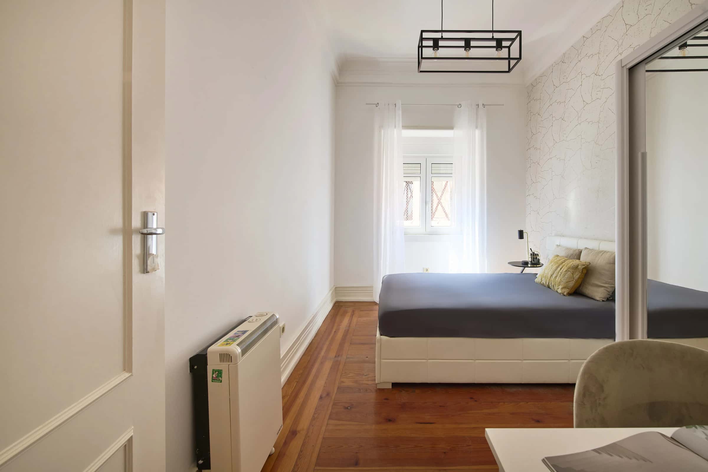 EN This cozy 9-bedroom apartment in Rato offers comfort and convenience in one of Lisbon’s most central and elegant neighborhoods. Located on the first floor, the apartment features a fully equipped kitchen and 3 shared bathrooms, including one en-suite bedroom, providing additional privacy and comfort.With its warm atmosphere and well-organized layout, this apartment is ideal for those who value both practicality and a welcoming home environment. Its excellent location ensures easy access to cafés, restaurants, supermarkets, and essential services, all just a few minutes away on foot.The nearest supermarket is about 3 minutes away on foot, and the closest bus stop is approximately 2 minutes away, making daily errands and city commutes quick and convenient. Rato is a central and refined area of Lisbon, known for its elegant architecture and excellent connectivity. The neighborhood offers a mix of tranquility and urban life, with traditional cafés, restaurants, and shops nearby. It’s also close to green spaces like Jardim da Estrela and Amoreiras, providing a relaxing contrast to the city’s buzz.Living in Rato means enjoying a strategic location, close to both the historic center and Lisbon’s main business districts. Metro: Rato station (Yellow Line) connects directly to Saldanha, Marquês de Pombal, and Campo Grande.Buses: Several Carris bus routes operate in the area, offering quick access to Estrela, Amoreiras, and Cais do Sodré.Trains: Santos and Campolide stations are just a short ride away, connecting to Lisbon’s suburban lines.With great metro and bus connections, Rato provides excellent accessibility to the rest of the city. - Jardim da Estrela – A beautiful garden ideal for relaxing or walking outdoors.- Basílica da Estrela – One of Lisbon’s most iconic landmarks, just minutes away.- Amoreiras Shopping Center – A nearby mall with shops, restaurants, and a cinema.- Príncipe Real – A trendy neighborhood filled with cafés, boutiques, and parks.- Avenida da Liberdade – A short walk away, known for its elegant shops and vibrant atmosphere.Rato is the perfect blend of central living and residential comfort, making this cozy apartment a great choice for those who want to enjoy authentic Lisbon charm with all the conveniences nearby. - No smoking.- No pets allowed.- No parties.- Trash must be taken out daily.- Short-term visitors are allowed (2 days). Longer period: €20 per day.- Utilities: included up to €25 per tenant.- Cleaning: offered by the landlord.- Bedding: pillows, duvet, and bed sheets are not provided.- Payment before check-in: first and last month, deposit and admin fee.- Check-ins: from Monday to Saturday from 4pm until 7:30pm. No check-ins on Sundays and bank holidays. Check-in is authorized only 24h after the payment is confirmed in our bank account and the contract is signed. The bedroom is a cozy and comfortable space, designed to offer residents a peaceful and restful environment. The room features a cozy double bed, a desk, a chair, and storage space for your belongings.