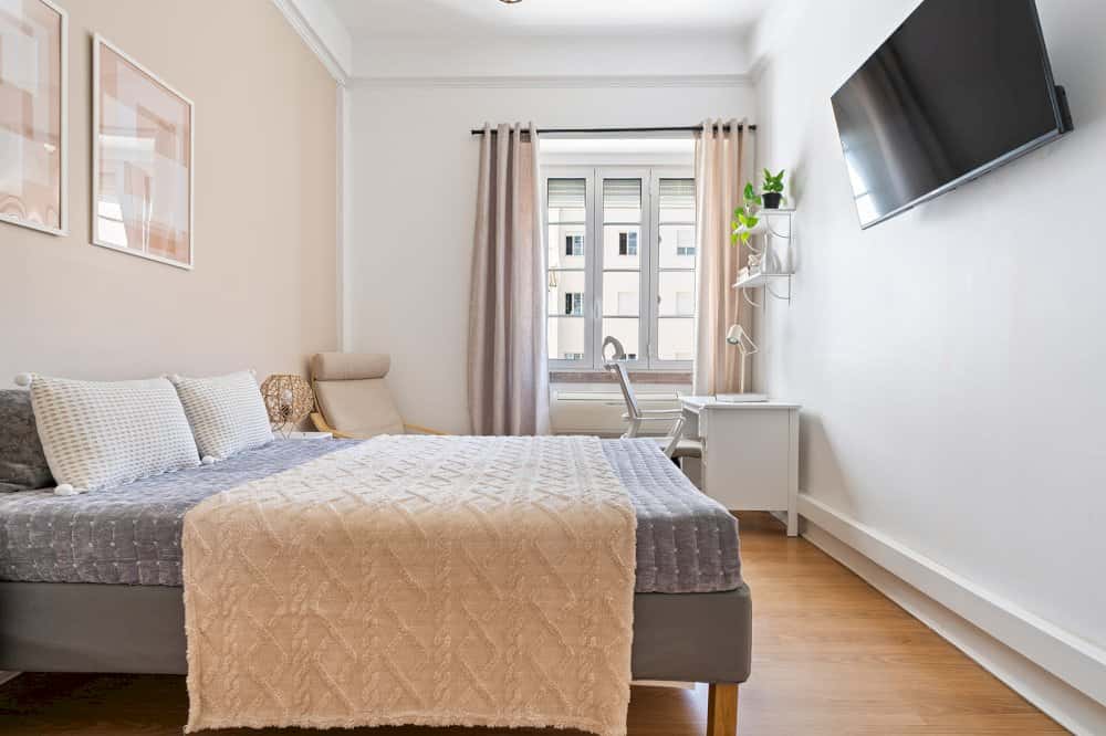 EN Located on the fourth floor, this cozy and spacious apartment in Alcantara is the perfect choice! You will be just a few minutes from supermarkets, cafés, pharmacies, and shops — everything you need right at your doorstep. The apartment features 10 bedrooms (including 2 suites), a fully equipped kitchen with all the essentials for your daily meals, and 4 bathrooms (including 2 en-suite). It's the perfect combination of comfort, convenience, and good vibes. Alcântara is one of Lisbon’s most vibrant and up-and-coming neighborhoods, perfectly balancing tradition and modern lifestyle. Located between the city center and Belém, the area is known for its riverside charm, trendy restaurants, and lively atmosphere.You’ll find cafés, supermarkets, restaurants, and local shops all within walking distance, making daily life easy and convenient. A Pingo Doce supermarket is just a 5-minute walk away, along with several cafés and grocery stores nearby. Alcântara is also home to the famous LX Factory, a creative hub full of cafés, boutiques, art galleries, and cultural events.With its unique mix of local authenticity and youthful energy, Alcântara offers an exciting place to live in Lisbon — full of life, culture, and convenience Train: The neighborhood is served by two train stations — Alcântara-Terra and Alcântara-Mar — offering direct connections to Cais do Sodré, Belém, and Cascais.Buses and Trams: Several Carris bus lines and the iconic tram 15E pass through the area, providing easy access to Baixa, Belém, and Praça do Comércio.Driving and Cycling: Alcântara has quick access to major roads like Avenida 24 de Julho and Ponte 25 de Abril, and offers new cycling paths along the riverside.With so many transport options, getting around Lisbon from Alcântara is quick and easy, whether by train, tram, or bus. LX Factory – A must-visit creative complex filled with cafés, concept stores, restaurants, art galleries, and weekly markets.Docas de Santo Amaro – A beautiful riverside area with bars and restaurants overlooking the 25 de Abril Bridge.Ponte 25 de Abril Viewpoint – An impressive spot offering panoramic views of the bridge and the Tagus River.Museu do Oriente – A fascinating museum dedicated to Asian art and Portuguese exploration history.Tapada das Necessidades Park – A quiet green park ideal for walks, picnics, or a break from the city buzz.From its creative spirit and river views to its great transport links and lively social scene, Alcântara is one of Lisbon’s most exciting neighborhoods to live in. - No smoking.- No pets allowed.- No parties.- Trash must be taken out daily.- Short-term visitors are allowed (2 days). Longer period: €20 per day.- Utilities: included up to €25 per tenant.- Cleaning: offered by the landlord.- Bedding: pillows, duvet, and bed sheets are not provided.- Payment before check-in: first and last month, deposit and admin fee.- Check-ins: from Monday to Saturday from 4pm until 7:30pm. No check-ins on Sundays and bank holidays. Check-in is authorized only 24h after the payment is confirmed in our bank account and the contract is signed. The bedroom is a cozy and comfortable space, designed to offer residents a peaceful and restful environment. The room features a cozy double bed, a desk, a chair, and storage space for your belongings.