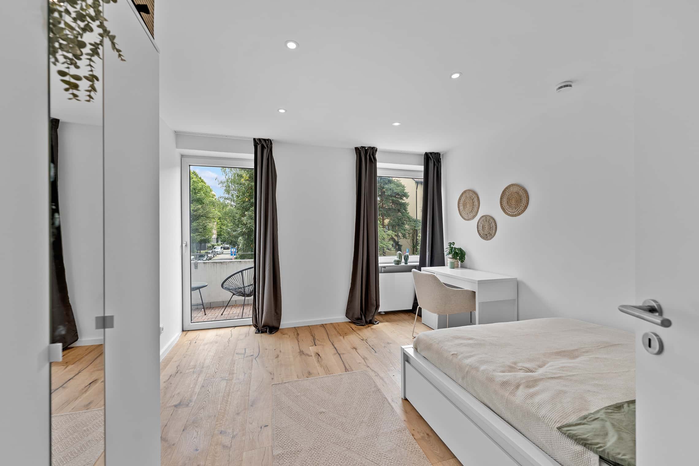 We offer you the opportunity to move into a stylish, high-quality furnished apartment designed by our interior team. The bright and attractive apartment is located in a well-maintained multi-family house in a central and convenient area. Public transport is just a 5-minute walk away, providing excellent access to all parts of Munich. Numerous shopping and retail options are within walking distance. Upon entering the apartment, you are welcomed by bright and friendly rooms furnished with great attention to comfort, quality, and design. Each room is equipped with a bed, wardrobe, desk, and chair, allowing you to move in with just a suitcase. The modern bathroom features sand-colored tiles, a walk-in shower, and a rain shower. The fully equipped kitchen includes a dishwasher and a washing machine with drying function. Balconies or loggias are furnished with a table and two chairs. Some of our apartments are currently undergoing renovation. Should this be the case, all apartments are guaranteed to be ready for occupancy by the agreed move-in date. After completion, they meet our high standards of quality and furnishing. As all our apartments follow the same design concept, you can expect an equally attractive and comfortable living environment. The images shown may be sample images and serve to illustrate the furnishing style and standard. A lockable cellar compartment is also included. Electricity and heating costs are included in the warm rent. Only internet and broadcasting fees are shared with your housemates.