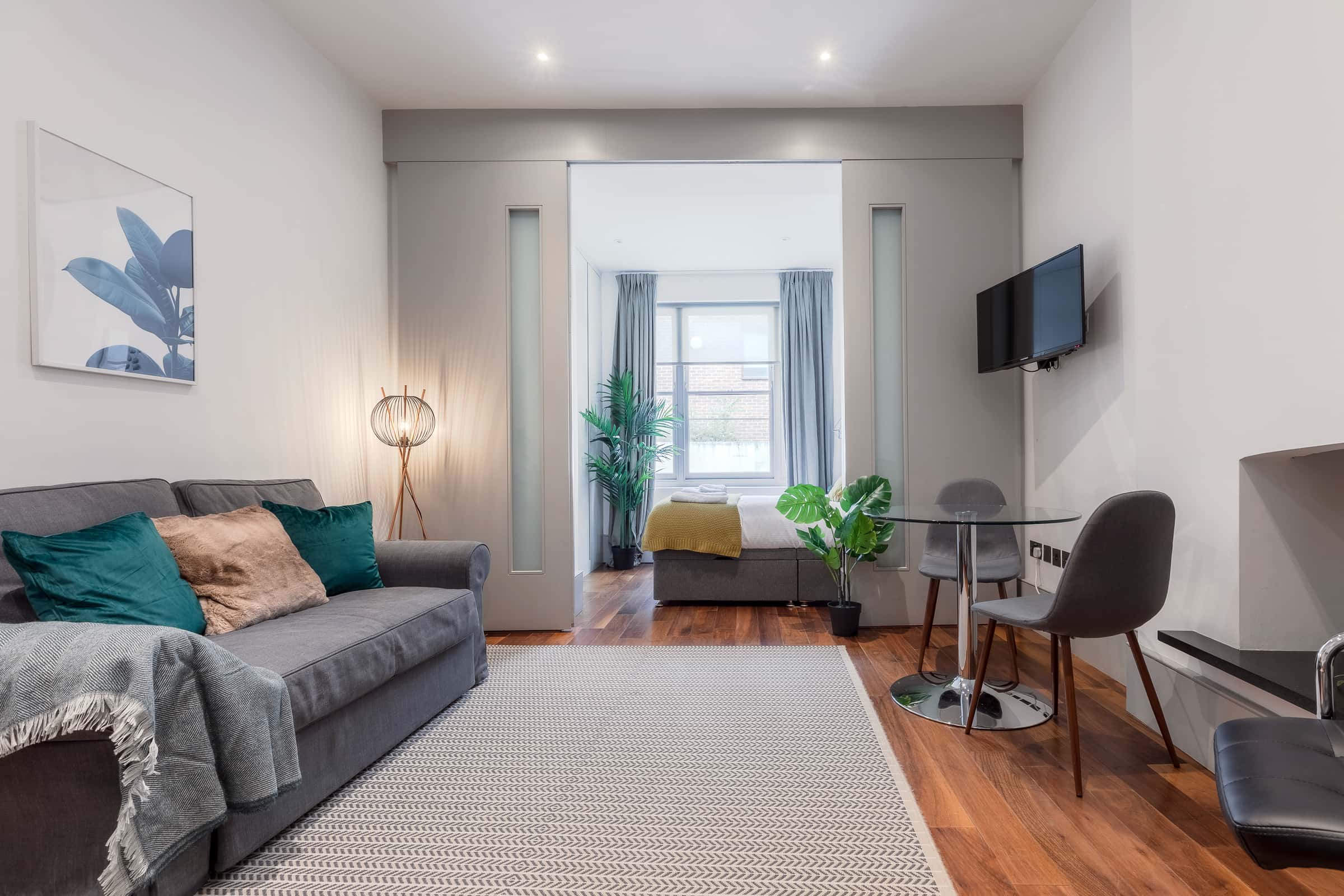 A stunning & luxurious apartment in the heart of Kensington Newly refurbished studio flat located on a quiet residential street with access to a fantastic range of amenities and within 6 minutes walking distance of Earls Court station (District Line & Piccadilly Line) and Gloucester Road station. Open plan kitchen with dishwasher & washing machine Spacious reception room with sofa & smart TV Wi-Fi included The apartment has a total area of 28 square meters. It also has 1 living room(s). No additional fee is requested for the condominium. A minimum stay of 1 month(s) is required. It is possible to book directly online.
