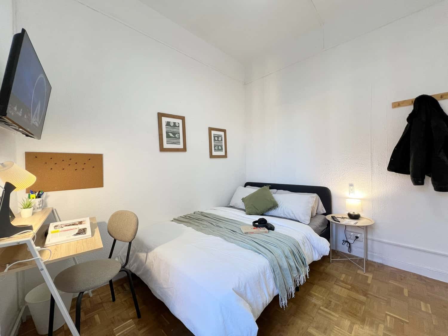 Características de la habitación: - Habitación individual con medida de 8.60mtrs2. - Cama matrimonial de 140 cm. - SmartTV de 32" - Armario. - Espacio de trabajo, con escritorio y silla. - Balcón. - Cerradura en la habitación. Piso de seis habitaciones y un baño, ubicado en la tercera planta (sin ascensor). La cocina está equipada con todos los electrodomésticos, utensilios y menaje necesarios. El baño cuenta con espacio de almacenaje para tus enseres personales. Condiciones de Alquiler: DNI, NIE o Pasaporte. Mes corriente. Carta de estudios o contrato de trabajo y nóminas. Depósito de seguridad reembolsable de un mes (ciertas condiciones aplican). Se solicita un pago único al momento de la entrada, para gastos de gestión y mantenimiento (este importe puede variar según la temporada). Las habitaciones no incluyen: Ropa de cama, mantas o toallas. Horario de Check-in: 14:30 - 18:30 de lunes a viernes en la oficina del propietario. Check-in tardío: 30 € fuera del horario indicado. Hasta las 21:00. Normas: No se permiten mascotas y está prohibido fumar. Los límites de edad establecidos para el alquiler son entre los 18 y 39 años. Transporte: La estación de metro Noviciado está a 2 minutos caminando (Líneas 2) y a 6 minutos caminando de la estación de metro San Bernardo (Líneas 2 y 4 del Metro). A 8 minutos caminando encontrarás las estaciones de Metro de Tribunal (Líneas 1 y 10) y Plaza España (Líneas 3 y 10). Cercanías Renfe C4b a 20 minutos caminando en la Estación Sol. Parada de autobús 3, “San Bernardo - Dos de Mayo” a 1 minuto caminando.