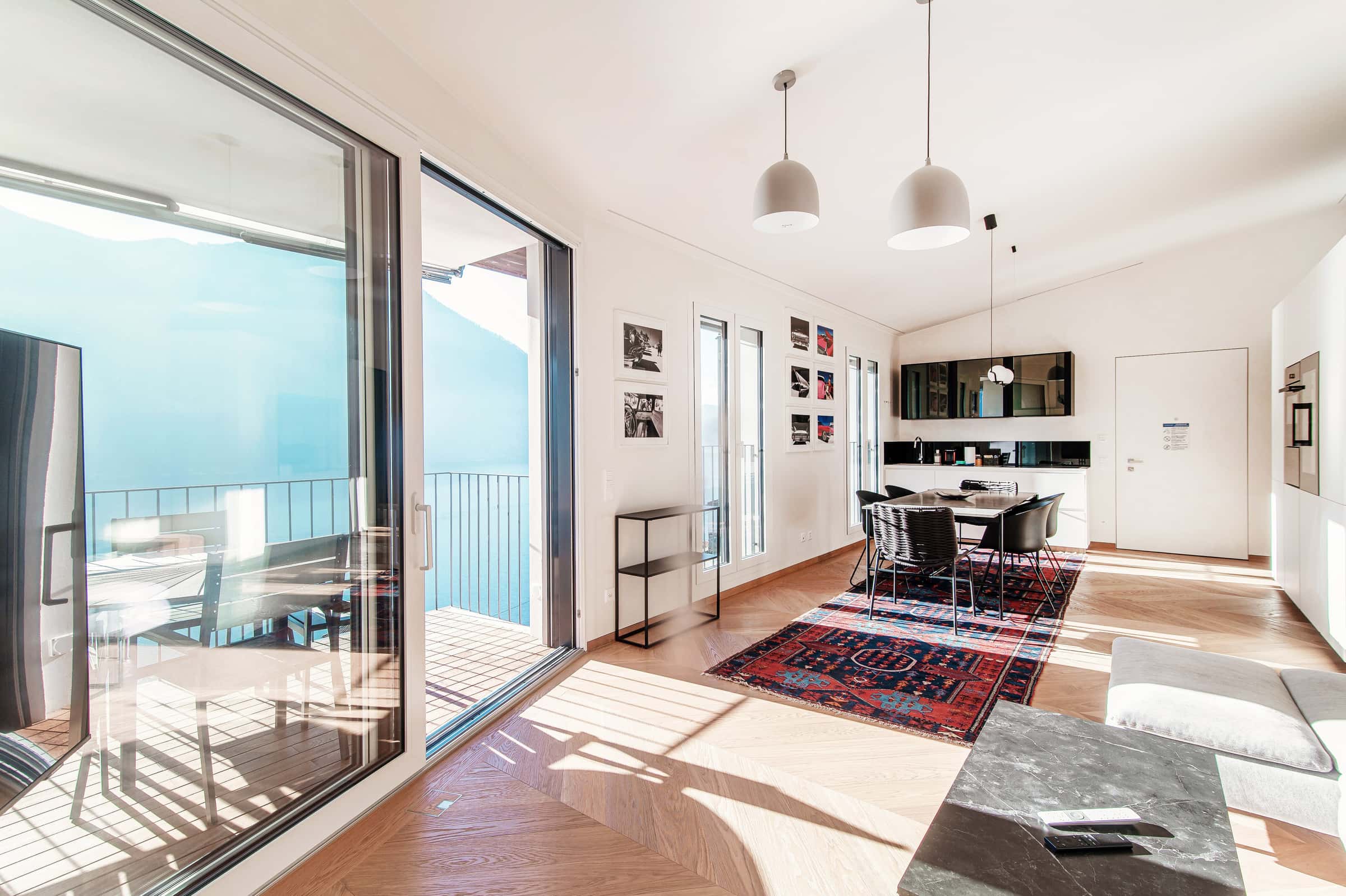 Svegliarsi ogni mattina con una spettacolare vista a 180° sul lago di Lugano diventa realtà nell’appartamento UNIQUE GANDRIA ATTIC. Questo moderno trilocale è situato all’interno di una residenza esclusiva nell’area panoramica di Gandria, un pittoresco borgo ticinese bagnato dal lago. L’appartamento è caratterizzato da un’ampia zona living open space con cucina a vista, pensata per creare un’atmosfera accogliente e conviviale. Le grandi vetrate regalano una vista mozzafiato sul lago e conducono direttamente al terrazzo arredato, ideale per ammirare il panorama in totale tranquillità. La zona notte è composta da due camere da letto: una matrimoniale con letto large e una con un divano letto doppio (Attenzione: il divano letto non viene preparato per il vostro arrivo, perché riteniamo corretto che possiate usare il divano durante le ore non dedicate al sonno. Troverete lenzuola, cuscini e coperte nell’armadio/mensola più adiacente al divano). I due bagni, uno dotato di vasca e uno di doccia, rendono l’alloggio perfetto per famiglie e gruppi di amici. Ogni angolo dell’appartamento è studiato con attenzione e impreziosito da finiture di alta qualità e arredi di design, offrendo uno stile ricercato in una location unica. Viene fornita biancheria da letto di qualità, asciugamani e kit di cortesia. Lasciamo anche un cestino regalo con il necessario per la vostra prima colazione. È vietato fumare. È vietata ogni attività commerciale all’interno dell’appartamento. L’appartamento non dispone di parcheggio privato, ma è possibile trovare parcheggi pubblici a pagamento a circa 350 metri di distanza. Da lì, la struttura si raggiunge con una camminata di 5 minuti lungo la scalinata del paese. Accesso: Ti ricordiamo che entrerai nell'appartamento effettuando un SELF CHECK-IN. Dopo aver completato con successo la registrazione online, ti verrà inviata una e-mail con le ISTRUZIONI (inclusa una guida passo passo) su come accedere autonomamente all'appartamento. In caso di necessità, il nostro servizio clienti è pronto ad assisterti dalle 8:00 alle 22:00 tramite telefono, email o Whats-app. Nei dintorni: Gandria è un villaggio pittoresco e ben conservato, tra i borghi lacustri più belli del Ticino, le cui case incastonate sul fianco della montagna, alle pendici del monte Brè, si specchiano nelle acque del Ceresio. Le costruzioni, strette tra loro, si raggiungono attraverso scalinate e viuzze. Alcune abitazioni risalgono al XVI e XVII secolo e sono abbellite da affreschi e decorazioni in stucco. Il villaggio è comodamente raggiungibile in battello da Lugano, in auto e in in bus attraverso la strada panoramica, Strada di Gandria. Tra i più celebri punti di interesse c’è il celebre Sentiero di Gandria, un percorso di straordinaria bellezza che costeggia il lago tra il verde della vegetazione mediterranea, gli ulivi, le tipiche case lacustri e il lago a pochi passi. Con il battello sono facilmente raggiungibili anche Cantine di Gandria e Caprino, sull’altra sponda del lago, dove percorrere un sentiero nel verde e gustare le prelibatezze ticinesi nei Grotti tipici. In auto si raggiunge il Lido di Lugano e il Parco Ciani in soli 10 minuti, il centro di Lugano in max 15 minuti. C’è un piccolo e grazioso Lido anche a Gandria, all’inizio del sentiero dal lato di Castagnola, il Lido San Domenico. Anche l’Italia è a due passi: la dogana di Gandria e a 2 minuti, e attraversandola si raggiunge la bella sponda italiana del lago di Lugano, con i piccoli borghi della Valsolda, come Oria (celebre per la Villa Fogazzaro Roi, patrimonio FAI) e Porlezza. Come arrivare: In auto, dall’autostrada A2 prendi lo Svincolo Lugano Sud e imposta il GPS: in 15 minuti raggiungerai la struttura. In treno, dalla stazione di Lugano prendere il bus N. 2 direzione “Castagnola, Capolinea” per 5 fermate e scendere alla fermata “Lugano, Palazzo Studi”. Da qui prendere il bus 490 direzione “Gandria, Paese” per 7 fermate, e scendere alla fermata “Gandria, Strada”. In 3 minuti a piedi raggiungerai l’appartamento. Waking up every morning to a spectacular 180° view over Lake Lugano becomes a reality at the UNIQUE GANDRIA ATTIC apartment. This modern three-room apartment is located in an exclusive residence in the panoramic area of Gandria, a picturesque Ticino village by the lake. The apartment features a spacious open-plan living area with a kitchen designed to create a welcoming and convivial atmosphere. Large windows offer a breathtaking view of the lake and open directly onto the furnished terrace, ideal for enjoying the panorama in complete tranquility. The sleeping area consists of two bedrooms: one with a large double bed and one with a double sofa bed (Please note: the sofa bed is not prepared for your arrival, as we consider it only fair that you use the sofa during non-sleeping hours. You will find sheets, pillows and blankets in the cupboard/shelf closest to the sofa). The two bathrooms—one with a bathtub and one with a shower—make this accommodation perfect for families and groups of friends. Every corner of the apartment has been thoughtfully designed and enhanced with high-quality finishes and designer furnishings, offering an elegant style in a unique location. Quality bedding, towels and a courtesy kit are provided. We also leave a gift basket with some necessary items for your first breakfast. Any commercial business is forbidden inside the apartment. Guests have the access of the whole apartment. The apartment does not have private parking, but paid public parking is available approximately 350 meters away. From there, the property is accessible with a 5-minute walk up the village staircase. Access: Please be reminded that you will enter the apartment by doing a SELF CHECK-IN. An e-mail with the INSTRUCTIONS (including a step-by-step guide) on how to access the apartment autonomously will be sent to you after you successfully complete the online re