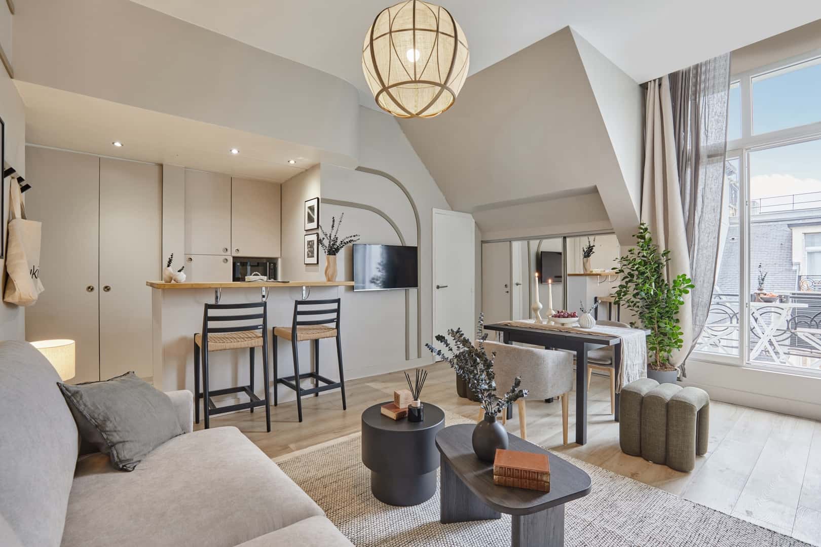 Magnifique appartement rénové et meublé situé avenue des Champs-Élysées, dans le quartier des Champs-Élysées, dans le 8e arrondissement. Il est situé au 6e étage avec ascenseur, à proximité des stations Saint-Philippe-du-Roule, George V et Miromesnil. À proximité, vous trouverez des attractions telles que le musée Jacquemart-André, l'Arc de Triomphe et le Palais de la découverte. Il se compose d'une chambre avec un lit double, d'un salon, d'une cuisine, d'une salle de bains et de toilettes séparées avec lavabo. Le lit est équipé de draps doux, idéaux pour passer une bonne nuit de sommeil. La cuisine est entièrement équipée avec des appareils électroménagers et des ustensiles de cuisine. L'appartement dispose d'une salle de bains équipée d'une douche complète et de serviettes. De plus, il y a une connexion Wi-Fi haut débit et une SmartTV. L'appartement dispose également d'un lave-linge et d'un lave-vaisselle pour votre confort. Pour plus de fraîcheur, cet appartement est équipé de la climatisation dans le Salon. *Cet appartement peut être réservé pour une durée de 1 à 10 mois. *Les services publics et les frais de séjour des animaux de compagnie ne sont pas inclus dans le prix de la location et sont facturés séparément. Ces frais supplémentaires sont clairement indiqués dans le contrat final remis à nos locataires. *Nous ne pouvons pas être tenus responsables des bruits (construction ou bruit de la rue) à l'extérieur de l'appartement. Nous ne pouvons pas non plus être tenus responsables des chambres sans climatisation (toutes les chambres avec climatisation seront explicitement expliquées dans notre description). Nous n'accepterons aucune annulation de réservation ou demande de remboursement liée à ces deux problèmes. *Notre équipe de designers internes sélectionne avec expertise l'ameublement et la décoration de tous les appartements afin de garantir le plus haut niveau de qualité et de confort. Dans le cadre de l'entretien continu de la maison, des améliorations du design et de la mise en scène photographique, il peut y avoir de légères différences entre l'ameublement que vous voyez sur les photos et ce que vous trouverez dans l'appartement. Veuillez consulter un agent de vente si vous avez des questions ou des inquiétudes. Les Champs-Élysées, dans le 8e arrondissement, sont réputés pour leur atmosphère commerciale animée et leur architecture époustouflante. Ce quartier emblématique offre un mélange de boutiques de luxe, de théâtres et de cafés, ce qui en fait un endroit dynamique pour ceux qui recherchent des appartements à louer sur les Champs-Élysées. Parmi les sites touristiques importants, on peut citer l'Arc de Triomphe et la luxueuse avenue Montaigne, connue pour ses boutiques haut de gamme. Le quartier est également proche des quartiers historiques de la Madeleine et de Saint-Augustin, enrichissant ainsi l'expérience parisienne. Les transports en commun sont très accessibles grâce à la station de métro Champs-Élysées - Clemenceau (lignes 1 et 13) et à la station de métro Charles de Gaulle - Étoile (ligne 1). Les commodités à proximité comprennent le Palais des Congrès et la Bibliothèque américaine de Paris, ajoutant à la commodité de cet emplacement central.