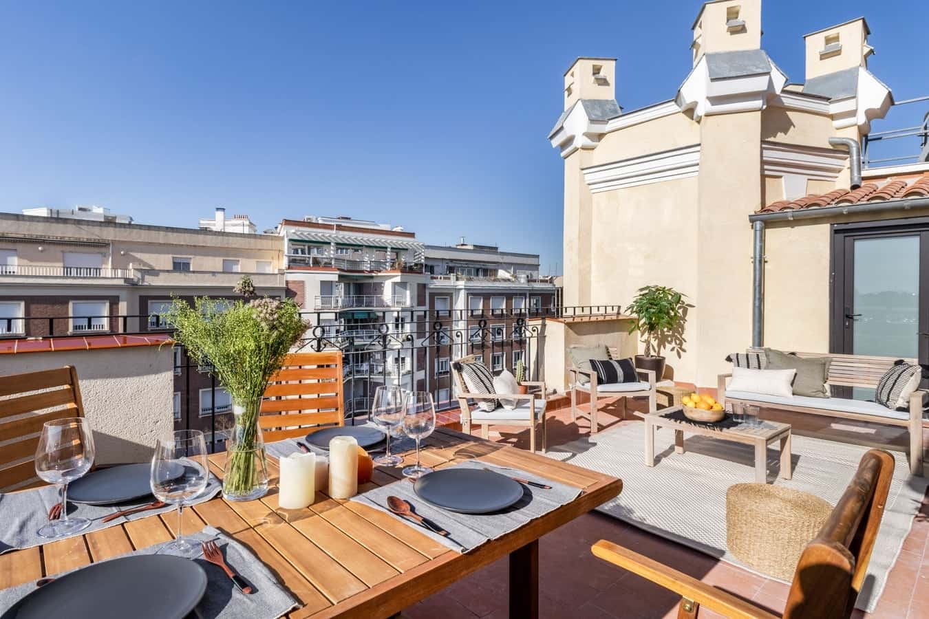 EN Our mission is to empower individuals to immerse themselves in new places by having a home wherever they go. We do this by providing artfully designed fully furnished and serviced apartments for stays of one month or more. We are currently present in some of the most important cities in Europe. Feel right at home in this spacious 113 square meter unique property in the heart of Madrid. Resting at the heart of Madrid's Trafalgar neighborhood, Hoya is the perfect place to take in the natural greenery of Plaza Olavide and soak up Spanish culture. After a stroll through the streets of Madrid, there's nothing better than relaxing at home. Not only does Hoya feature 3 bedrooms, there are also 3 bathrooms. All rooms in this apartment have been uniquely decorated. Two of the bedrooms contain queen size beds, and one with an ensuite bathroom; the third has a twin size bed. All bedrooms have doors that open to a French balcony. All three bathrooms are chic and functional in design with a walk-in shower. Hoya’s mountain theme is evident in the open plan living room and kitchen area due to the exposed wooden beams running across the ceiling. There is a full entertainment system and a table for four. The kitchen has been stylishly decorated and boasts ample space to prepare food in. For the summer months, Hoya offers air conditioning throughout the space for maximum comfort. Step past the mountain forestry of the living space to discover Hoya’s terrace, fitted with an outdoor dining area and lounge area; the location is perfect for taking in the spectacular cityscape of Madrid. Connected to the terrace is an office space with a dedicated workstation for those working remotely. Fully furnished, this home comes with everything you need, including bedding and linens. *We welcome pets, fees are subject to apply. Guests will be informed of any additional charges in the final contract. *We cannot be held liable for any noises (construction, or street noise) done outside the apartment. We also cannot be liable for any rooms without air conditioning (all the rooms with air conditioner will be explicitly explained in our description). We will not accept any reservation cancellations or refund requests related to these two issues. *Our in-house design team expertly selects all apartment furniture and decor to ensure the highest level of quality and comfort. As part of consistent home upkeep, design improvements, and photo staging, there may be minor differences in furnishings seen in the photos and what you find in the apartment. Inquire with a sales agent for any questions or doubts. NRA ESHFNT00002810900001005001100000000000000000000000000