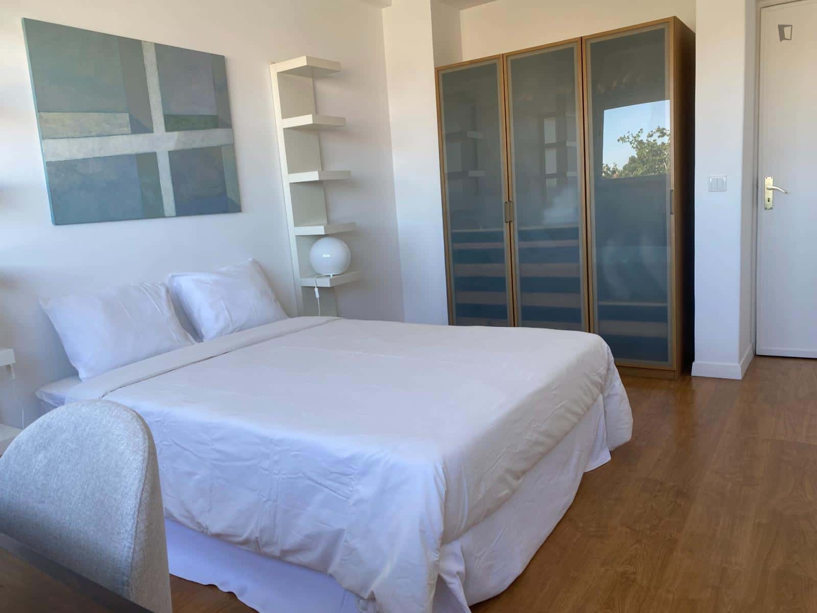 EN If you're coming to Lisbon to study or work, and want to live in a quiet place, this apartment in Olivais might be just the ticket! Comprising a total of 4 bedrooms, 2 of them having their own ensuite bathroom, a common bathroom, a big living room and kitchen, this apartment is located in a residential neighbourhood that includes plenty of supermarkets, cafés and transport links to everywhere in the city - the Olivais metro station being the closest to the flat. It's also quite close to the famous Parque das Nações where you can do all your shopping and have a nice cool drink by the Tejo riverbank. Close by, there are also some green areas for when you want to work out or take a relaxing walk. Total monthly bills included up to: €35 Weekly cleaning of the common areas included. PT Se vem a Lisboa para estudar ou trabalhar e quer viver num local tranquilo, este apartamento em Olivais pode ser a escolha ideal! Com um total de 4 quartos, 2 deles com casa de banho privativa, uma casa de banho comum, uma grande sala de estar e cozinha, este apartamento está localizado num bairro residencial que inclui muitos supermercados, cafés e ligações de transportes para toda a cidade - a estação de metro Olivais é a mais próxima do apartamento. Também fica bastante perto do famoso Parque das Nações, onde pode fazer todas as suas compras e tomar uma bebida refrescante à beira do rio Tejo. Nas proximidades, existem também algumas áreas verdes para quando quiser fazer exercício ou dar um passeio relaxante. Total de despesas mensais incluídas até: 35 € Limpeza semanal das áreas comuns incluída.