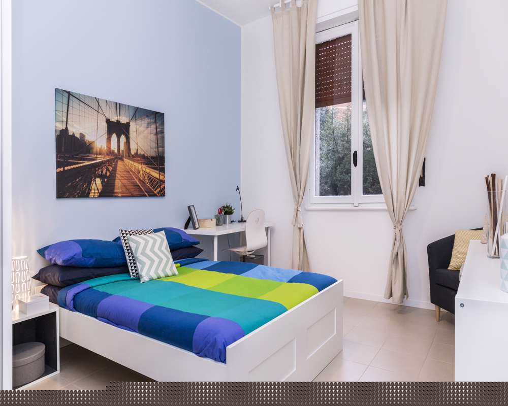 Inquilini all'interno della struttura / Tenants inside the building: 3) Male, Student, 26 EN Single room in a shared apartment, composed by 3 bedrooms and 1 bathroom. Of about 17 sqm with a double bed and a work station. With wifi, concierge services, dishwasher, washing machine. Energy class: G, IPE 211.50 Kwh/Sqm year. IT Stanza singola in un appartamento condiviso, composto da 3 camere e 1 bagno. Stanza di circa 17 mq con un letto matrimoniale e una scrivania. Con wifi, servizio portineria, lavastoviglie, lavatrice. Classe energetica: G, IPE 211.50 Kwh/mq anno. ES Habitación individual en un piso compartido, compuesto por 3 habitaciones y 1 baño. De unos 17 m2 con una cama doble y un puesto de trabajo. Con wi-fi, servicios de conserjería, lavavajillas, lavadora. Clase energética: G, IPE 211.50 Kwh/m2 año. FR Chambre individuelle dans un appartement partagé, composé de 3 chambres et 1 salle de bain. D'une superficie d'environ 17 avec un lit double et un poste de travail.. Avec wifi, services de conciergerie, lave-vaisselle, machine à laver. Classe d'énergie : G, IPE 211.50 Kwh/Sqm année. [ITA]: Non sarà possibile effettuare il check-in di Sabato, Domenica e festivi Sarà necessario un preavviso di 48 ore dalla ricezione del contratto per prenotare il check-in [ENG]: It will not be possible to check in on Saturdays, Sundays and holidays A 48-hour notice from receipt of contract will be required to book check-in [ITA]: - NON E' POSSIBILE EFFETTUARE VISITE. - La biancheria non è inclusa nella camera. - Inquilini: la casa é composta da studenti o giovani lavoratori 20-28 anni. Si tende a mantenere un'occupazione divisa equamente tra inquilini di genere maschile e femminile. - Accetta: Qualsiasi genere - La permanenza minima contrattuale corrisponderà al periodo di prenotazione su Roomless. Qualora si desiderasse uscire prima del check-out selezionato in fase di prenotazione, si potrà esercitare l'opzione di uscita anticipata versando 1,5 mensilità. Nel caso in cui si volesse fare subentrare un inquilino (sia che lo trovi il proprietario sia che lo trovi l'inquilino attuale) si potrà uscire dall'appartamento pagando una spesa di servizio pari a 200€.In questo caso il contratto si chiuderà il giorno precedente all'ingresso del sostituto. Sarà comunque dovuta anche la spesa per la chiusura del contratto pari a 225€.. In ogni caso, 3 mesi rispetto alla data di check-out, va comunicata la disdetta regolare per interrompere il contratto alla data stabilita; se non avverrà tale comunicazione, il contratto rimarrà attivo. - L'appuntamento per l'ingresso in casa dovrà essere prenotato con almeno 3 giorni lavorativi di preavviso rispetto la data d'ingresso di tuo interesse. [ENG]: - VIEWING IS NOT POSSIBLE. - Bed linen is not included in the room. - Tenants: The house is composed of students or young workers 20-28 years old. There is a tendency to maintain an equal split between male and female tenants. - Accepted: Any gender - The minimum contractual stay will correspond to the booking period on Roomless. If you wish to leave before the check-out date selected at the time of booking, you may exercise the option of early departure by paying 1.5 month's rent. In the event that you wish to have a tenant take over (whether the owner or the current tenant finds him/her), you may leave the flat by paying a service charge of €200. In this case the contract will end the day before the replacement tenant moves in. A closing charge of €225 will also be due.. In any case, 3 months before the check-out date, the regular cancellation must be communicated in order to terminate the contract on the established date; if no such communication is made, the contract will remain active. .- Check-in will be guaranteed at least 48 hours after your first contact with the property.