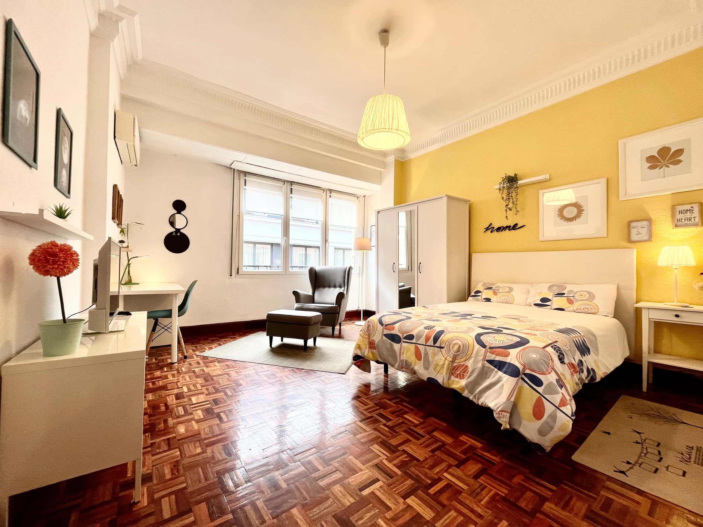 Spacious room for rent, located in the Campo Volantín area (Abando), a quiet and safe area, in its surroundings you will find everything you need to have a pleasant, quiet and comfortable stay, nearby are bus and metro stops. The apartment is prepared with weekly cleaning measures for common areas included in the price. The room and the apartment contain everything you need to have a comfortable and pleasant stay. Se alquila amplia habitación, situada en la zona de Campo Volantín(Abando), zona tranquila y segura, en sus alrededores se encuentra todo lo necesario para tener una estancia agradable tranquila y cómoda, en sus proximidad están paradas de autobús y metro. El apartamento está preparado con medidas de limpieza semanal de las zonas comunes incluidas en el precio. La habitación y el apartamento contiene todo lo necesario para tener una estancia cómoda y agradable.