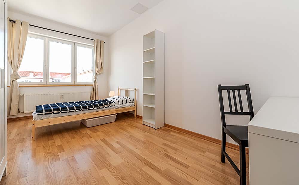 [EN] Our flats fulfil all your daily living requirements. Every flat comes readily equipped with a kitchen, including refrigerator, cooking equipment and dishes. Flats also include a washing machine and Wi-Fi Internet. Each room is fully furnished and offers a comfortable bed with fresh linen and a workspace. The area provides you with several shopping opportunities and excellent connections to public transport. This apartment provides everything you need for comfortable daily living. Your room comes fully furnished, complete with a bed and workspace, and the entire apartment is equally well-equipped. The kitchen includes appliances, cookware, a fridge, and a stove. Additionally, you’ll have access to a washing machine and Wi-Fi. We’re sure you’re curious about your future flatmates! Typically, they are international students or young professionals aged 20 to 35 who enjoy the experience of shared living. While we can’t share further details due to privacy regulations, we’re confident you’ll find a great community here. Please note that each room is for single occupancy, with guests allowed for a maximum of five days per month. To book the apartment, we require a few documents: a copy of your ID and proof of income (we accept flexible options such as an employment or internship contract, blocked account, savings, recent payslips, or similar documents from a guarantor). When booking, you’ll pay the first month’s rent in advance, but rest assured, you’ll only be charged for rent starting from your move-in date.