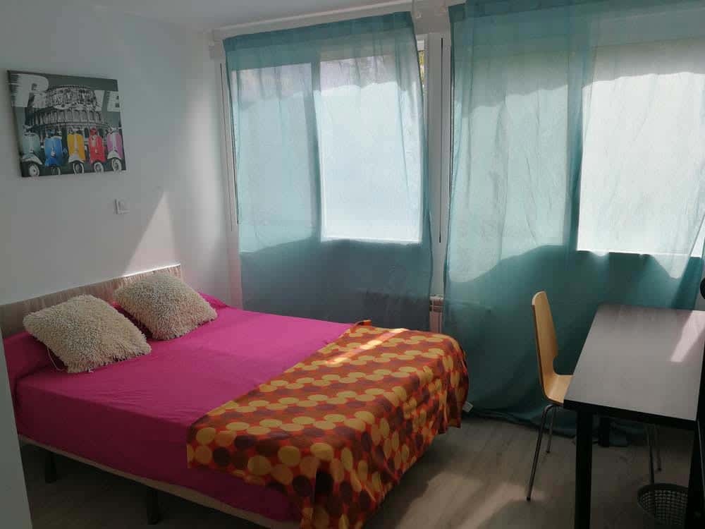 Piso compartido para el Alquiler de habitaciones en elbarrio de Moratalaz, perfectamente comunicado con el centro de Madrid, con el metro Artilleros de la línea 9 y autobús directo a la Puerta del Sol ( bus 20) .también esta muy bien comunicada con la salida a la carretera de Valencia N-III. Moratalaz es un barrio cercano al Retiro y la zona comercial de Goya ( bus 30) y a la Universidad Rey Juan Carlos campus de Vicálvaro .En el barrio se puede aparcar sin necesidad de pagar impuesto del SER.La zona tiene todos los servicios de bancos, bares, restaurantes, supermercados, parques, tiendas, gimnasios, etc.La habitación tiene cama doble de 135 por 190 cm, armario de tres puertas, mesa de estudio ,silla estantería y gran ventanal.El piso en total tiene 4 habitaciones, baño, salón cocina americana, equipada con vitrocerámica, horno, lavadora y frigorífico.