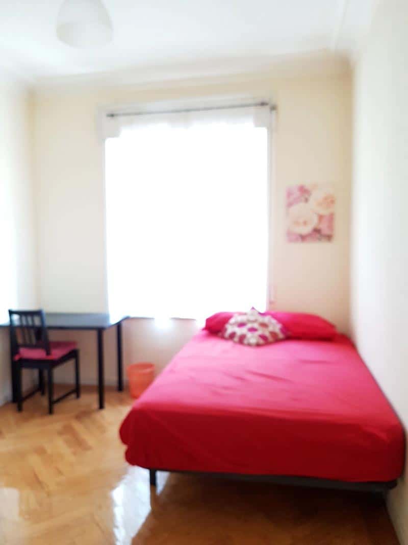 Piso compartido para el alquiler de habitaciones en el distrito de Chamberí, en el barrio de Gaztambide. Situado a unos minutos de Moncloa y Argüelles , del ICAI – ICADE y la Universidad Complutense. La zona tiene un excelente ambiente universitario, el paseo esta lleno de terrazas llenas de gente joven. En el barrio hay supermercados, bares, restaurantes y todo tipo de tiendas.Frente al piso se puede tomar entre otros, el autobús número 2, el 16 y el 61, que te lleva al intercambiador de Moncloa, la calle Princesa, Plaza de España, Gran Vía y Plaza del Callao. El piso esta muy bien comunicado por metro, cerca de las estaciones de Moncloa y Argüelles o Islas Filipinas.La habitación tiene cama grande de 135 por 190 cm, armario de tres puertas, mesa de estudio y silla.