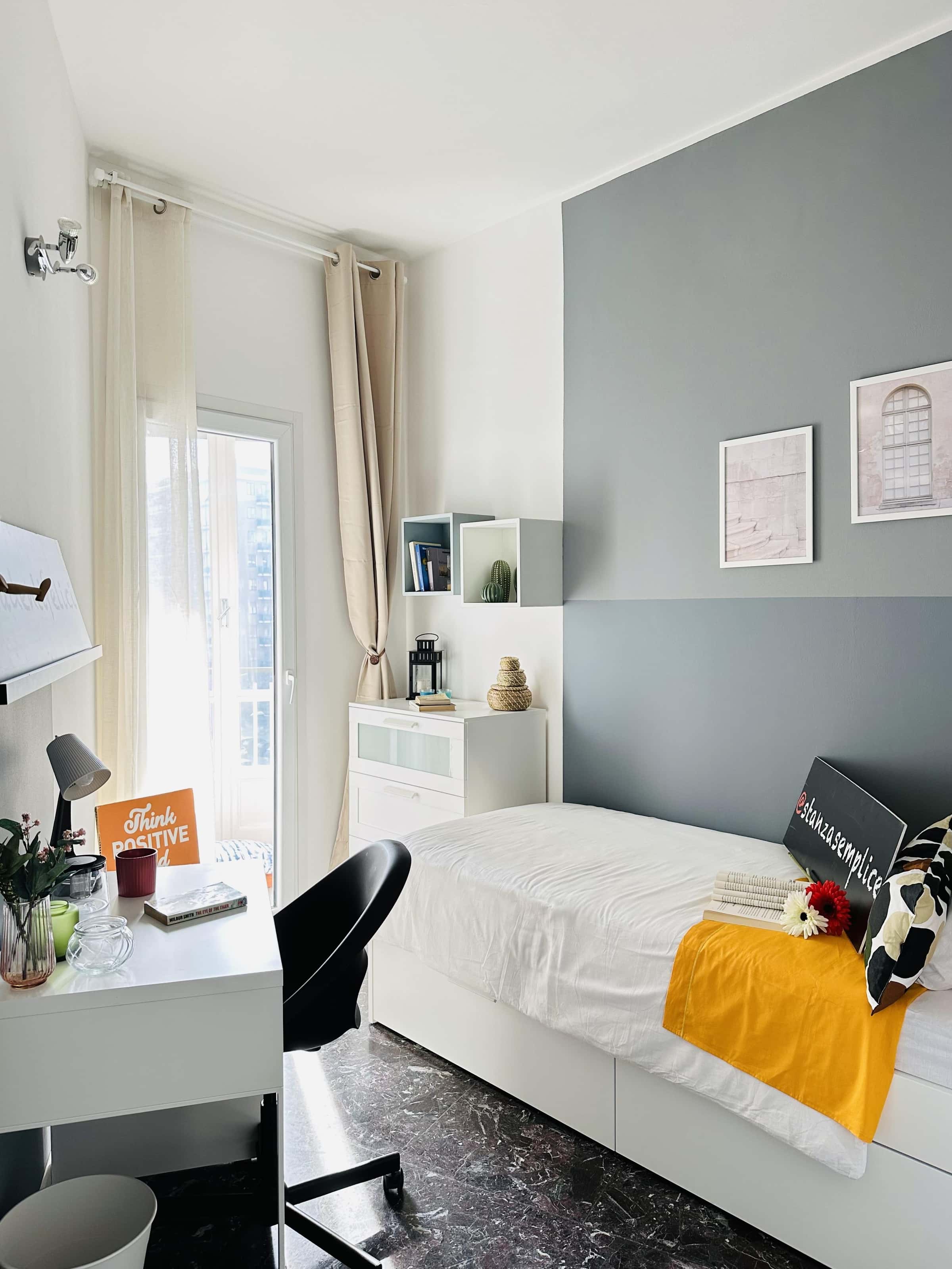 [ITA] Zona Santa Rita, posizione strategica e ambita, si affitta una bellissima stanza singola Stanza Semplice ristrutturata appositamente per offrire comfort e comodità ai nostri studenti. La stanza è dotata di letto singolo, armadio 2 ante, cassettiera, scrivania con portaoggetti, comodino, tendaggi, specchio e libreria. I colori delle pareti favoriscono il buon umore e aiutano nello studio. Situato al quarto piano, luminoso e molto spazioso. 140 mq di superficie. È composto da cucina abitabile, 2 Bagni e 5 stanze singole. L'appartamento è ottimamente ristrutturato in funzione di tutto ciò che occorre ai nostri studenti. Dotato di WI-FI, lavatrice, cucina equipaggiata.