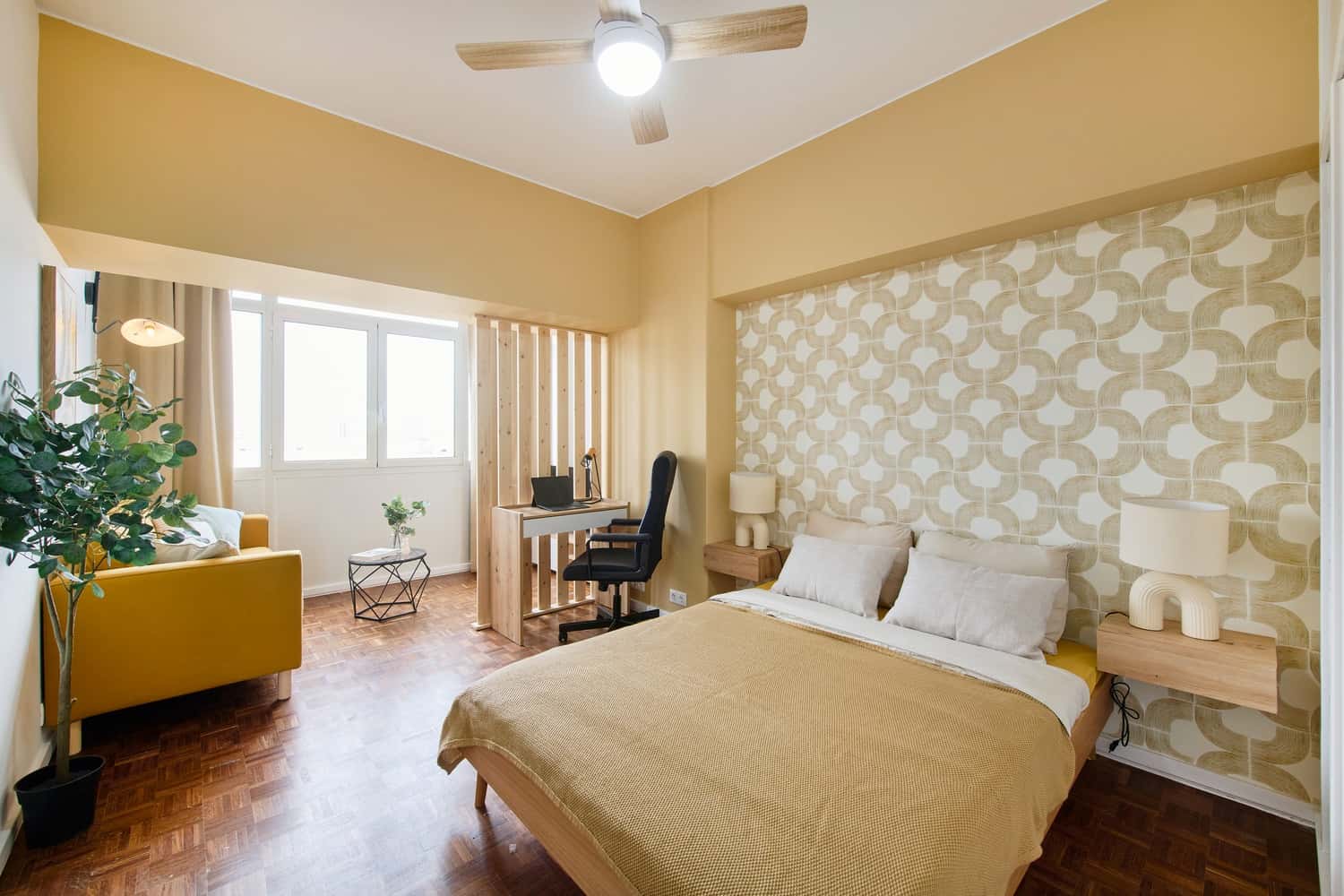 The fresh bedroom is a welcoming and comfortable space, designed to provide residents with a peaceful and restful environment. This room features a cozy double bed (140x190m), a desk, chair and an ample storage for your belongings. Located in Arroios, this home offers easy access to a variety of transports, such as the metro Saldanha (red and yellow line), Arroios (green line) and bus stops. Supermarkets, pharmacies, and universities are conveniently located nearby, making everyday life more convenient. IST (Instituto Superior Técnico) is located within 10 min walking. The house itself is spacious and well equipped, with 9 bedrooms and 3 bathrooms which 1 of them is private. The kitchen has all the necessary appliances and utensils for cooking meals. All bills are included up to 30 euros per person. Cleaning is offered at least 2x per month in common areas. Pillows, duvet and bed sheets are not provided. How does our Reservation Process work: Once your room is booked here, you will receive an email from the landlord requesting the necessary documents to prepare the contract. You must then proceed with paying the last rent, deposit and entry fee directly to the landlord. Your check-in is authorized ONLY 24h after this payment is confirmed in our bank account and the contract is signed. Our check-ins are from Monday to Saturday from 4pm until 7:30pm. No check-ins on Sundays and bank holidays.