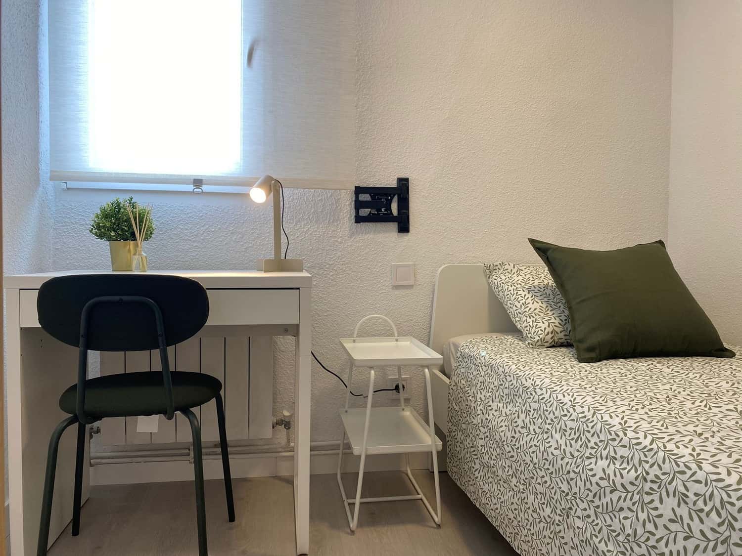 La habitacion está completamente amueblada y cuenta con cama individual, ventilador de techo para mayor confort, un amplio escritorio ideal para estudiar o trabajar, y un espacioso armario para guardar todas tus pertenencias. La habitación es exterior, lo que asegura una excelente iluminación natural durante todo el día. En cuanto a las zonas comunes, El piso cuenta con calefacción de gas natural, lo que asegura un ambiente cálido y confortable en los meses más fríos, además de ventiladores de techo en las habitaciones para los días más calurosos. El baño está completamente equipado con un moderno plato de ducha. La cocina es muy funcional y dispone de todos los electrodomésticos necesarios: microondas, horno, vitrocerámica, espacio de desayuno y despensa, proporcionando espacio adicional para almacenaje. El ambiente es tranquilo y bien comunicado, ideal para estudiantes o profesionales que buscan un lugar cómodo para vivir. Incluye Wifi y dos limpiezas mensuales a las zonas comunes. ¡No pierdas la oportunidad de vivir en una zona con todos los servicios a tu alcance! ¡¡¡Bienvenidos hogar de estudiantes y jóvenes profesionales!!! Se alquilan habitaciones en un amplio y acogedor piso ubicado en el barrio de Villaverde. A solo 3min andando de la estancia San Cristóbal de los Ángeles de Renfe (C3) Y 900m de la línea 3 de metro, con múltiples opciones de comercio y zonas verdes como el Parque. De las ardillas, y también Polideportivo Municipal Raúl González. A 700m el supermercado DIA y 1km del Mercadona. El piso cuenta con calefacción de gas natural, lo que asegura un ambiente cálido y confortable en los meses más fríos, además de ventiladores de techo en las habitaciones para los días más calurosos. El baño está completamente equipado con un moderno plato de ducha. La cocina es muy funcional y dispone de todos los electrodomésticos necesarios: microondas, horno, vitrocerámica, espacio de desayuno y despensa, proporcionando espacio adicional para almacenaje. El ambiente es tranquilo y bien comunicado, ideal para estudiantes o profesionales que buscan un lugar cómodo para vivir. Incluye Wifi y dos limpiezas mensuales a las zonas comunes. ¡No pierdas la oportunidad de vivir en una zona con todos los servicios a tu alcance!