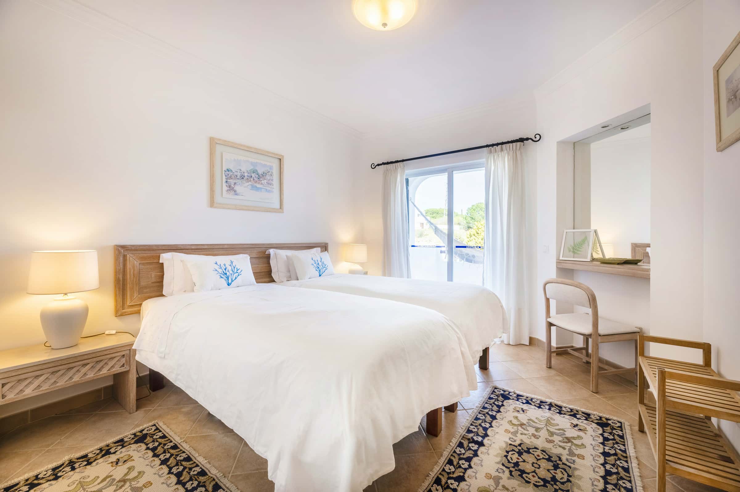 One bedroom apartment located in the exclusive Clube Albufeira, a resort with 4 swimming pools, mini golf, mini-market and restaurants that provide the best of the Portuguese cuisine. Here you can enjoy the tranquility by the pool, stroll in the surrounding gardens and be dazzled by the beautiful beaches within a short walking distance. → Condominium The apartment is inserted in the condominium Clube Albufeira, surrounded by gardens, swimming pools, restaurants, snack-bars, mini-golf, playground and a mini-market. → Bedroom The apartment has one bedroom with 2 single beds. → Bathroom The apartment has a bathroom with a shower and a bathtub. → Living room The living room features a flat-screen TV, a comfortable sofa bed, air conditioning, dining table, and access to a private balcony with dining area. → Kitchen The kitchen is fully equipped with a stove, oven, refrigerator, microwave, washing machine and coffee maker (coffee not included). → Pools The condominium features 4 pool areas, one of which is climate-controlled (adapted to the outdoor temperature), with sunbeds, restrooms, a snack bar or restaurant, as well as children's pools. All pools are open year-round from 8:00 AM to 7:00 PM. Additional Information: → The property is Self-Catered. Complimentary basic items are provided for your arrival, including first-day toiletries, toilet paper, etc. These items are offered on a welcome basis only - replacements or re-fills are not provided. → Bed and bath linen are provided according to the number of guests confirmed in the reservation. For stays longer than 7 nights, additional bed and bath linen will be provided for free at the check-in. → The Cleaning Fee included in your reservation covers the check-out cleaning only. Extra cleanings or fresh linens can be requested during your stay and are subject to an extra fee - these requests must be done with at least 24 hours in advance. → Check-in time starts from 16:00 to 22:00 (additional cost of 25€ for check-ins after 22:00 and 50€ after 00:00). Only one set of keys will be provided. → We are obligated by Portuguese law to collect our guest's Passport information. → Check-out must be done until 10am. Before leaving, please place the keys on the main table. Never leave them inside the lock or in the mailbox. Be aware that in case of loss or damage of the keys (or lock), a penalty fee will be applied. → Crib and baby chair are available upon request and subject to an extra fee. → Pool in operation, however may be under maintenance without notice from the condominium. → The gym is temporarily out of service. → The Resort has access control to the facilities. All guests must wear a (reusable) wristband, which gives access to the facilities. Each wristband costs 20€ in cases of loss. → Night trips due to issues beyond the control of the property will have an extra cost of €25 from 10:00 pm and €50 from 00:00 am. Please contact us for more information.