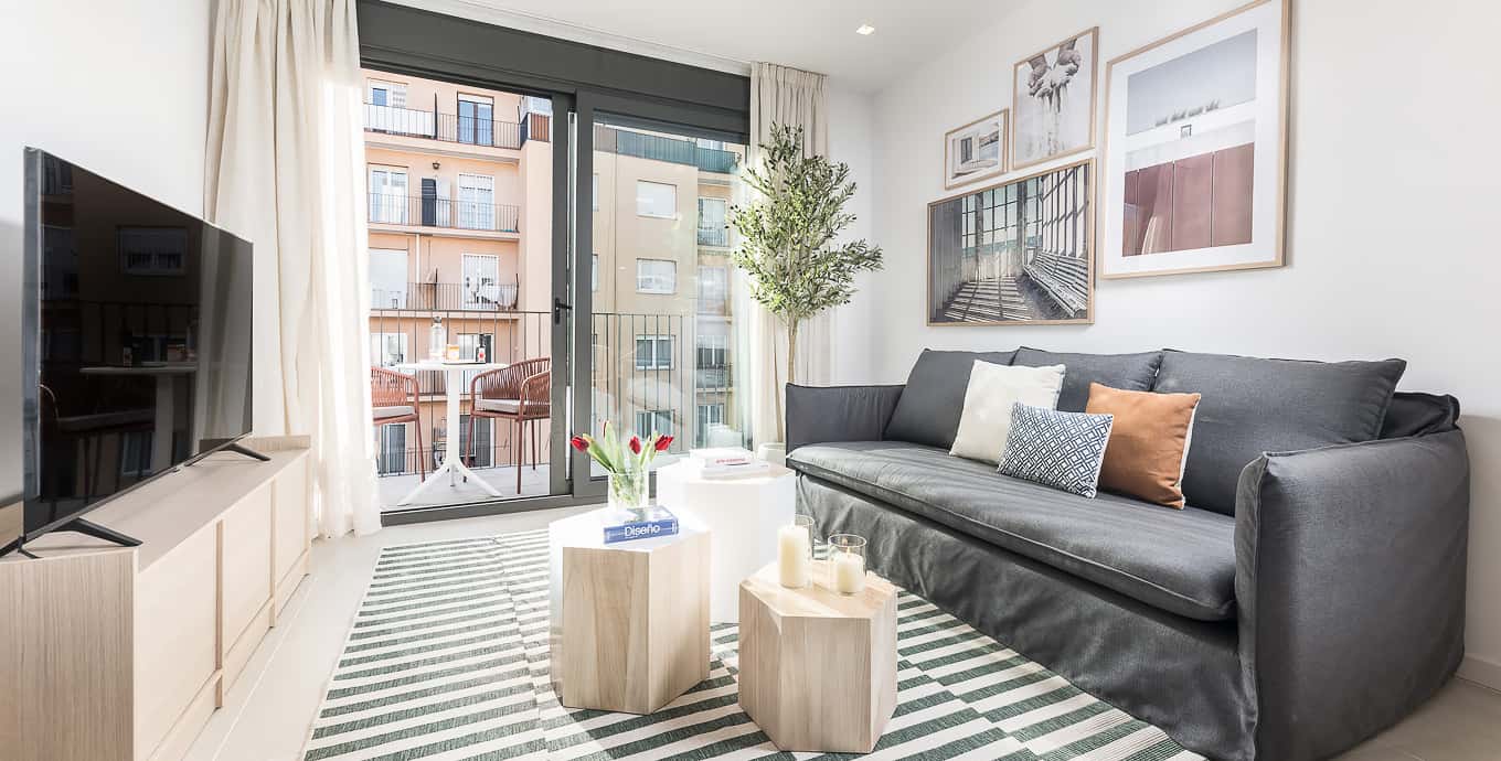 [EN] Fully furnished apartment in Gràcia with private balcony and rooftop terrace – Ideal for monthly stays This fully furnished apartment is located in a newly constructed building completed in 2025, specifically designed for medium- and long-term stays. Its layout and features are tailored to meet the needs of business travelers and digital nomads looking for a quiet, functional, and well-connected environment in Barcelona. The interior has been designed by the Homeclub Design team, with a contemporary and practical approach. The apartment features a private balcony, offering an independent outdoor space ideal for working or relaxing in the open air. It includes a fully equipped kitchen, an open-plan living and dining area, and two bedrooms designed for rest. One of the bedrooms has a sliding door that opens directly onto the balcony, providing greater flexibility in the use of space and enhancing natural light and visual continuity throughout the apartment. Large windows facing an interior courtyard ensure a quiet and naturally bright atmosphere throughout the day. Residents also have access to a communal rooftop terrace, furnished with a dining area and sofas, offering open views of the Barcelona skyline and Tibidabo mountain. The building is located in the Gràcia neighborhood, a well-established residential area that combines local charm with a wide range of services. Just steps away, you'll find cafés, restaurants, coworking spaces, convenience shops, and excellent public transport connections. It's a practical setting for those who need autonomy and mobility during their professional stay in the city. [ES] Este apartamento completamente amueblado se encuentra en un edificio de nueva construcción finalizado en 2025 y está diseñado específicamente para estancias mensuales o de larga duración. Su distribución y equipamiento responden a las necesidades de profesionales desplazados y nómadas digitales que buscan un entorno tranquilo, funcional y bien conectado en Barcelona. La decoración ha sido realizada por el equipo de interiorismo de Homeclub Design, con un enfoque contemporáneo y práctico. La vivienda dispone de un balcón privado que ofrece un espacio exterior independiente, ideal para trabajar o desconectar al aire libre. El apartamento cuenta con una cocina totalmente equipada, una zona de estar integrada con el comedor y dos dormitorios orientados al descanso. Uno de ellos incorpora una puerta corredera que conecta directamente con el balcón, lo que aporta mayor flexibilidad en el uso del espacio y favorece la entrada de luz natural y la continuidad visual en todo el apartamento. Grandes ventanales orientados a un patio interior garantizan un ambiente silencioso y luminoso durante toda la jornada. Además, los residentes pueden acceder a una terraza comunitaria en la azotea, equipada con zona de comedor y sofás, desde la que se disfrutan vistas abiertas del skyline de Barcelona y de la montaña del Tibidabo. El edificio está ubicado en el barrio de Gràcia, una zona residencial consolidada que combina vida local con una oferta completa de servicios. A pocos pasos se encuentran cafeterías, restaurantes, espacios de coworking, tiendas de proximidad y excelentes conexiones de transporte público. Un entorno práctico para quienes necesitan autonomía y movilidad durante su estancia profesional en la ciudad. Pets are allowed -with an extra cleaning fee- / se permiten mascotas con un pago adicional de limpieza. Utilities are included in the price up to a specified amount for further info please ask / Los servicios públicos están incluidos en el precio hasta una cantidad específica para mayor información por favor consultar.