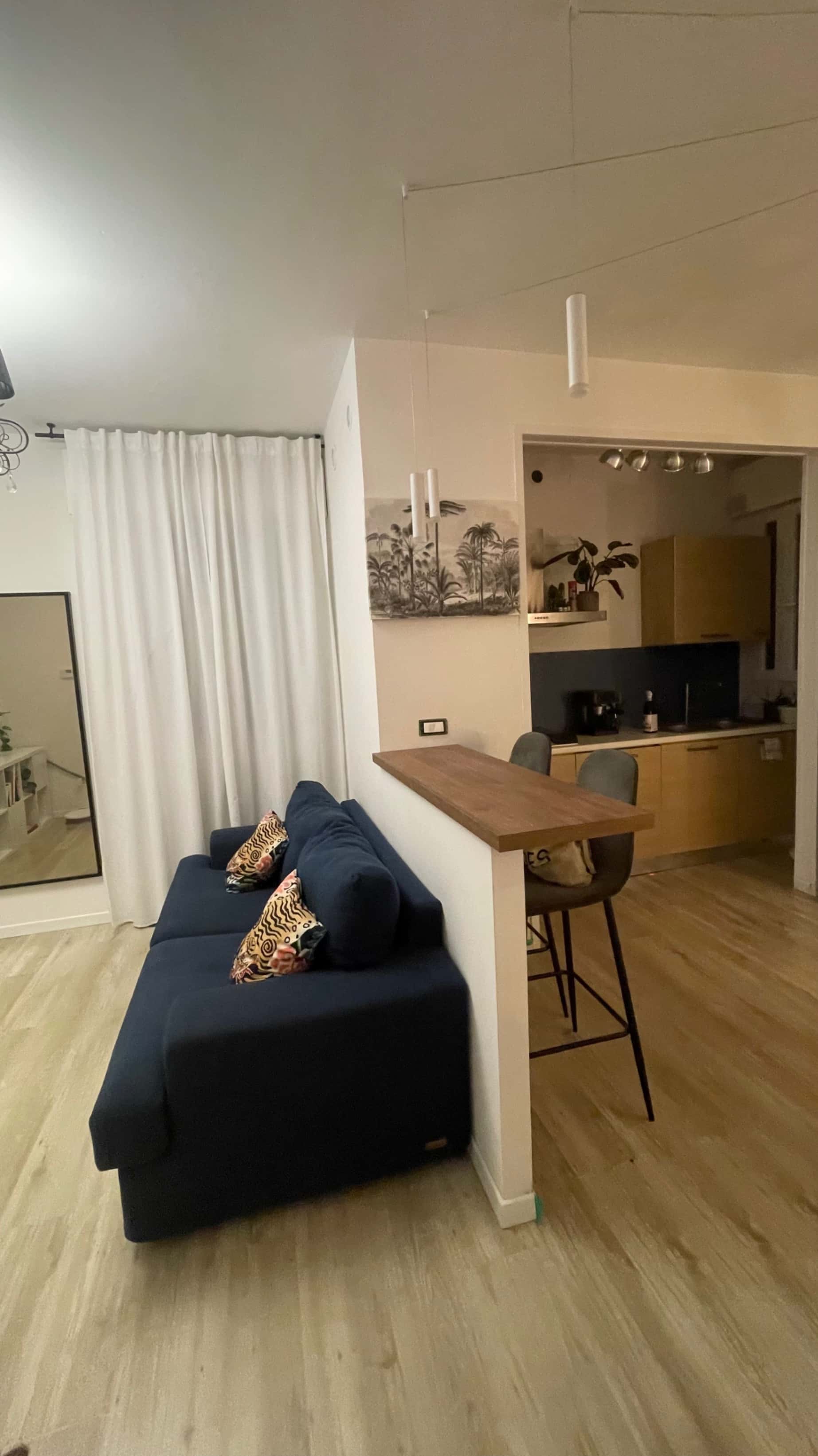 L'appartamento è libero dal giorno 2025-12-25. L'appartamento ha una superficie totale di 60 metri quadrati. Ci sono 1 camera/e da letto, 1 bagno/i. . Inoltre ha 1 salotto/i. Il costo del condominio è compreso nel canone mensile. Per le utenze è previsto un costo medio di 90€ che comprende gas, acqua, elettricità. Viene richiesto un minimo di permanenza di 1 mese/i. È possibile prenotare direttamente online.