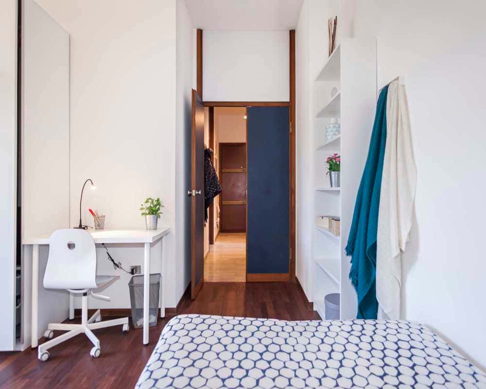Inquilini all'interno della struttura / Tenants inside the building: 1) Female, Student, 23 2) Female, Worker, 28 4) Male, Worker, 25 EN Single room in a shared apartment, composed by 4 bedrooms and 2 bathrooms. Of about 24 sqm with a one and a half bed and a work station. With wifi, concierge services, dishwasher, washing machine. Energy class: G, IPE 309.76 Kwh/Sqm year. IT Stanza singola in un appartamento condiviso, composto da 4 camere e 2 bagni. Stanza di circa 24 mq con un letto a una piazza e mezza e una scrivania. Con wifi, servizio portineria, lavastoviglie, lavatrice. Classe energetica: G, IPE 309.76 Kwh/mq anno. ES Habitación individual en un piso compartido, compuesto por 4 habitaciones y 2 baños. De unos 24 m2 con una cama y media y un puesto de trabajo. Con wi-fi, servicios de conserjería, lavavajillas, lavadora. Clase energética: G, IPE 309.76 Kwh/m2 año. FR Chambre individuelle dans un appartement partagé, composé de 4 chambres et 2 salles de bain. D'une superficie d'environ 24 avec un lit et demi et un poste de travail.. Avec wifi, services de conciergerie, lave-vaisselle, machine à laver. Classe d'énergie : G, IPE 309.76 Kwh/Sqm année. [ITA]: Non sarà possibile effettuare il check-in di Sabato, Domenica e festivi Sarà necessario un preavviso di 48 ore dalla ricezione del contratto per prenotare il check-in [ENG]: It will not be possible to check in on Saturdays, Sundays and holidays A 48-hour notice from receipt of contract will be required to book check-in [ITA]: - NON E' POSSIBILE EFFETTUARE VISITE. - La biancheria non è inclusa nella camera. - Inquilini: la casa é composta da studenti o giovani lavoratori 20-28 anni. Si tende a mantenere un'occupazione divisa equamente tra inquilini di genere maschile e femminile. - Accetta: Qualsiasi genere - La permanenza minima contrattuale corrisponderà al periodo di prenotazione su Roomless. Qualora si desiderasse uscire prima del check-out selezionato in fase di prenotazione, si potrà esercitare l'opzione di uscita anticipata versando 1,5 mensilità. Nel caso in cui si volesse fare subentrare un inquilino (sia che lo trovi il proprietario sia che lo trovi l'inquilino attuale) si potrà uscire dall'appartamento pagando una spesa di servizio pari a 200€.In questo caso il contratto si chiuderà il giorno precedente all'ingresso del sostituto. Sarà comunque dovuta anche la spesa per la chiusura del contratto pari a 225€.. In ogni caso, 3 mesi rispetto alla data di check-out, va comunicata la disdetta regolare per interrompere il contratto alla data stabilita; se non avverrà tale comunicazione, il contratto rimarrà attivo. - L'appuntamento per l'ingresso in casa dovrà essere prenotato con almeno 3 giorni lavorativi di preavviso rispetto la data d'ingresso di tuo interesse. [ENG]: - VIEWING IS NOT POSSIBLE. - Bed linen is not included in the room. - Tenants: The house is composed of students or young workers 20-28 years old. There is a tendency to maintain an equal split between male and female tenants. - Accepted: Any gender - The minimum contractual stay will correspond to the booking period on Roomless. If you wish to leave before the check-out date selected at the time of booking, you may exercise the option of early departure by paying 1.5 month's rent. In the event that you wish to have a tenant take over (whether the owner or the current tenant finds him/her), you may leave the flat by paying a service charge of €200. In this case the contract will end the day before the replacement tenant moves in. A closing charge of €225 will also be due.. In any case, 3 months before the check-out date, the regular cancellation must be communicated in order to terminate the contract on the established date; if no such communication is made, the contract will remain active. .- Check-in will be guaranteed at least 48 hours after your first contact with the property.