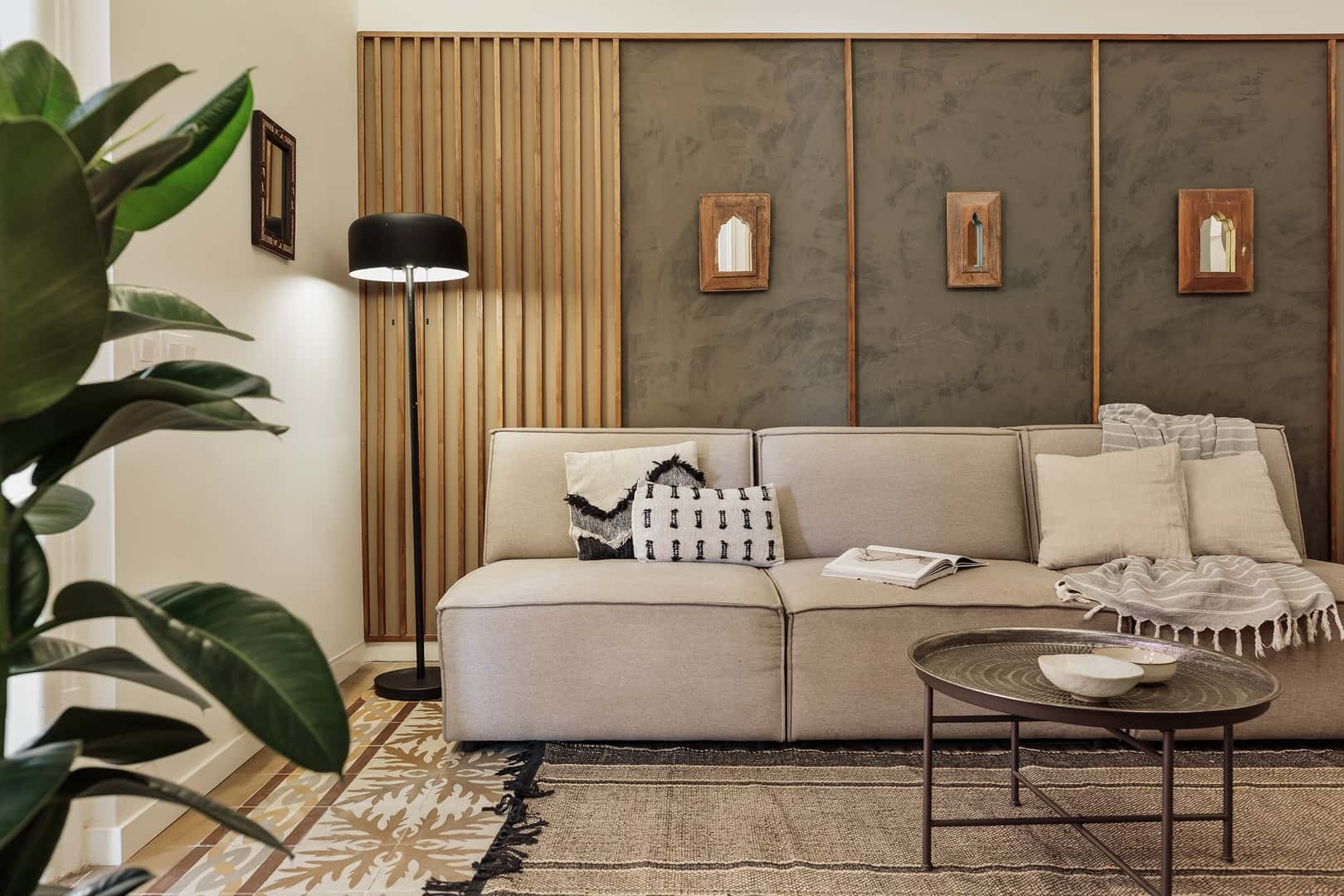 Evoking a Saharan experience, all 110 square meters of Erfoud’s space feel exquisitely on-theme. This three-bedroom, two-bath beauty rests in the heart of Gracia. Known for its eclectic charm, Gracia boasts an array of artisanal shops and local eats. When it's time to rest, step inside Erfoud’s escape. A unique feature to Barcelona builds, Erfoud offers a spacious foyer, complete with chandelier lighting and an entry table. Erfoud’s foyer then branches off into a left and right hall with traditional Catalan tiling leading the way. The first door down the left hallway reveals a multi-functional space. Inside this room, the left offers built-in storage while the right door within the space leads to a full bathroom with a curbless, walk-in shower. Continue down the hall to find the kitchen through the next left door. The kitchen feels luminous with backlit countertops and all-white cabinetry. The space is equipped with modern appliances and all the necessary kitchenware. The door at the end of the hall opens up to Erfoud’s salon. The living room is a divine blend between North African design and Catalan classics. A traditional fireplace matches the feel of the ceramic tiling underneath while the Celosia-framed sofa and natural fiber rugs give the room a Saharan flare. The door to the left of the living room leads to Erfoud’s first bedroom. Organic textiles cover the queen-sized bed. The room is complete with slate-hued, floor-to-ceiling storage. Back through the living room, the door at the end of the space leads to a sunlit four-person dining area. The all-glass back wall and lantern lighting provide a multitude of options for radiance. To the left of the dining room is the second bathroom complete with a walk-in shower. Heading back to the entrance and into the second hallway, the first door on the right reveals another multi-purpose space. Perfect for visitors or productivity, a dedicated workstation sits in the left corner while the far end of the room offers a comfortable daybed. At the end of the hallway is the final bedroom. Rich tones of caramel creams and earthy browns blend to create a luxurious space. The queen-sized canopy bed stretches towards the vaulted ceilings. The right of the room offers floor-to-ceiling storage while the left of the bedroom reveals a balcony overlooking the Gracia landscape. For freshness, this apartment comes equipped with air conditioning in the Living Room. All bedding and linens provided. *We welcome pets, fees are subject to apply. Guests will be informed of any additional charges in the final contract. *We cannot be held liable for any noises (construction, or street noise) done outside the apartment. We also cannot be liable for any rooms without air conditioning (all the rooms with air conditioner will be explicitly explained in our description). We will not accept any reservation cancellations or refund request related to these two issues. *Our in-house design team expertly selects all apartment furniture and decor to ensure the highest level of quality and comfort. As part of consistent home upkeep, design improvements, and photo staging, there may be minor differences in furnishings seen in the photos and what you find in the apartment. Inquire with a sales agent for any questions or doubts. *This accommodation may only be used for stays longer than 31 nights for personal purposes such as holiday, recreational, or leisure. The information provided may be submitted to the relevant registry and/or administrative authority in accordance with Catalan regulations.