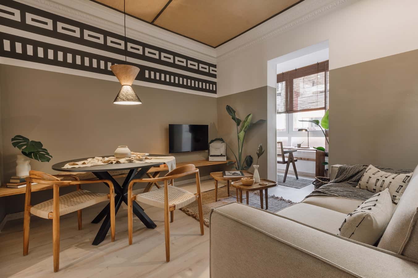 Nestled in the vibrant neighborhood of Gracia, the Bambuti apartment offers a unique jungle-themed experience that transports you to a tropical paradise. The greens from plants and abstract decorations mesh perfectly with the vibrant and quirky Gracia. With 85 square meters of living space, this stunning apartment is perfect for anyone looking for a comfortable and stylish retreat. Bambuti features three bedrooms, two with queen size beds and one with a single bed. Two of the bedrooms have balcony access, offering stunning views of the city. The apartment also includes 1.5 bathrooms, ensuring that everyone has enough space and privacy. The living room is the perfect place to relax and unwind, with a full entertainment system and a comfortable dining table for enjoying meals with family and friends. The office space sun room is perfect for those who need to catch up on work, featuring a dedicated workstation with natural light pouring in. The fully furnished kitchen has everything you need to prepare delicious meals. The jungle theme of the apartment adds to the overall ambiance and makes for a unique and exciting stay. Air conditioning in the living room and corridor ensures that you are comfortable during your stay. Experience the best of Gracia with the Bambuti apartment, your home away from home in Barcelona. Fully furnished, this apartment comes with everything you need, including bedding and linens. For freshness, this apartment comes equipped with air conditioning in the Living Room and in the corridor. *We welcome pets, fees are subject to apply. Guests will be informed of any additional charges in the final contract. *We cannot be held liable for any noises (construction, or street noise) done outside the apartment. We also cannot be liable for any rooms without air conditioning (all the rooms with air conditioner will be explicitly explained in our description). We will not accept any reservation cancellations or refund request related to these two issues. *Our in-house design team expertly selects all apartment furniture and decor to ensure the highest level of quality and comfort. As part of consistent home upkeep, design improvements, and photo staging, there may be minor differences in furnishings seen in the photos and what you find in the apartment. Inquire with a sales agent for any questions or doubts. *This accommodation may only be used for stays longer than 31 nights for personal purposes such as holiday, recreational, or leisure. The information provided may be submitted to the relevant registry and/or administrative authority in accordance with Catalan regulations.
