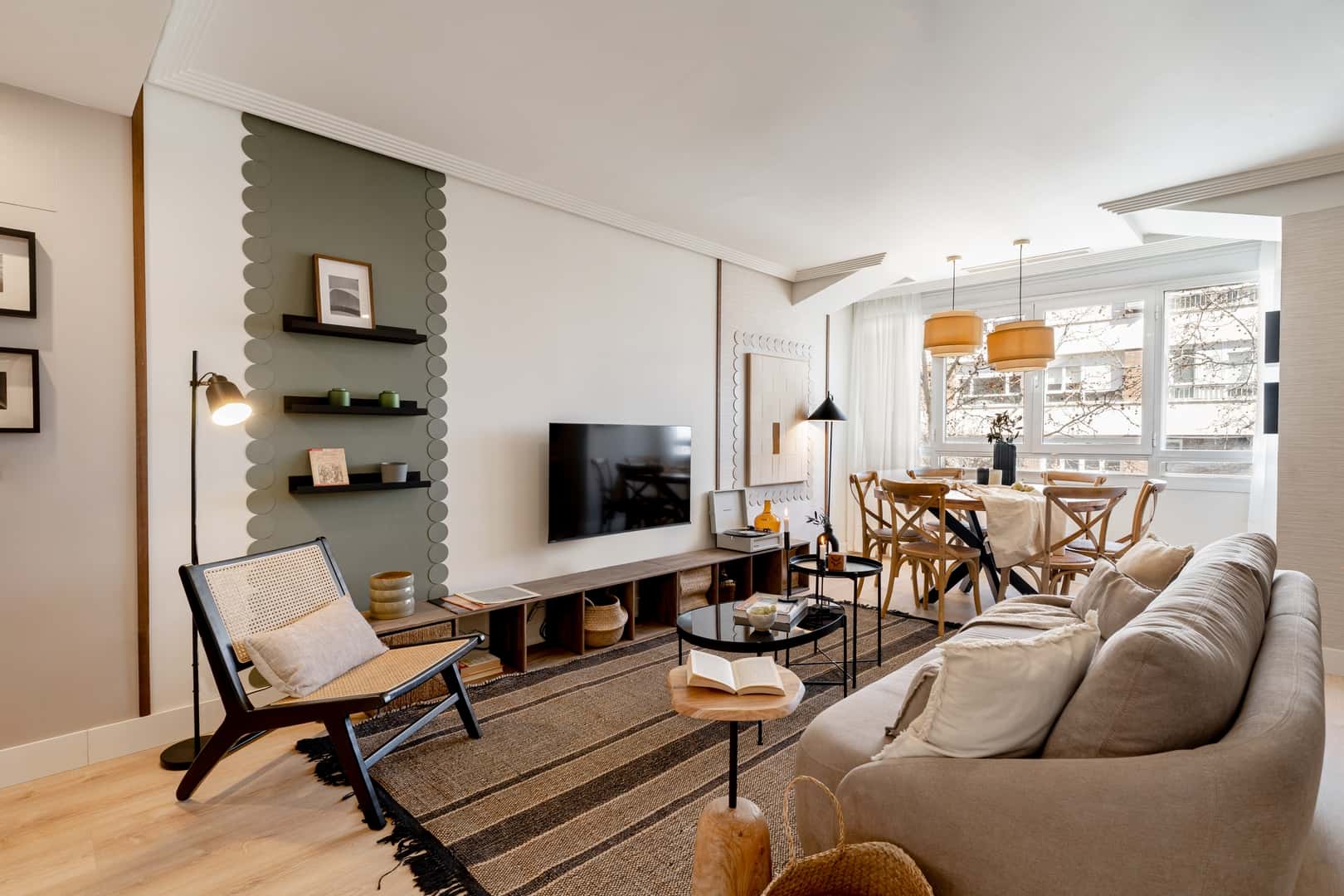 Spectacular apartment in Félix Boix street, with 3 bedrooms and 2 bathrooms. The kitchen is equipped with appliances and kitchenware. The beds are equipped with soft bedding, ideal for a good night's rest. The apartment has 2 bathrooms equipped with a full shower and towels. In addition, the apartment is equipped with high-speed WiFi and a SmartTV. The apartment has a washing machine, dishwasher, and air conditioning for your maximum comfort. *This apartment comes equipped with a ducted air system in all rooms for absolute comfort. *Utilities are not included in the rental price and are charged separately. These additional costs will be clearly outlined in the final contract provided to our tenants. *We welcome pets, fees are subject to apply. Guests will be informed of any additional charges in the final contract. *We cannot be held liable for any noises (construction, or street noise) done outside the apartment. We also cannot be liable for any rooms without air conditioning (all the rooms with air conditioner will be explicitly explained in our description). We will not accept any reservation cancellations or refund requests related to these two issues. *Our in-house design team expertly selects all apartment furniture and decor to ensure the highest level of quality and comfort. As part of consistent home upkeep, design improvements, and photo staging, there may be minor differences in furnishings seen in the photos and what you find in the apartment. Inquire with a sales agent for any questions or doubts. Nueva España is a tranquil, upscale neighborhood iof Chamartin, characterized by its modern residential buildings and leafy streets. The area offers a peaceful atmosphere, making it an attractive option for families and professionals seeking furnished housing in Madrid. Notable spots in Nueva España include the serene Parque de Berlín, the cultural Centro Cultural Nicolás Salmerón, and the vibrant Calle de Costa Rica. For dining, Restaurante La Penela offers authentic Galician cuisine, while Asador Casa Juan is famous for its traditional Spanish dishes. The neighborhood is well-served by public transportation, with nearby metro stations like Colombia and Pío XII. Fitness enthusiasts can visit the Metropolitan Eurobuilding gym, enjoy a coffee at Miga Bakery, or work at the co-working space in Utopicus Castellana.