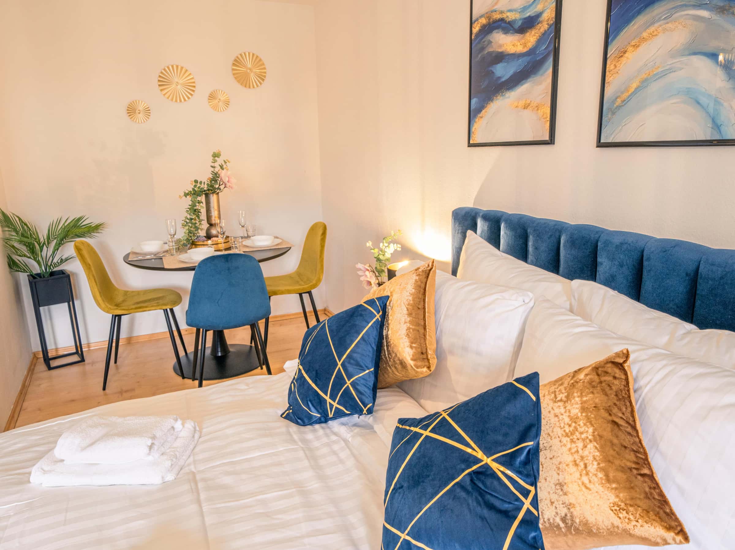 Exklusives Studio in Ludwigshafen Süd – Löffelfertig & Hochwertig Willkommen in Ihrem neuen Zuhause auf Zeit. Dieses frisch renovierte und von einem Interior-Designer ausgestattete Studio in der Yorckstraße ist Ihre perfekte Basis in der Metropolregion. Es wurde speziell für Berufstätige, Expats und BASF-Pendler konzipiert, die zentral wohnen wollen und Wert auf ein hochwertiges Wohnambiente legen. DAS HIGHLIGHT Sie wohnen in einer der besten Lagen von Ludwigshafen (Süd) mit perfekter Anbindung. Das absolute Highlight ist das durchdachte Interior-Konzept: Von der exklusiven Fototapete über den edlen Marmortisch bis hin zum Premium-Schlafsessel ("Bruno") – hier wurde an keinem Detail gespart. DIE LAGE (Ideal für Pendler) ✅ Auto & Verkehr: Perfekte und schnelle Anbindung an das BASF-Werksgelände sowie die Autobahnen/Bundesstraßen der Region. ✅ ÖPNV: Der Hauptbahnhof ist in nur ca. 5 Gehminuten erreichbar. Von dort sind Sie in unter 10 Minuten in Mannheim (ICE-Knotenpunkt). ✅ Erholung: Die Rheinpromenade und die idyllische Parkinsel sind fußläufig erreichbar – ideal zum Joggen oder Abschalten nach Feierabend. Alltagseinrichtungen (Supermärkte, Bäcker) liegen direkt vor der Tür. DAS APARTMENT (Ausstattung) Eine voll ausgestattete Premium-Lösung – Koffer auspacken und wohlfühlen. ✅ Work: High-Speed WLAN und edler Marmortisch als großzügiger Arbeitsplatz. ✅ Sleep: Komfortables Design-Polsterbett aus Samt (160x200 cm) mit langlebiger Taschenfederkern-Matratze und Hotel-Bettwäsche. ✅ Living: Smart-TV, "Bruno"-Design-Sessel, blau-goldenes Sideboard und hochwertige Abdunklungsgardinen (perfekt für Schichtarbeiter). ✅ Küche: Eigene moderne Einbauküche mit Kochfeld, Kühlschrank, Kaffeemaschine, Töpfen, Geschirr & Besteck. ✅ Bad: Gepflegtes, modernes Duschbad. SERVICES & KONDITIONEN ✅ All-Inclusive: Die Miete beinhaltet Strom, Heizung, Wasser, High-Speed-Internet und die komplette Möblierungsnutzung. Keine versteckten Kosten! ✅ Anmeldung: Wohnungsgeberbestätigung (für Behörden/Visum) wird selbstverständlich ausgestellt. ✅ Flexibilität: Ideal für projektbezogene Aufenthalte (1 bis 12 Monate). Managed by AlkunInvest – Professional Service & Quality Living.