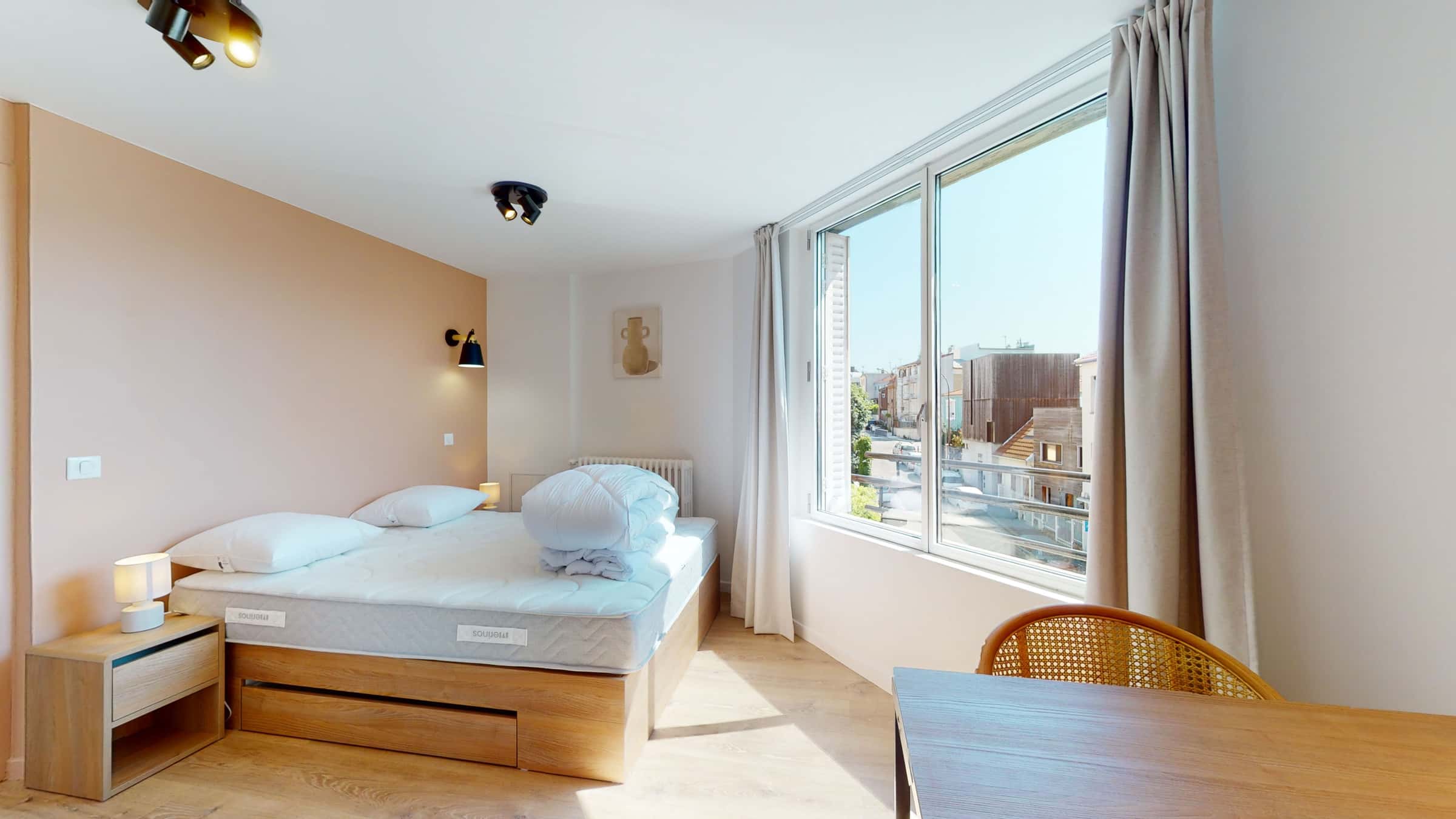 Share with your loved one this beautiful room designed for two people. You will have all the privacy you need as you will enjoy your own private bathroom. Please be free to sing as loud as possible (but please don't make it rain...) Hi, I'm Atwood ! I'm a newly renovated residence in Montreuil. A 5-minute walk from downtown Montreuil, I am very (very) accessible by metro line 9 (Stop : Mairie de Montreuil). With my 260 m2, it is enough to accommodate the full and exciting lives of 12 happy tenants. My plan to treat you? Living room, kitchen, dining room but also a projection room and a cosy outdoor ! All in a natural and friendly atmosphere. And because you can share a rent but not your intimacy, I offer to each one its night space with its bathroom. Who says better? Want to live with me? Step out of the box, into your own home