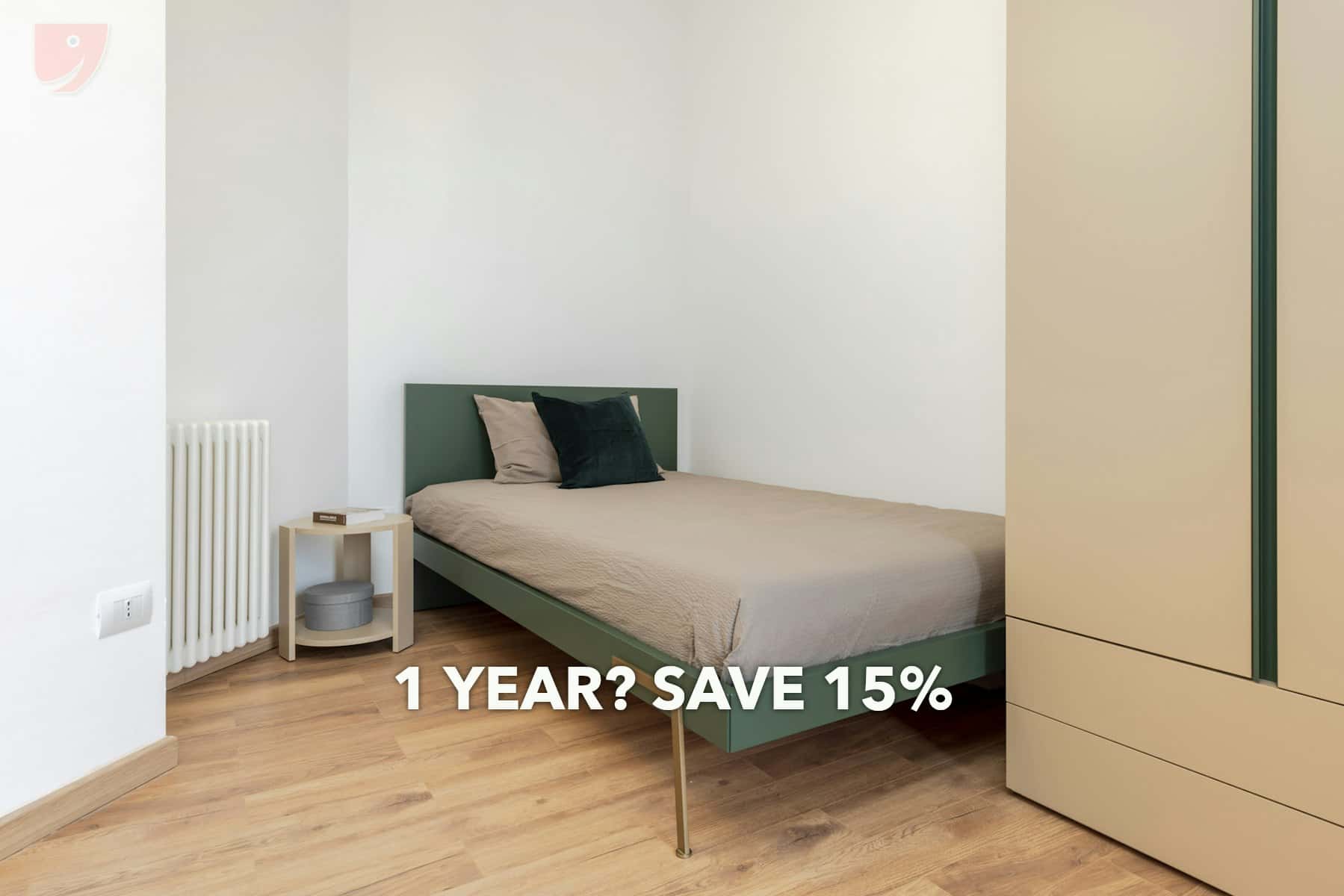[ITA] Nella nostra azienda amiamo i soggiorni a lungo termine! Usufruite di sconti significativi se soggiornate con noi per 12 mesi. Se dovete soggiornare per meno di 12 mesi ma trovate qualcuno che vi sostituisca per il periodo rimanente, entrambi beneficerete dei nostri sconti sostanziali. Richiedete un preventivo oggi stesso e iniziate a risparmiare!Questa luminosa singola è un'oasi moderna e funzionale per studenti, con 12 m² di spazio ottimizzato. Dotata di un letto confortevole, ampio armadio, e una scrivania pronta per le sessioni di studio, si affaccia su un balcone con una splendida vista su Ferrara. Appartamento moderno, perfetto per studenti in cerca di un equilibrio tra vita universitaria e comfort cittadino. • Camere da 9 a 20 mq, pensate per garantire privacy e comodità. • Zona giorno spaziosa con doppio piano cottura e frigo, ideale per studiare e rilassarsi. • Tre bagni moderni per ridurre le attese. • Lavanderia con asciugatrice, addio allo stendino!Ogni dettaglio è studiato per offrirti un’esperienza universitaria memorabile. [ENG] At our company, we love long-term stays! Enjoy significant discounts when you stay with us for 12 months. If you need to stay for less than 12 months but find someone to take over for the remaining period, both of you will benefit from our substantial discounts. Ask for a quote today and start saving!This bright single is a modern and functional oasis for students, with 12 m² of optimized space. Equipped with a comfortable bed, large wardrobe, and a desk ready for study sessions, it overlooks a balcony with a splendid view of Ferrara. Apartment equipped with new and modern furnishings, the ideal choice for students looking for a perfect balance between university life and urban comfort. Designed to adapt to the dynamism of the student lifestyle, it offers everything you need for a memorable university experience. • Versatile Bedrooms: Different room options, from 9. 00 m2 to 20 m2, each designed to ensure comfort and privacy. • Large Living Room with Practical Kitchen: An ideal space for studying together or for relaxing and eating after lessons. • Three Modern Bathrooms: To allow you to avoid waiting and increase privacy. • Common Laundry: for daily needs. The apartment has been taken care of in every detail, to make your student experience unique and comfortable.
