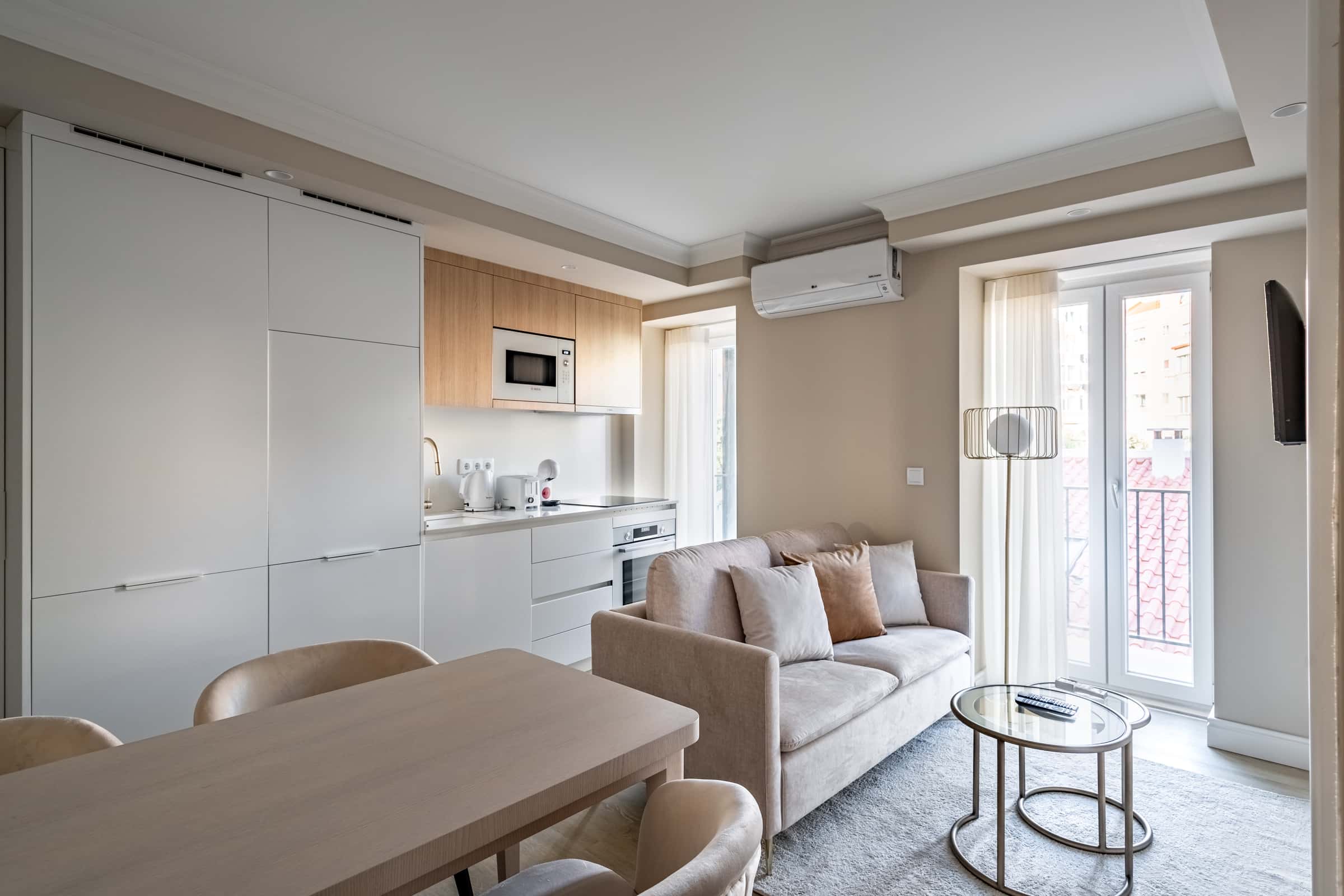 Seeking a new home in Campo de Ourique, Lisbon? Get to know our amazing apartment, offering both comfort and convenience. Situated in a safe and central location, you'll enjoy easy access to shops, restaurants, and cultural attractions. Inside, discover a well-appointed space designed for modern living. This apartment features a cozy sleeping area with a comfortable bed, as well as a living area complete with a sofa, ideal for relaxing. The dining area has a nice table that you can also use as a workspace, providing versatility for your daily needs. Apartment Highlights: Fully equipped kitchen with modern appliances Dining area perfect for meals and work Comfortable living/bedroom area with ample sunlight Washer and Dishwasher for added convenience Central location Additional Costs: Utilities: Not included; estimated at 120€ per month, additional charges may apply for overages Note: Administrative fee not included Cleaning & Linen Services: - A mandatory final cleaning fee of 130€ will be applied to all bookings. - You have the option to choose a monthly cleaning service, which includes linens, for an extra 65€ per month. - If you prefer to skip the monthly cleaning, a member of our team will need conduct a bimonthly inspection of the property. Please note that linens are not included with this option. - Linens can be added for an additional monthly fee.