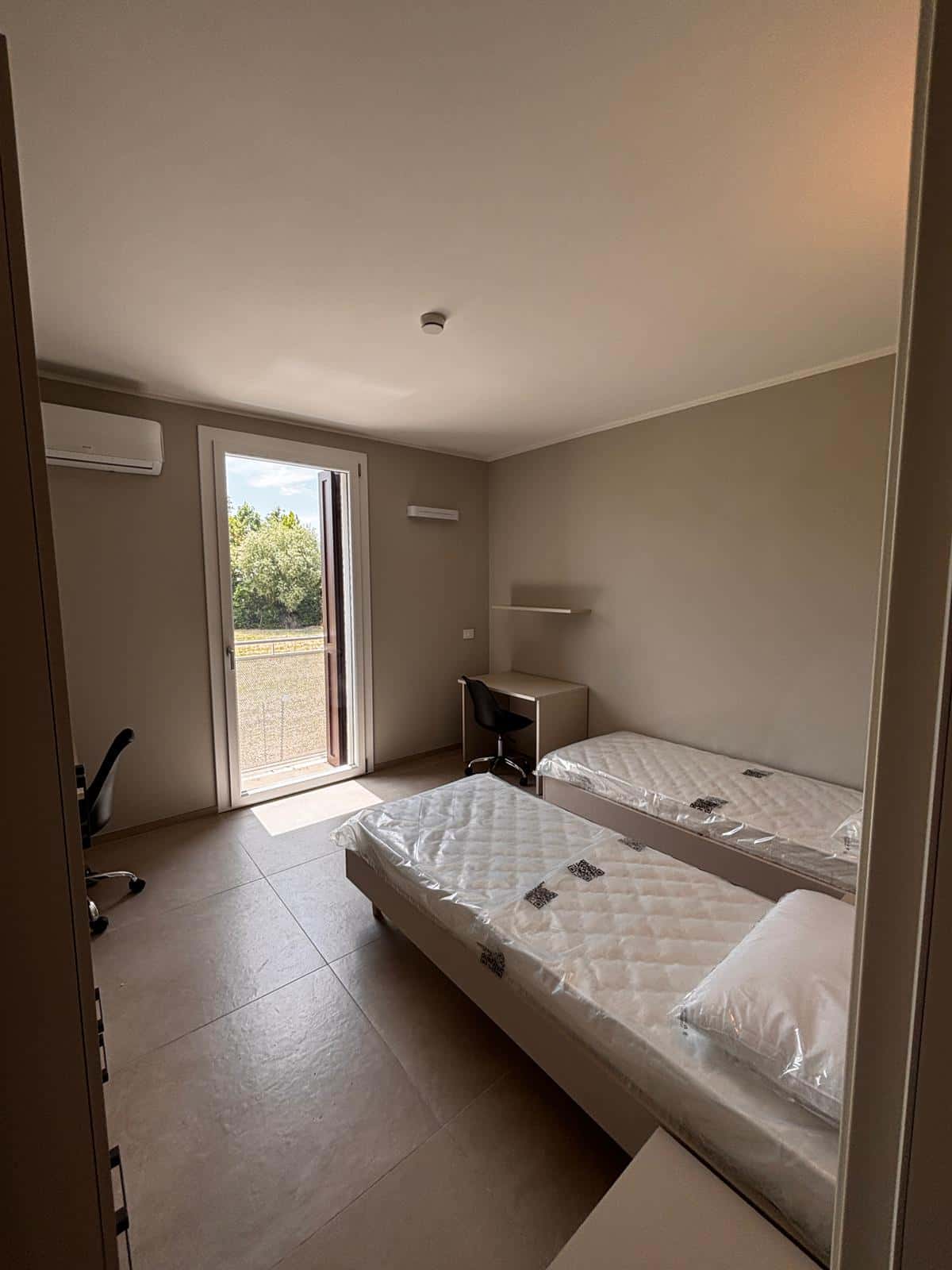 ITA Stanza singola situata in un appartamento all'interno di una nuova residenza studentesca a elevato confort abitativo. Le generose dimensioni degli ambienti, gli standard di costruzione e la quiete di periferia garantiscono una situazione ideale per lo studio. L'appartamento è formato da 3 camere da letto, 2 bagni e comoda cucina. LA ZONA La posizione della residenza, a circa 1000 metri dal Polo didattico Sant’Anna, permette agli studenti alloggiati di raggiungere in pochi minuti le aule didattiche evitando la congestione mattutina dei mezzi pubblici che trasportano gli studenti dalla città alla residenza. L’edificio, suddiviso in sei unità abitative, prevede per ogni appartamento una cucina comune, Due bagni, una lavasciuga e rete wi-fi free. All’esterno è disponibile un’area verde attrezzata riservata e posti auto coperti. Ogni appartamento è dotato di un lavasciuga a uso gratuito. ENG Single room in an apartment, located in a newly built student residence offering high living comfort. The generous room sizes, construction standards, and the quiet suburban setting create an ideal environment for studying. The apartment consists of 3 bedrooms, 2 bathrooms, and a convenient kitchen. THE AREA The residence is located about 1,000 meters from the Sant’Anna teaching campus, allowing students to reach classrooms within minutes while avoiding the morning congestion of public transport coming from the city. The building, divided into six housing units, offers each apartment a shared kitchen, two bathrooms, a washer-dryer, and free Wi-Fi. Outside, residents have access to a private equipped green area and covered parking spaces. Each apartment is equipped with a washer-dryer available for free use.