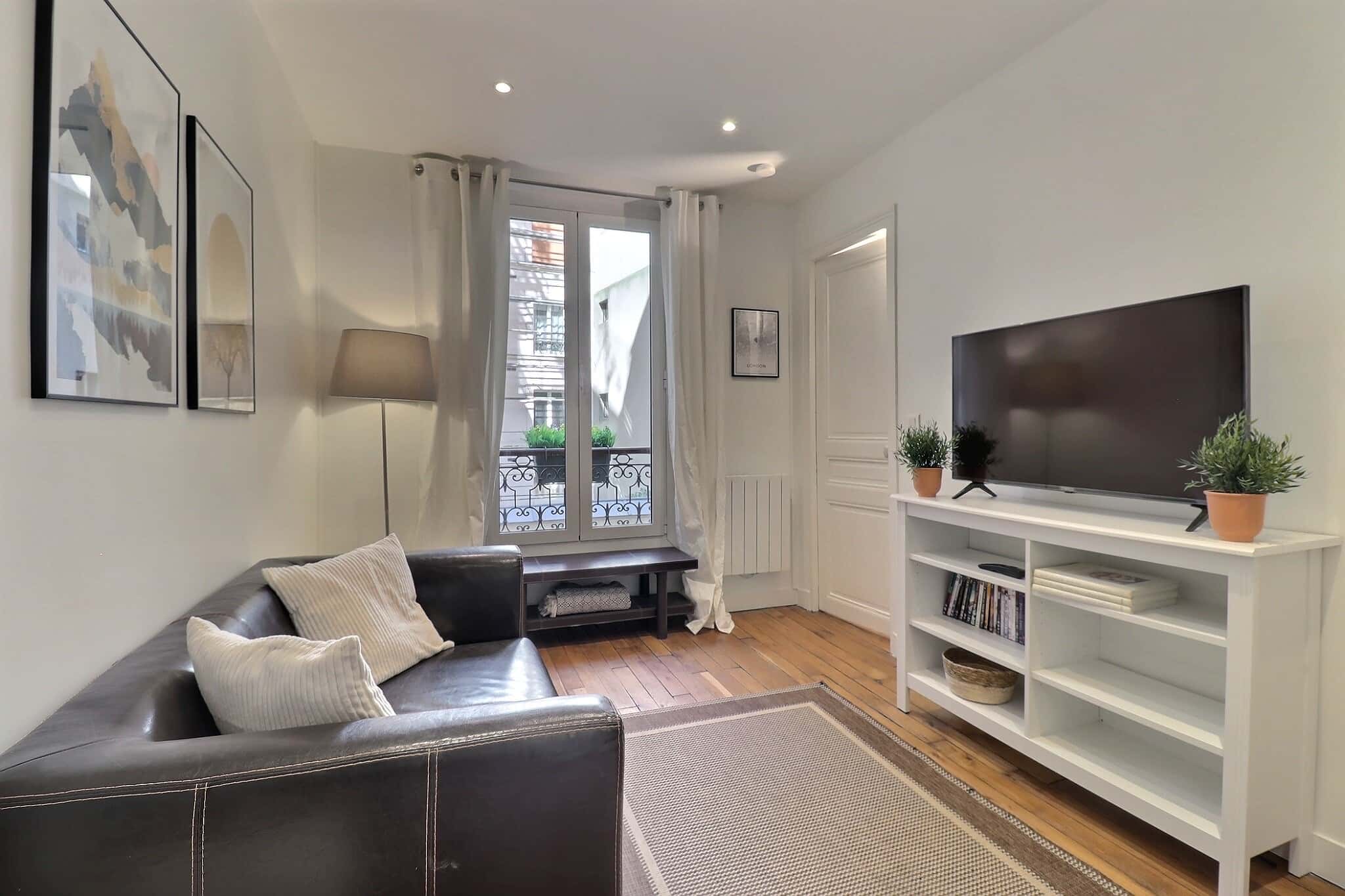 [FR] Au cœur du quartier de Jules Joffrin - Mairie du 18ème dans le 18ème arrondissement de Paris, cet appartement de 28m² vous accueille dans l'historique Rue du Mont-Cenis, menant droit au Sacré Coeur. La station de métro Jules Joffrin est à seulement 100m à vol d'oiseau du bien. Ce 1 chambre prêt à vivre pourra vous accueillir vous et 1 personne supplémentaire pour un séjour en toute tranquillité à Paris. Situé au 1er étage, l'immeuble est sécurisé par interphone et code d'entrée. Nos appartements étant tous prêts à vivre et équipés de Wifi, vous n'avez plus qu'à vous installer avec vos valises. L'appartement comprend également : un lecteur DVD, une enceinte de musique. [EN] In the heart of the Jules Joffrin - Mairie du 18ème district in Paris' 18th arrondissement, this 28m² apartment welcomes you on the historic Rue du Mont-Cenis, leading straight to the Sacré Coeur. The Jules Joffrin metro station is just 100m away as the crow flies. This ready-to-live-in 1-bedroom can accommodate you and 1 additional person for a peaceful stay in Paris. Located on the 1st floor, the building is secured by intercom and entry code. Our apartments are all ready-to-live-in and equipped with Wifi, so all you have to do is move in with your suitcases. The apartment also includes a DVD player and music speaker.