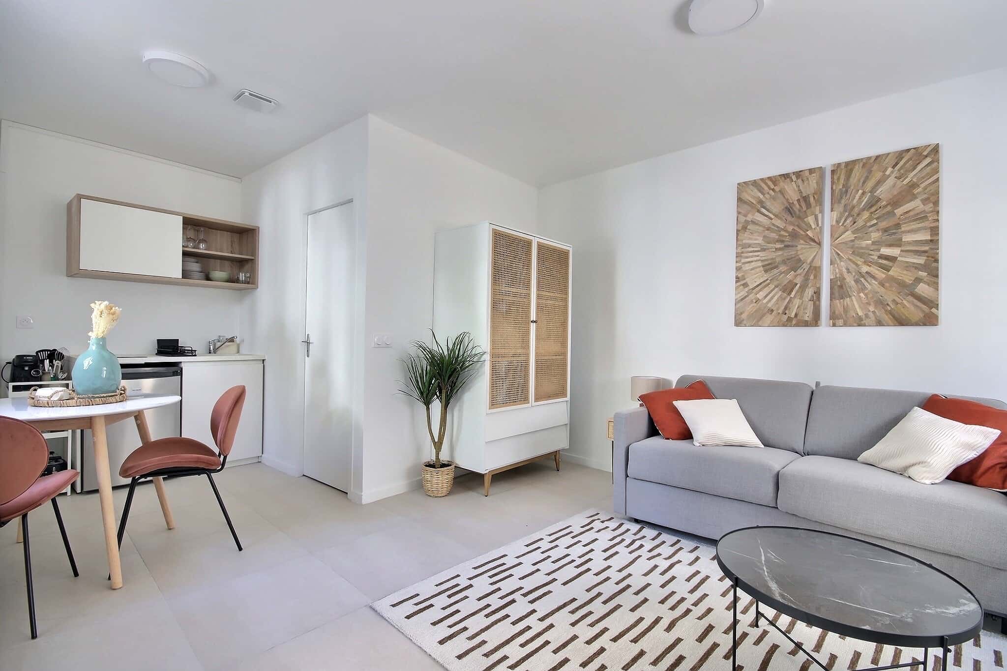 [FR] Séjournez dans cet appartement d'une surface totale de 24m², situé dans le quartier du Les Lilas, au cœur du arrondissement à Les Lilas. La station de métro Mairie des Lilas est à seulement 250m à vol d'oiseau du bien. Ce studio prêt à vivre pourra vous accueillir vous et 1 personne supplémentaire pour un séjour en toute tranquillité à Les Lilas. Cet appartement est situé au rez-de-chaussée. L'ensemble de nos appartements sont meublés et équipés de Wifi pour un séjour en toute tranquillité. Une laverie à usage exclusif des habitants de l'immeuble est disponible dans les parties communes. [EN] Stay in this 24m² apartment, located in the Les Lilas district, in the heart of the borough of Les Lilas. The Mairie des Lilas metro station is just 250m away as the crow flies. This ready-to-live-in studio can accommodate you and 1 extra person for a peaceful stay in Les Lilas. This apartment is located on the ground floor. All our apartments are furnished and equipped with Wifi for a peaceful stay. Laundry facilities are available in the common areas for the exclusive use of the building's residents.