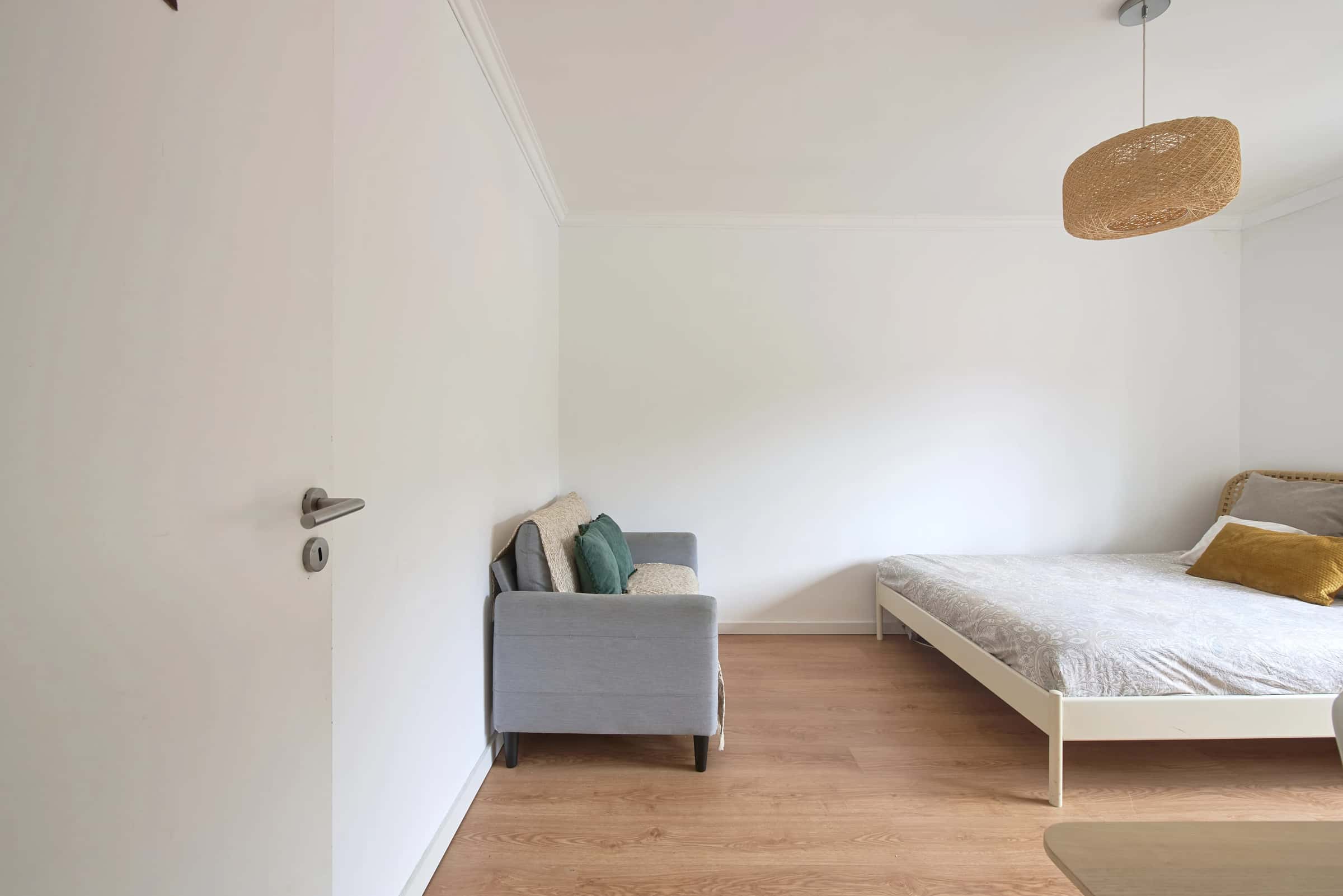 EN Situated on the fourth floor, this bright and cozy apartment in Alameda is the perfect place to live! Located in one of Lisbon’s most vibrant and well-connected areas, you’ll be surrounded by cafés, restaurants, supermarkets, and all essential services. The neighborhood offers excellent public transport connections, with the Alameda metro station and several bus stops just a few minutes away, giving you easy access to every part of the city. The apartment features a well-equipped kitchen, the shared areas are comfortable and welcoming, creating a pleasant environment for everyone. With 4 bedrooms and 1 bathroom, this apartment combines comfort, functionality, and an exceptional location, making it the ideal choice for students and young professionals looking to live conveniently in the heart of Lisbon. Alameda is one of Lisbon’s most vibrant and well-connected neighbourhoods, popular among students and young professionals. Centered around the beautiful Alameda Dom Afonso Henriques park, the area combines a relaxed atmosphere with urban convenience. You’ll find cafés, restaurants, supermarkets, and local shops on every corner, as well as excellent public transport links — including the Alameda metro station, which connects you quickly to the rest of the city. Metro: The Alameda metro station serves both the Green Line (Linha Verde) and the Red Line (Linha Vermelha) — giving you direct access to major points like the city center (Baixa/Chiado), the airport, and Parque das Nações. Buses: Several Carris bus lines stop around Alameda, including 708, 718, 720, 735, 742, 756, and 767, connecting you easily to areas like Cais do Sodré, Oriente, and Campo Grande. Trams: While Alameda itself doesn’t have a tram stop, you’re just a short walk from Avenida Almirante Reis, where classic Lisbon trams such as the 28E pass through — perfect for exploring the city’s historic neighborhoods. In short, whether you study, work, or just love to explore, Alameda makes it easy to get anywhere in Lisbon quickly. - Alameda Dom Afonso Henriques Park – The heart of the neighborhood, this large green space is perfect for relaxing, studying outdoors, or enjoying a picnic with friends. It features fountains, shady trees, and a lively atmosphere, especially on sunny days. - Instituto Superior Técnico (IST) – One of Portugal’s top universities, IST gives the area a vibrant student energy, with cafés, study spots, and affordable restaurants nearby. - Avenida Almirante Reis – A bustling avenue filled with local bakeries, international eateries, and vintage shops — ideal for grabbing a pastel de nata or exploring Lisbon’s diverse food scene. - Igreja de São João de Deus – A beautiful modernist church located right next to Alameda Park, known for its striking architecture. - Fonte Luminosa & Surroundings – The “Luminous Fountain” at the top of Alameda Park is a local landmark, especially stunning when illuminated at night, and often surrounded by small local markets and events. - No smoking.- No pets allowed.- No parties.- Trash must be taken out daily.- Short-term visitors are allowed (2 days). Longer period: €20 per day.- Utilities: included up to €25 per tenant.- Cleaning: offered by the landlord.- Bedding: pillows, duvet, and bed sheets are not provided.- Payment before check-in: first and last month, deposit and admin fee.- Check-ins: from Monday to Saturday from 4pm until 7:30pm. No check-ins on Sundays and bank holidays. Check-in is authorized only 24h after the payment is confirmed in our bank account and the contract is signed. The bedroom is a cozy and comfortable space, designed to offer residents a peaceful and restful environment. The room features a cozy double bed, a desk, a chair, and storage space for your belongings.