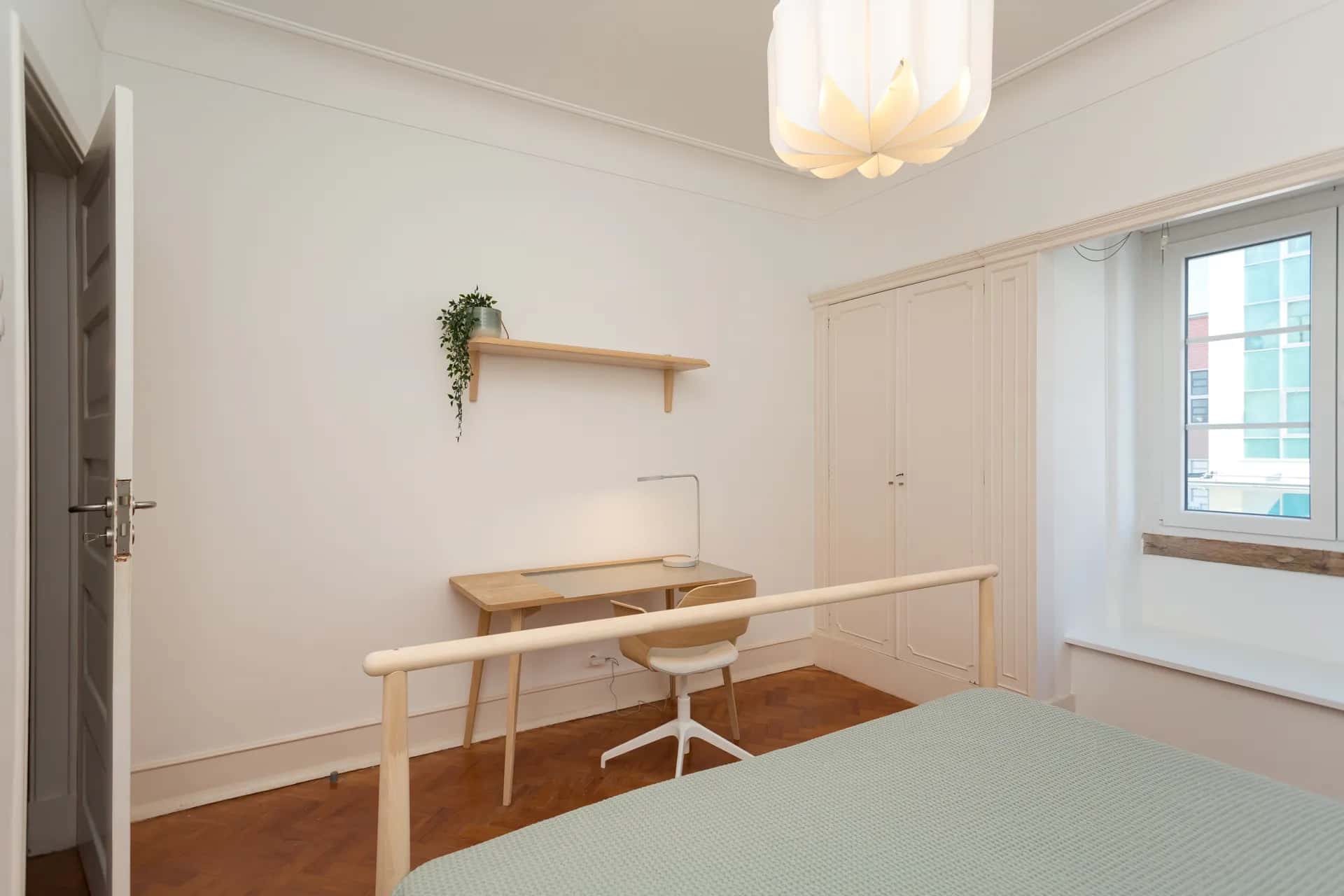 EN Situated on the second floor, this spacious apartment in Areeiro offers the perfect blend of comfort and convenience. Located in one of Lisbon’s most central and well-connected areas, you’ll be surrounded by cafés, restaurants, supermarkets, and all essential services — most of them just 3 to 5 minutes away on foot. The area provides excellent public transport connections, with the Areeiro metro station (Green Line), nearby bus stops, and train links that allow quick and easy access to Lisbon’s main districts such as Baixa, Marquês de Pombal, and Parque das Nações. The apartment features a large, fully equipped kitchen and 2 bathrooms (1 shared and 1 en-suite), offering comfort and practicality in the shared areas. With 6 bedrooms, this apartment is the ideal choice for students or young professionals looking for a comfortable and spacious home in a central Lisbon location. Areeiro is one of Lisbon’s most central and well-connected neighborhoods, known for its peaceful atmosphere and excellent access to everything you need. You’ll find supermarkets, cafés, restaurants, and local shops just 3 to 5 minutes away on foot, making daily life comfortable and convenient. The area is very popular among students thanks to its proximity to several universities and its easy public transport connections. The Areeiro metro station (Green Line), multiple bus stops, and the nearby Roma-Areeiro train station make it simple to reach any part of the city — including Instituto Superior Técnico, the city center, and the airport. Areeiro offers the perfect balance between a calm residential vibe and the convenience of central Lisbon living, making it an ideal area for students and young professionals. Areeiro offers excellent public transport connections, making it easy to move around Lisbon quickly and comfortably. Metro: The Areeiro metro station (Green Line) provides direct access to central areas like Alameda, Baixa/Chiado, and Cais do Sodré, as well as quick connections to major universities and study areas. Buses: Several Carris bus lines pass through Areeiro, connecting you to destinations such as Campo Grande, Saldanha, and Parque das Nações — perfect for daily commutes or exploring the city. Train: The Roma-Areeiro train station is just a short walk away, offering regional connections and easy access to Lisbon’s surrounding areas. Thanks to its central location and excellent transport network, Areeiro ensures smooth and convenient travel for students and young professionals alike. Instituto Superior Técnico (IST) – One of Portugal’s leading universities, located just a short walk or quick metro ride away, making Areeiro a top choice for students. Fonte Luminosa & Alameda Dom Afonso Henriques Park – A beautiful green space nearby, perfect for relaxing, studying outdoors, or enjoying the view of the iconic illuminated fountain. Avenida de Roma – A lively avenue filled with shops, cafés, and restaurants, ideal for socializing or grabbing a coffee between study sessions. Praça de Londres – A popular local square surrounded by restaurants and terraces, offering a relaxed atmosphere in the heart of Lisbon. Cinema City Alvalade – A small, charming cinema just a few minutes away, great for catching a movie after a long day of classes. With its mix of green areas, cafés, and excellent connections, Areeiro is a dynamic and comfortable neighborhood — perfectly suited for students and young professionals. - No smoking.- No pets allowed.- No parties.- Trash must be taken out daily.- Short-term visitors are allowed (2 days). Longer period: €20 per day.- Utilities: included up to €25 per tenant.- Cleaning: offered by the landlord.- Bedding: pillows, duvet, and bed sheets are not provided.- Payment before check-in: first and last month, deposit and admin fee.- Check-ins: from Monday to Saturday from 4pm until 7:30pm. No check-ins on Sundays and bank holidays. Check-in is authorized only 24h after the payment is confirmed in our bank account and the contract is signed. The bedroom is a cozy and comfortable space, designed to offer residents a peaceful and restful environment. The room features a cozy double bed, a desk, a chair, and storage space for your belongings.