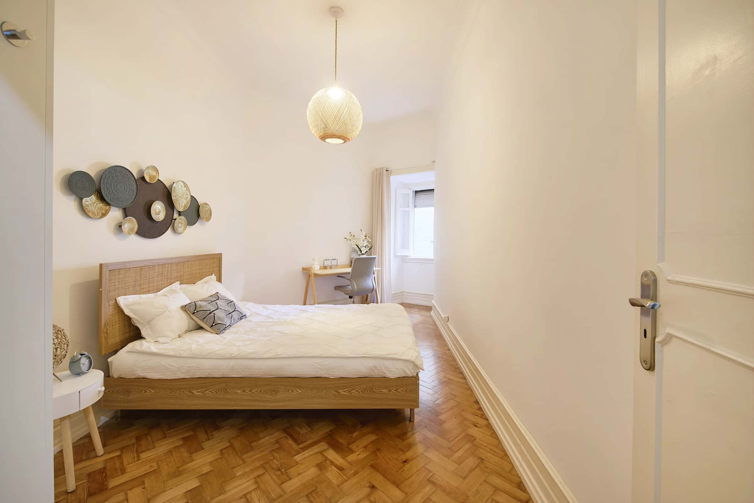 EN Situated on the first floor, this spacious apartment in Marquês de Pombal offers the perfect mix of comfort, space, and convenience. Located in one of Lisbon’s most central and elegant neighborhoods, you’ll be surrounded by cafés, restaurants, supermarkets, and all essential services — most of them just 3 to 5 minutes away on foot.The area provides excellent public transport connections, with Marquês de Pombal metro station (Blue and Yellow Lines) and several bus stops nearby, ensuring quick access to every part of the city, including university areas, the city center, and the riverside.The apartment features a fully equipped kitchen, a bright indoor balcony that brings in plenty of natural light, and 4 bathrooms (2 shared, 1 WC and 1 en-suite), providing comfort and functionality in the shared spaces.With 10 bedrooms, this apartment is ideal for students or young professionals seeking a spacious and comfortable home in one of Lisbon’s most central and well-connected areas. Marquês de Pombal is one of Lisbon’s most central and well-connected neighborhoods, known for its elegant atmosphere and excellent accessibility. You’ll find cafés, restaurants, supermarkets, and local shops just 3 to 5 minutes away on foot, making everyday life easy and convenient for students and young professionals alike.The area is one of the city’s main transport hubs, offering quick and direct connections to all major parts of Lisbon. The Marquês de Pombal metro station serves both the Blue and Yellow Lines, providing easy access to the city center, university campuses, and even the airport. Multiple bus routes also pass through the area, making commuting fast and simple.With its mix of city life, green spaces, and great transport links, Marquês de Pombal offers the perfect balance between comfort and accessibility — ideal for students looking to live in the heart of Lisbon while staying close to everything. Marquês de Pombal is one of Lisbon’s main transport hubs, offering excellent connections to every part of the city.Metro: The Marquês de Pombal metro station serves both the Blue Line (Linha Azul) and the Yellow Line (Linha Amarela), providing direct access to key destinations such as Baixa/Chiado, Saldanha, and the university areas.Buses: Numerous Carris bus lines stop around Marquês de Pombal, connecting the neighborhood to districts like Campo Grande, Cais do Sodré, and Parque das Nações.Trains: The nearby Entrecampos and Rossio train stations are just a short metro ride away, offering regional and intercity connections.Thanks to its central location and transport variety, Marquês de Pombal makes commuting fast, simple, and convenient — ideal for students and professionals who need to move easily around Lisbon. Parque Eduardo VII – One of Lisbon’s largest and most beautiful green spaces, perfect for studying outdoors, jogging, or relaxing with a great view of the city.Avenida da Liberdade – A famous avenue lined with cafés, restaurants, and shops, offering a mix of sophistication and daily convenience just steps away.El Corte Inglés & Amoreiras Shopping Center – Two of Lisbon’s main shopping destinations, both within easy reach, with supermarkets, restaurants, and study-friendly cafés.Marquês de Pombal Square – A central landmark and major transport hub, connecting you quickly to all parts of the city by metro or bus.University Access – Just a few metro stops from key universities such as Instituto Superior Técnico, NOVA Medical School, and Universidade de Lisboa.With its central location, excellent transport connections, and a balance of leisure, study, and city life, Marquês de Pombal is one of the best areas for students and young professionals living in Lisbon. - No smoking.- No pets allowed.- No parties.- Trash must be taken out daily.- Short-term visitors are allowed (2 days). Longer period: €20 per day.- Utilities: included up to €25 per tenant.- Cleaning: offered by the landlord.- Bedding: pillows, duvet, and bed sheets are not provided.- Payment before check-in: first and last month, deposit and admin fee.- Check-ins: from Monday to Saturday from 4pm until 7:30pm. No check-ins on Sundays and bank holidays. Check-in is authorized only 24h after the payment is confirmed in our bank account and the contract is signed. The bedroom is a cozy and comfortable space, designed to offer residents a peaceful and restful environment. The room features a cozy double bed, a desk, a chair, and storage space for your belongings.