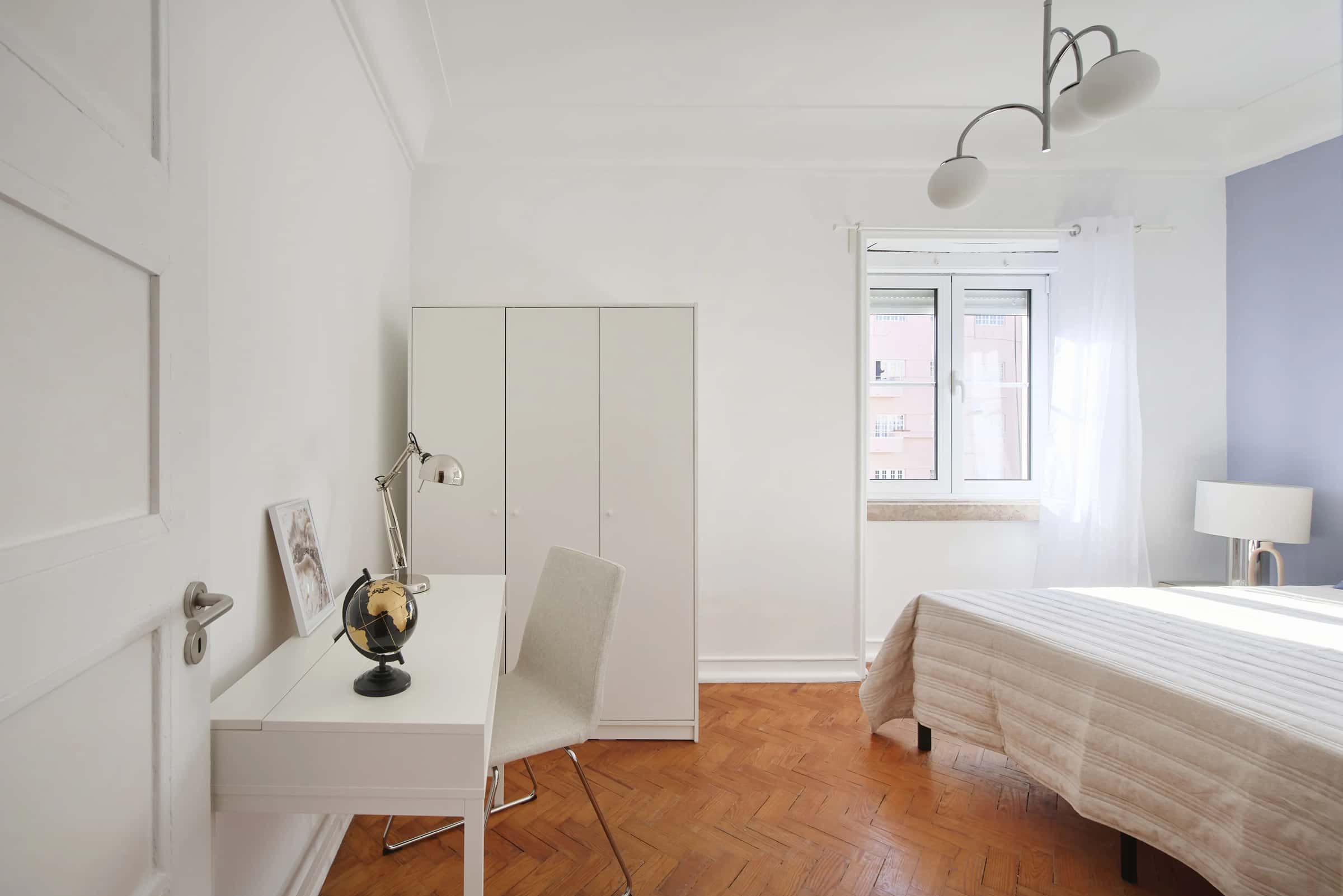 EN This cozy 6-bedroom apartment in Areeiro offers a warm and comfortable atmosphere in one of Lisbon’s most convenient and well-connected neighborhoods. Located on the fourth floor, the apartment features a fully equipped kitchen and 2 bathrooms, providing everything needed for a comfortable everyday life.With its cozy design and well-organized spaces, this apartment is perfect for those looking for a welcoming home close to cafés, restaurants, supermarkets, and essential services, all just a short walk away. The nearest supermarket is about 3 minutes away on foot, and the closest bus stop is approximately 2 minutes away, offering easy access to public transport and the rest of Lisbon. Areeiro is a pleasant and central neighborhood that combines residential comfort with excellent accessibility. Characterized by its wide avenues, classic buildings, and peaceful environment, the area offers a variety of cafés, restaurants, local shops, and green spaces.It’s a great choice for those who value a quiet lifestyle while staying close to Lisbon’s main urban areas. Metro: Areeiro station (Green Line) provides direct access to Alameda, Saldanha, and Baixa-Chiado.Trains: Roma-Areeiro station connects to suburban and regional destinations.Buses: Several Carris lines operate in the area, offering easy access to Marquês de Pombal, Campo Pequeno, and the city center.Areeiro’s excellent transport connections make it one of the most convenient neighborhoods for getting around Lisbon. - Praça do Areeiro (Praça Francisco Sá Carneiro) – A central square surrounded by cafés and shops.- Jardim Fernando Pessa – A relaxing green park perfect for walks or outdoor breaks.- Instituto Superior Técnico – One of Lisbon’s top universities, just minutes away.- Avenida de Roma – A vibrant area filled with shops, restaurants, and local services.- Campo Pequeno Arena – A nearby cultural and shopping landmark.Areeiro combines tranquility, accessibility, and central living, making this cozy apartment the ideal choice for those who want comfort and convenience in Lisbon. - No smoking.- No pets allowed.- No parties.- Trash must be taken out daily.- Short-term visitors are allowed (2 days). Longer period: €20 per day.- Utilities: included up to €25 per tenant.- Cleaning: offered by the landlord.- Bedding: pillows, duvet, and bed sheets are not provided.- Payment before check-in: first and last month, deposit and admin fee.- Check-ins: from Monday to Saturday from 4pm until 7:30pm. No check-ins on Sundays and bank holidays. Check-in is authorized only 24h after the payment is confirmed in our bank account and the contract is signed. The bedroom is a cozy and comfortable space, designed to offer residents a peaceful and restful environment. The room features a cozy double bed, a desk, a chair, and storage space for your belongings.