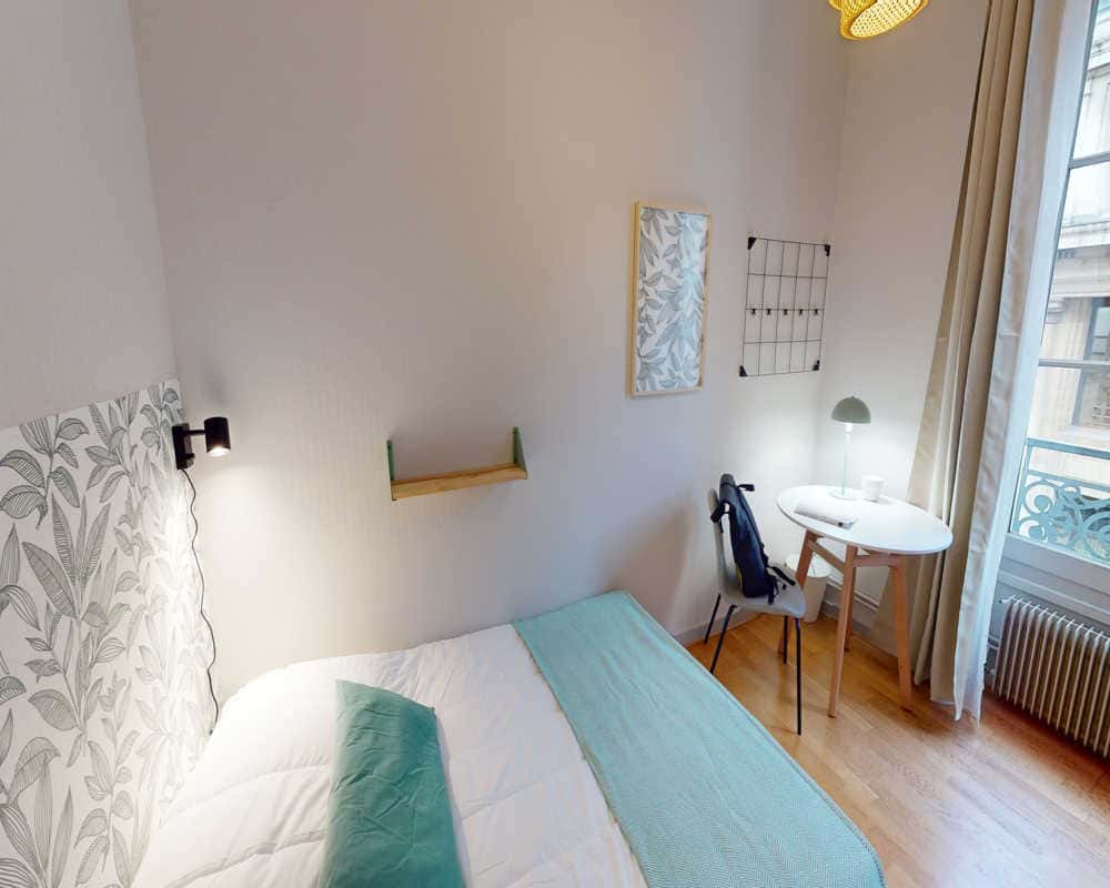 Inquilini all'interno della struttura / Tenants inside the building: 4) Male, Student, 26 5) Male, Student, 19 6) Male, Student, 24 EN This lovely private bedroom in a fully equipped, furnished and all-inclusive flatshare in Lyon is a mix of comfort and design. It has got household furnishings, including a bed with pillows and duvet What is missing is your things to feel at home! The room can be locked if you need intimacy. The flatshare can be found in the Cordeliers neighborhood, in the heart of Lyon. Plenty of shops, public transports, restaurants are accessible close by. The apartment is on floor 3 with lift. It is entirely equipped and is composed of a large kitchen with refrigerator, microwave, pans, crockery, kitchen ustensils, kettle… The accommodation also contains an ironing board, a washing machine, a clothes rack, an iron. Additionally, you will find cleaning items in the accommodation: bagless hoover, dustpan and brush, broom, mop and bucket… Every furnished flatshare includes all expenses: housing insurance, water, electricity, unlimited wi-fi, condominium fees, household waste tax. FR Cette superbe chambre en colocation, meublée, équipée et tout inclus à Lyon unit confort et design. Elle offre de nombreux équipements comme un lit confortable et hypoallergénique avec couette et oreillers. Ne vous manque plus à apporter que vos vêtements pour y vivre ! La chambre possède un cadenas si besoin. Le logement est localisé dans le quartier Cordeliers, en plein coeur de Lyon. De nombreux commerces, transports publics, restaurants sont situés à proximité. La colocation est à l'étage 3 avec ascenseur. Elle est prête-à-vivre et propose une cuisine complètement équipée avec frigo, poêles, casseroles, vaisselle, bouilloire, ustensiles, micro-ondes… Ainsi que lave-linge, tancarville, fer à repasser, planche à repasser. Tout le nécessaire pour le ménage est sur place au sein de cette colocation : balai, balai-brosse, aspirateur, seau et serpillère… Chaque colocation meublée inclut toutes les charges : eau, assurance habitation, charges de copropriété, taxe sur les ordures, wifi illimité, électricité. ES Esta magnifica habitación en un piso compartido amueblado, equipado y con todos los gastos incluidos en Lyon compagina bienestar con un diseño moderno. La habitación dispone de varios muebles como una cama cómoda e hipoalergénica con edredón y almohadas. ¡ Sólo necesitas traer tu maleta para estar en casa ! La habitación tiene un candado si quieres más intimidad. Con respecto a la localización del alojamiento, se sitúa en el barrio Cordeliers, en el corazón de Lyon. Numerosos comercios, transportes públicos, restaurantes se encuentran en el barrio. La vivienda es en el piso numero 3 con ascensor. Está lista para ser ocupada y posee una cocina totalmente equipada con frigorifico, vajilla, tetera, sartenes, olias, microondas, cubiertos… También tiene tabla para planchar, lavadora, plancha, tendedero tal y como todo lo que hace falta para la limpieza : cubo y trapo, aspirador, cepillo de baño, cepillo… Cada alquiler amueblado incluye todos los gastos : tasas de condominio, agua, electricidad, impuesto sobre la recogida de basuras domésticas, seguro de vivienda, wifi inlimitado. IT Questa graziosa camera privata in un appartamento completamente attrezzato, arredato e all-inclusive a Lione è un mix di comfort e design. Dispone di arredi domestici, incluso un letto con cuscini e piumone. Manca solo il tuo tocco personale per sentirti a casa! La camera può essere chiusa a chiave per garantirti privacy. L’appartamento si trova nel quartiere Cordeliers, nel cuore di Lione. Nelle vicinanze sono presenti numerosi negozi, mezzi pubblici e ristoranti. L'appartamento si trova al piano 3 con ascensore. È completamente attrezzato e composto da una grande cucina con frigorifero, microonde, pentole, tostapane, stoviglie, utensili da cucina, bollitore... L'alloggio dispone anche di asse da stiro, lavatrice, stendibiancheria e ferro da stiro. Inoltre, troverai articoli per la pulizia come aspirapolvere senza sacco, paletta e spazzola, scopa, mocio e secchio... Ogni appartamento è completamente arredato e include tutte le spese: assicurazione sulla casa, acqua, elettricità, Wi-Fi illimitato, spese condominiali, tassa sui rifiuti domestici. [FRA]: - LES VISITES NE SONT PAS POSSIBLES. - Le linge de lit n'est pas inclus dans la chambre. - Locataires : La maison est composée d'étudiants ou de jeunes travailleurs âgés de 20 à 28 ans. La tendance est de maintenir une répartition égale entre les locataires masculins et féminins. - Accepter: Tous les genres - Le séjour contractuel minimum correspondra à la période de réservation sur Roomless. Si vous souhaitez partir avant la date de départ choisie au moment de la réservation, vous pouvez exercer l'option de départ anticipé en payant 1,5 mois de loyer. Dans tous les cas, 3 mois avant la date de départ, l'annulation régulière doit être communiquée afin de mettre fin au contrat à la date établie ; si aucune communication n'est faite, le contrat restera actif. - L'enregistrement sera garanti au moins 48 heures après votre premier contact avec la propriété.