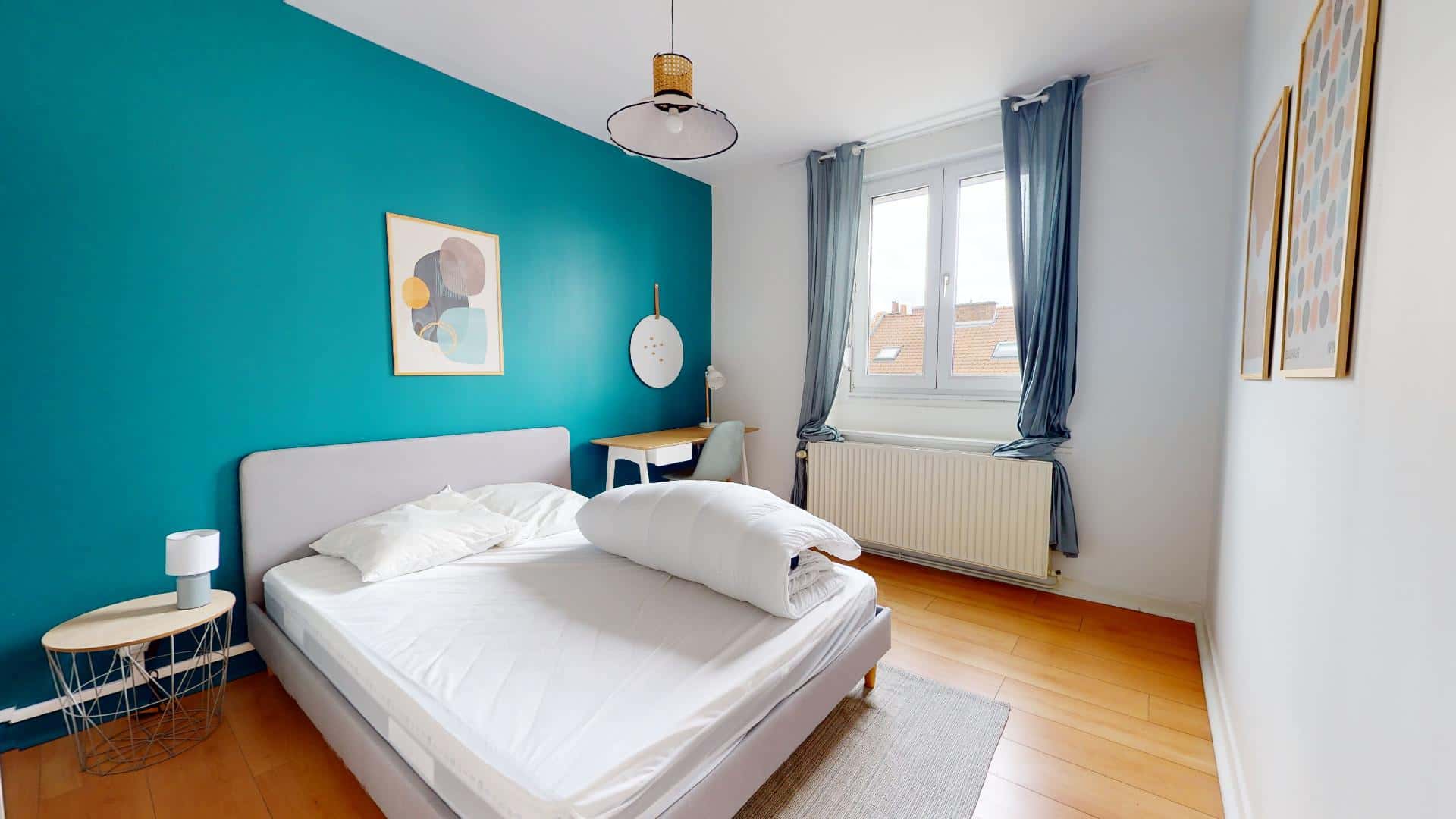 MAISON 7 PIÈCES AVEC JARDIN📍À deux pas du métro Porte De Douai M2, Oqoro vous présente cette colocation de 6 chambres de 165 m² localisée au 30 Rue De Mulhouse (Lille, 59000).🛌LA CHAMBRECette chambre se compose d'un lit double, d'un lit double, d'un meuble dressing, d'une table de chevet et d'un bureau accompagné d'une chaise et d'une lampe. 🛋LES ESPACES COMMUNSLa maison s'agence comme suit : un salon aménagé, 5 chambres, une cuisine équipée (dont lave-vaisselle) et une salle de bains avec baignoire & douche.La maison de 7 pièces est équipée d'un chauffage fonctionnant au gaz.Elle est aussi équipée de la fibre ⚡️🏡LES EXTÉRIEURSGagnez en espace et en confort avec la terrasse et le jardin qu'offre cette maison. Une cave lui est associée.🏙LE QUARTIEROn trouve des restaurants, des supermarchés, des boulangeries, des commerces, des boucheries et des épiceries à proximité du bien.On trouve également plusieurs établissements du supérieur à moins de 10 minutes en voiture.Côté transports en commun, il y a six lignes de bus, la gare Lille Porte de Douai ainsi que la ligne de métro M2 (Porte De Douai) à moins de 10 minutes à pied. Les autoroutes A1 et A25 et la nationale N356 sont accessibles à moins de 1 km.💡SERVICES ET ÉQUIPEMENTSInternet FibreChauffageEau chaudeElectricitéTaxe Ordures MénagèresEau couranteMénage————————————————————————Bail individuel à la chambre. Pas de caution solidaire. Chacun est libre de partir quand il veut sans se soucier des autres colocs, dès le moment où il respecte un mois de préavis. Eligible aux APL.Les informations sur les risques auxquels ce bien est exposé sont disponibles sur le site Géorisques : www.georisques.gouv.frMontant estimé des dépenses annuelles d'énergie pour un usage standard : 1821 € par an.Prix moyens des énergies indexés sur l'année 2021,2022,2023 (abonnements compris)