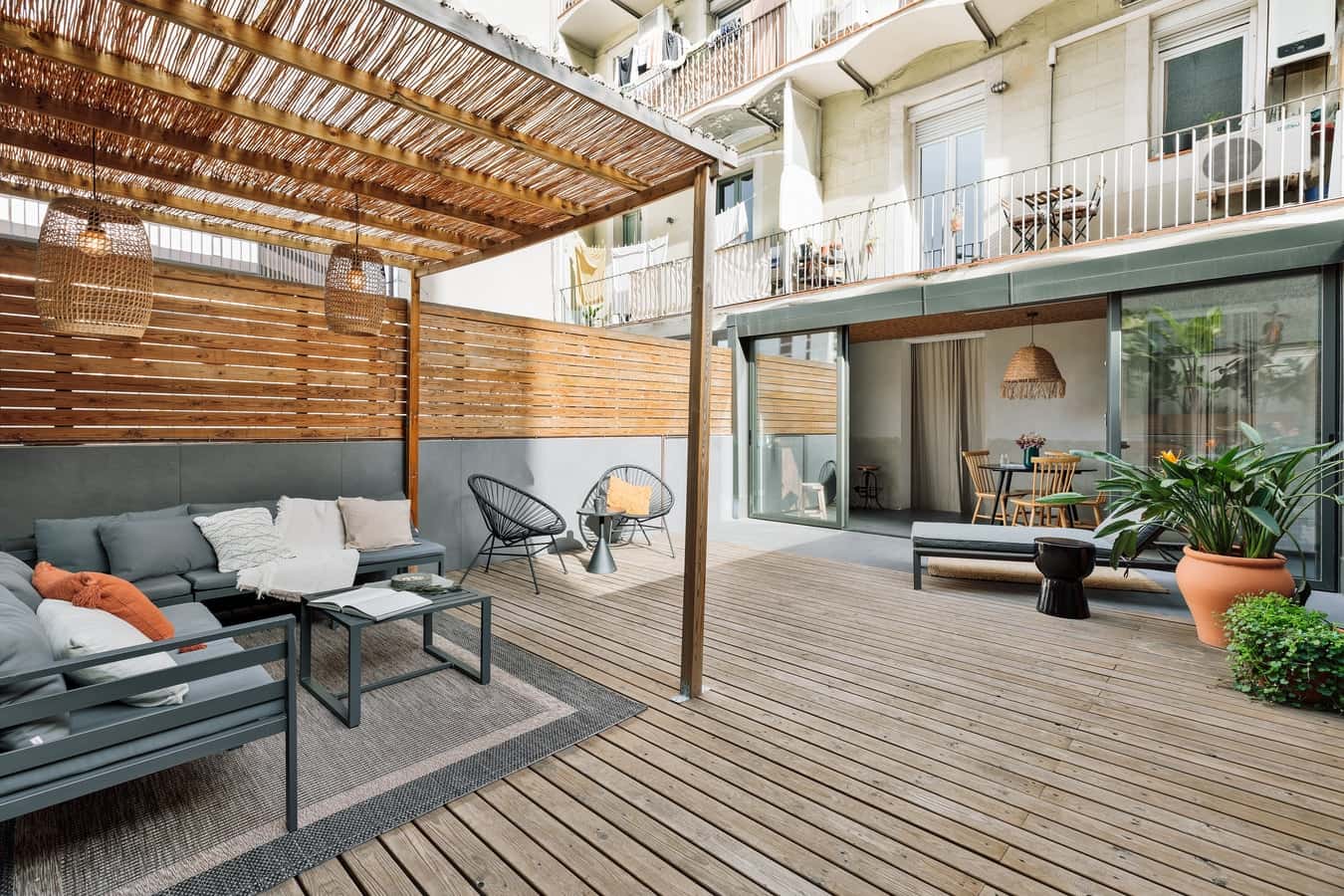 Our mission is to empower individuals to immerse themselves in new places by having a home wherever they go. We do this by providing artfully designed fully furnished and serviced apartments for stays of one month or more. We are currently present in some of the most important cities in Europe. This beautiful redecorated flat boasts a unique spacious terrace, providing an escape from the city streets. The ample terrace with a lounge area and a sun-chair area, is completely hidden to neighbors for total privacy. Upon walking into the flat, there is a bedroom characterized by exposed brick and unique decor, with a queen size bed and ample storage space. The bedroom is connected to a bathroom, with a full shower and fresh towels. The hallway leads to an open plan kitchen and living room, ideal to relax while listening to vinyls. The kitchen comes fully equipped with state of the art appliances and cooking utensils. There is a private dining area that leads to the terrace where you can enjoy your morning coffee. Additionally, the apartment is equipped with high-speed WiFi and SmartTV (Netflix access). The plants are live and vibrant, which you need not worry about tending with our self-watering irrigation system. The apartment comes with a washing machine, dishwasher, and air conditioning for your full convenience *We welcome pets, fees are subject to apply. Guests will be informed of any additional charges in the final contract. We also cannot be liable for any rooms without air conditioning (all the rooms with air conditioner will be explicitly explained in our description). We will not accept any reservation cancellations or refund request related to these two issues. The apartment is located in the Eixample neighborhood in the heart of Barcelona. You are not far from Passeo de Gracia, Avenida Diagonal, and Rambla de Catalunya. Experience the city's most popular restaurants and boutiques right at your doorstep! This beautiful redecorated flat boasts a unique spacious terrace, providing an escape from the city streets. The ample terrace with a lounge area and a sun-chair area, is completely hidden to neighbors for total privacy. Upon walking into the flat, there is a bedroom characterized by exposed brick and unique decor, with a queen size bed and ample storage space. The bedroom is connected to a bathroom, with full shower and fresh towels. The hallway leads to an open plan kitchen and living room, ideal to relax while listening to vinyls. The kitchen comes fully equipped with state of the art appliances and cooking utensils. There is a private dining area that leads to the terrace where you can enjoy your morning coffee. Additionally, the apartment is equipped with high-speed WiFi and SmartTV. The plants are live and vibrant, which you need not worry about tending with our self-watering irrigation system. The apartment comes with a washing machine, dishwasher, and air conditioning for your full convenience. *We welcome pets, fees are subject to apply. Guests will be informed of any additional charges in the final contract. *We cannot be held liable for any noises (construction, or street noise) done outside the apartment. We also cannot be liable for any rooms without air conditioning (all the rooms with air conditioner will be explicitly explained in our description). We will not accept any reservation cancellations or refund requests related to these two issues. *Our in-house design team expertly selects all apartment furniture and decor to ensure the highest level of quality and comfort. As part of consistent home upkeep, design improvements, and photo staging, there may be minor differences in furnishings seen in the photos and what you find in the apartment. Inquire with a sales agent for any questions or doubts. *This accommodation may only be used for stays longer than 31 nights for personal purposes such as holiday, recreational, or leisure. The information provided may be submitted to the relevant registry and/or administrative authority in accordance with Catalan regulations.