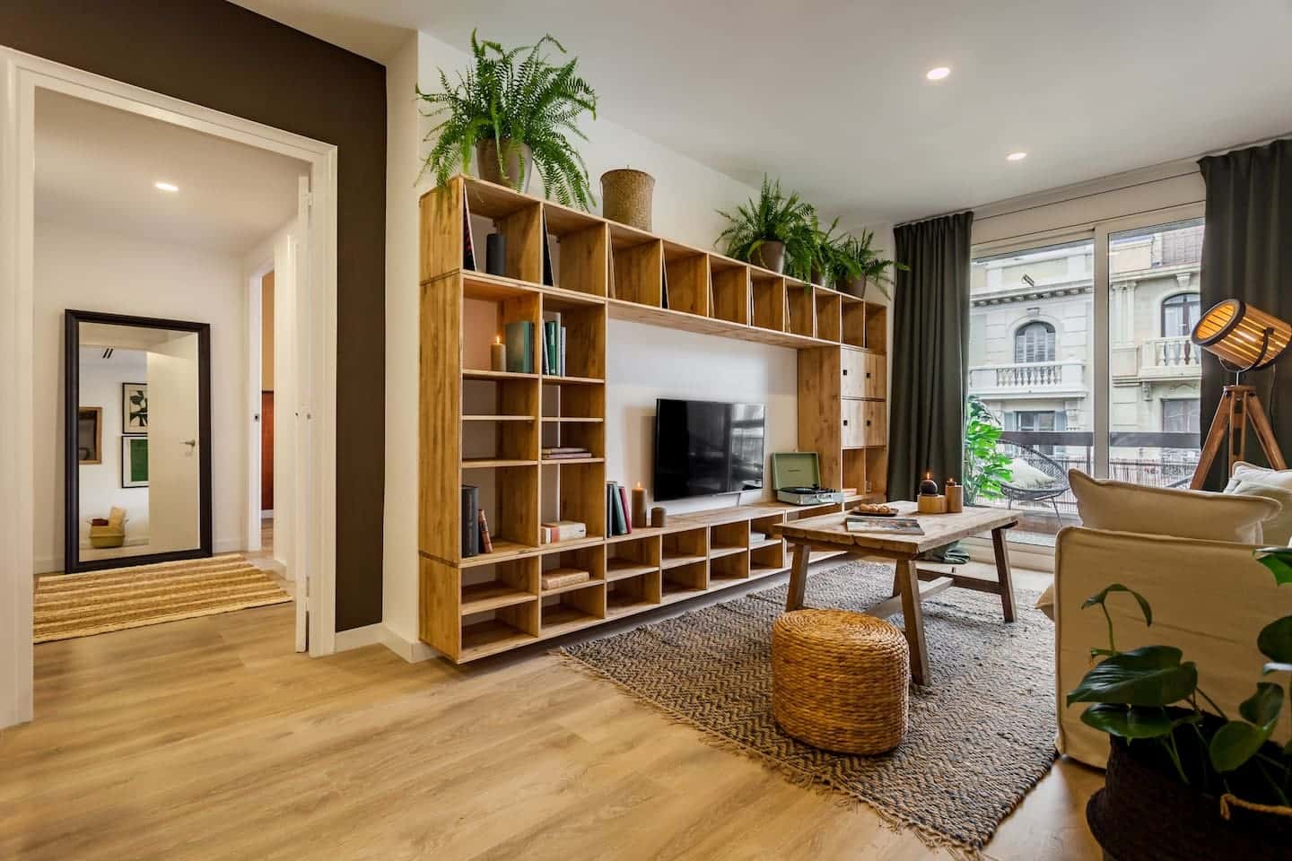 Our mission is to empower individuals to immerse themselves in new places by having a home wherever they go. We do this by providing artfully designed fully furnished and serviced apartments for stays of one month or more. We are currently present in some of the most important cities in Europe. This 3 bedroom 2 bath features a refined yet quirky decor, such as eclectic photos framed throughout the 100 sq meter space and wall plants in varied vases in the office. There are two balconies, one from the living area and one from the master bedroom. Both terraces are equipped with outdoor furniture. The open kitchen plan adds an element of spaciousness in the living area. The kitchen, fully equipped with cooking utensils, looks onto the dining area next to the couch. The living area is characterized by its wooden shelving bordering the TV. The flat comes with a private office with a wooden desk made by a local craftsman (and a hammock for relaxing!). Distinctly decorated, all three bedrooms come with queen-sized beds and fresh linens. Find a full length mirror in the hallway. Each bathroom comes with a full shower. *We welcome pets, fees are subject to apply. Guests will be informed of any additional charges in the final contract. We also cannot be liable for any rooms without air conditioning (all the rooms with air conditioner will be explicitly explained in our description). We will not accept any reservation cancellations or refund request related to these two issues. This 3 bedroom 2 bath features a refined yet quirky decor, such as eclectic photos framed throughout the 100 sq meter space and wall plants in varied vases in the office. There are two balconies, one from the living area and one from the master bedroom. Both terraces are equipped with outdoor furniture. The open kitchen plan adds an element of spaciousness in the living area. The kitchen, fully equipped with cooking utensils, looks onto the dining area next to the couch. The living area is characterized by its wooden shelving bordering the TV. The flat comes with a private office with a wooden desk made by a local craftsman (and a hammock for relaxing!). Distinctly decorated, all three bedrooms come with queen-sized beds and fresh linens. Find a full length mirror in the hallway. Each bathroom comes with a full shower. *We welcome pets, fees are subject to apply. Guests will be informed of any additional charges in the final contract. *We cannot be held liable for any noises (construction, or street noise) done outside the apartment. We also cannot be liable for any rooms without air conditioning (all the rooms with air conditioner will be explicitly explained in our description). We will not accept any reservation cancellations or refund request related to these two issues. *Our in-house design team expertly selects all apartment furniture and decor to ensure the highest level of quality and comfort. As part of consistent home upkeep, design improvements, and photo staging, there may be minor differences in furnishings seen in the photos and what you find in the apartment. Inquire with a sales agent for any questions or doubts. *This accommodation may only be used for stays longer than 31 nights for personal purposes such as holiday, recreational, or leisure. The information provided may be submitted to the relevant registry and/or administrative authority in accordance with Catalan regulations.