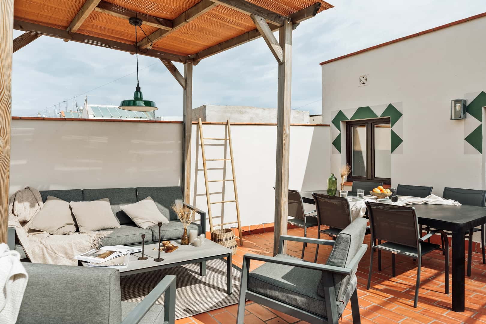 Our mission is to empower individuals to immerse themselves in new places by having a home wherever they go. We do this by providing artfully designed fully furnished and serviced apartments for stays of one month or more. We are currently present in some of the most important cities in Europe. Inspired by the fields of Provence, Remy is a 90 square meter, 2 bedroom, 2 bath apartment in Barcelona's Eixample Dreta district. The large terrace is a luxury in this bustling metropole, with its impressive wooden canopy. It is fitted with a lounge area, as well as an outside dining area. The open plan living room features soft tones and custom made wooden shelves hanging above the comfortable couch. Next to the lounge area, a sleek wooden dining table seats six people. The kitchen is fitted with all cooking utensils and appliances, finished with beige vinyls. The first bedroom down the hall has a dedicated work space with a desk. Both bedrooms are decorated in light hues, with queen-sized beds and ample storage space. The bathrooms are modern and have full showers. All linens and towels are provided. *We welcome pets, fees are subject to apply. Guests will be informed of any additional charges in the final contract. We also cannot be liable for any rooms without air conditioning (all the rooms with air conditioner will be explicitly explained in our description). We will not accept any reservation cancellations or refund request related to these two issues. Inspired by the fields of Provence, Remy is a 90 square meter, 2 bedroom, 2 bath apartment in Barcelona's Eixample Dreta district. The large terrace is a luxury in this bustling metropole, with its impressive wooden canopy. It is fitted with a lounge area, as well as an outside dining area. The open plan living room features soft tones and custom made wooden shelves hanging above the comfortable couch. Next to the lounge area, a sleek wooden dining table seats six people. The kitchen is fitted with all cooking utensils and appliances, finished with beige vinyls. The first bedroom down the hall has a dedicated work space with a desk. Both bedrooms are decorated in light hues, with queen-sized beds and ample storage space. The bathrooms are modern and have full showers. All linens and towels are provided. *We welcome pets, fees are subject to apply. Guests will be informed of any additional charges in the final contract. *We cannot be held liable for any noises (construction, or street noise) done outside the apartment. We also cannot be liable for any rooms without air conditioning (all the rooms with air conditioner will be explicitly explained in our description). We will not accept any reservation cancellations or refund request related to these two issues. *Our in-house design team expertly selects all apartment furniture and decor to ensure the highest level of quality and comfort. As part of consistent home upkeep, design improvements, and photo staging, there may be minor differences in furnishings seen in the photos and what you find in the apartment. Inquire with a sales agent for any questions or doubts. *This accommodation may only be used for stays longer than 31 nights for personal purposes such as holiday, recreational, or leisure. The information provided may be submitted to the relevant registry and/or administrative authority in accordance with Catalan regulations.