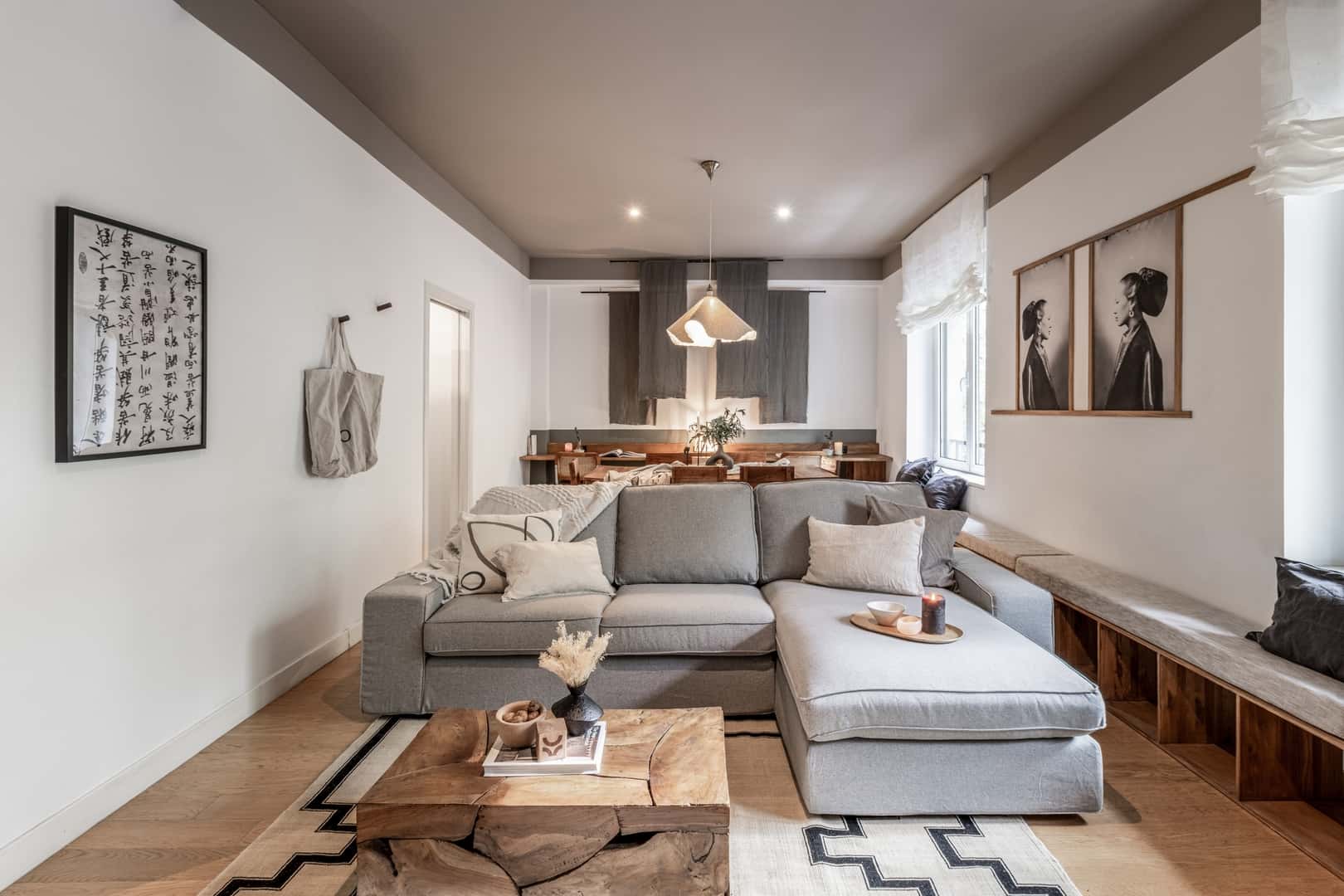 Combining minimalist design with Japanese influence, Senjo is a spacious 140 square meter apartment with 3 bedrooms and 2 baths. The entrance is lined with closets opposite a large round mirror. The living room disposes of three distinct areas. There is a lounge area fitted with a couch and TV, a dining area with a large wooden table, and a dedicated work space custom built against the back wall. Small details, such as the delicate wooden shelves above the television, the bench lining the length of the back wall and the wooden lines throughout the design, contribute to a peaceful and cozy atmosphere. The kitchen, next to the living room, comes equipped with all the latest cooking utensils and appliances. There is a private office fitted with a desk and comfortable chair. Each of the three bedrooms plays on a similar minimalist design, using different color palettes and unique decor. The largest bedroom has a low tatami-style bed and a handmade vanity-style bar. All three bedrooms have queen-sized beds with new bed linens. There are two full bathrooms, one of which has a bathtub and shower, and the other with shower. This apartment comes equipped with ducted air system for absolute comfort. All bath linens are provided. *We welcome pets, fees are subject to apply. Guests will be informed of any additional charges in the final contract. *We cannot be held liable for any noises (construction, or street noise) done outside the apartment. We also cannot be liable for any rooms without air conditioning (all the rooms with air conditioner will be explicitly explained in our description). We will not accept any reservation cancellations or refund request related to these two issues. *Our in-house design team expertly selects all apartment furniture and decor to ensure the highest level of quality and comfort. As part of consistent home upkeep, design improvements, and photo staging, there may be minor differences in furnishings seen in the photos and what you find in the apartment. Inquire with a sales agent for any questions or doubts.